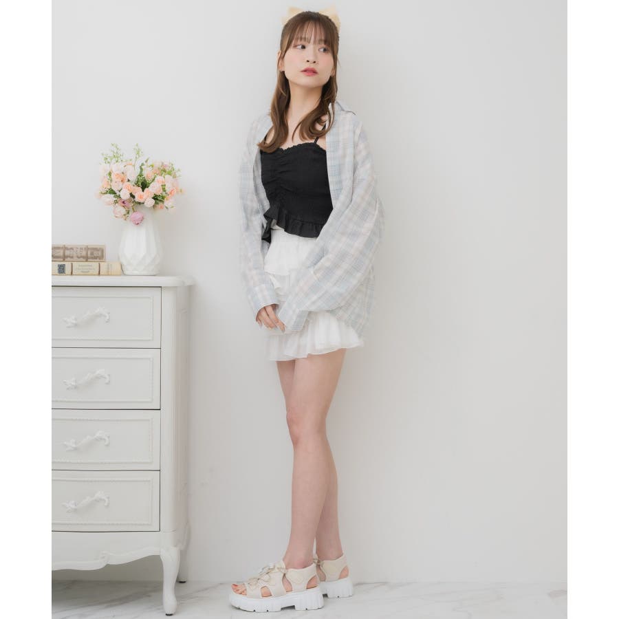 <今年トレンドのビックシルエットチェックシャツ>▼デザイン今年トレンドのチェックシャツアイテムは、1つ持っておきたい!バックスタイルにラインストーンで描かれたemsオリジナルロゴが!後ろ姿も可愛く、全方向隙の無いスタイリングに。▼コーディネート淡いカラーでカジュアルになり過ぎないのが魅力のアイテム。ワンピースやフリルスカートと合わせて甘めのコーデがおすすめ!------------------------------生地感:普通伸縮性:なし透け感:なし裏地:なし------------------------------▼ブランド紹介ems excite (エムズエキサイト)“more fun more cute”今をもっと楽しくもっと可愛くいたい女の子に向けたgirly cuteなブランド#シャツ #シャツ着回し#チェック #シャツコーデ #チェックシャツ #カラーシャツ #ラインストーン #ラメ▼注意事項※撮影環境やモニター環境によって実際の商品とお色味が 多少異なってみえる場合がございます。品番:ES541523C001 / 品名:BラインストーンチェックSH
