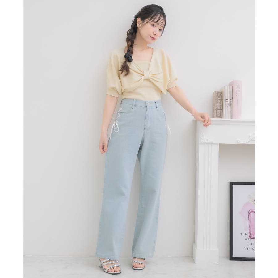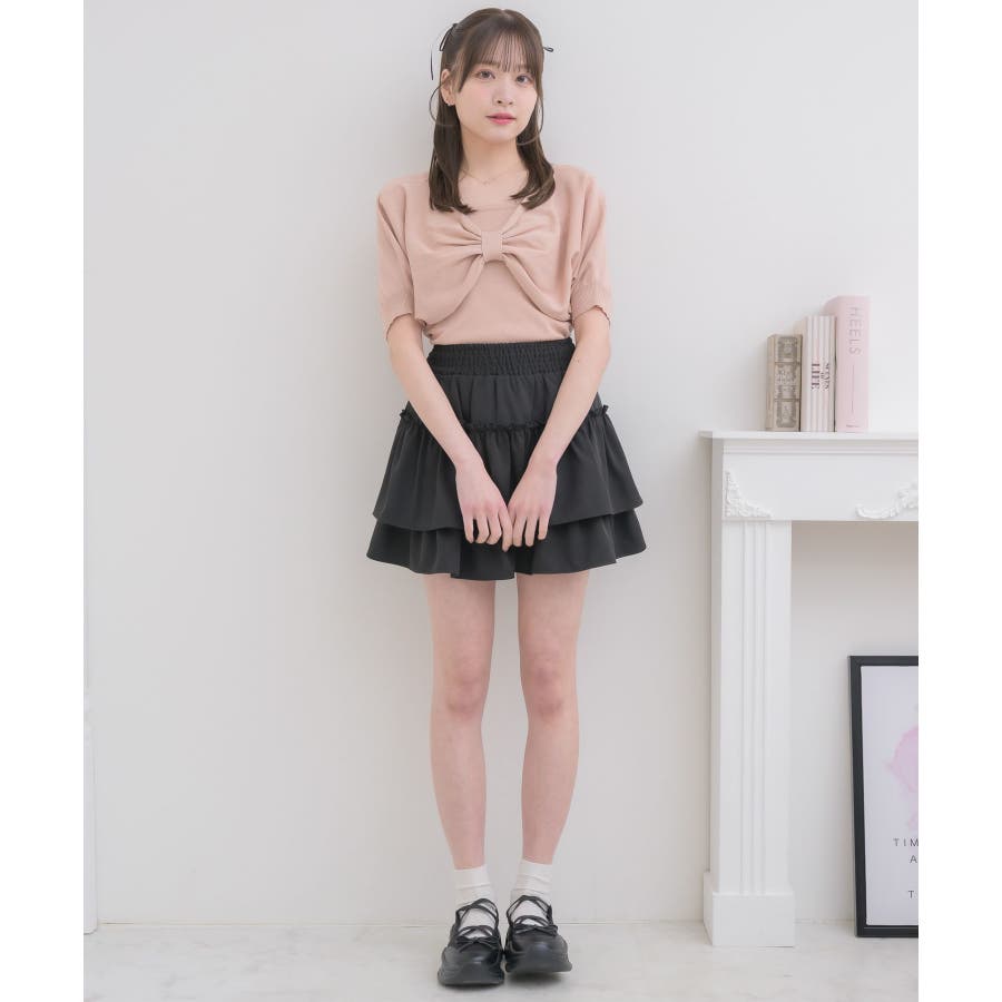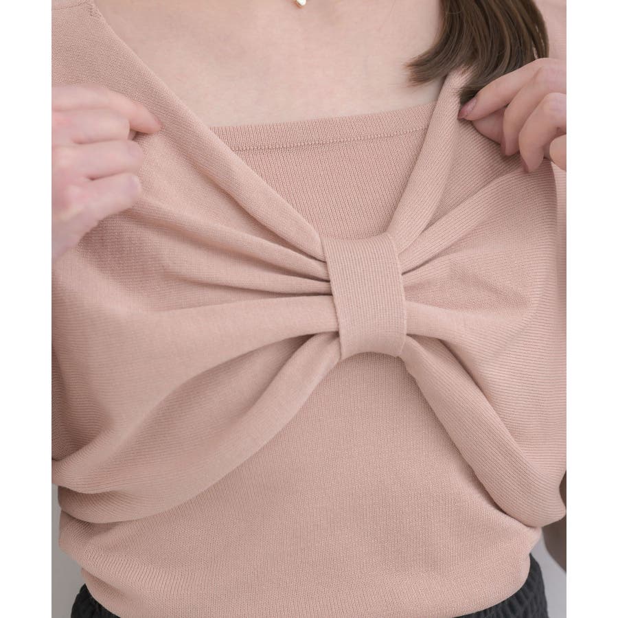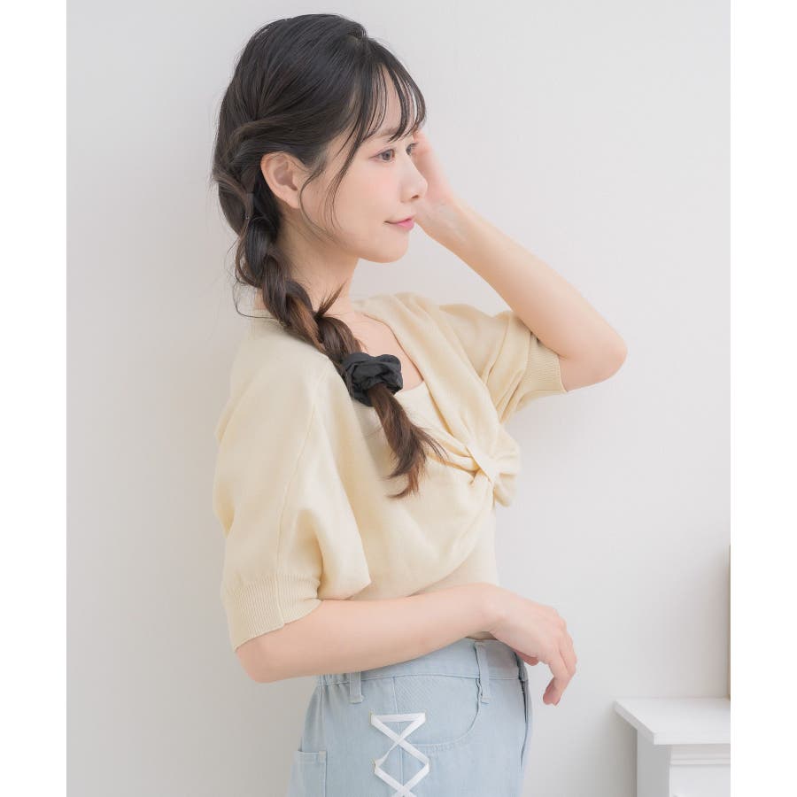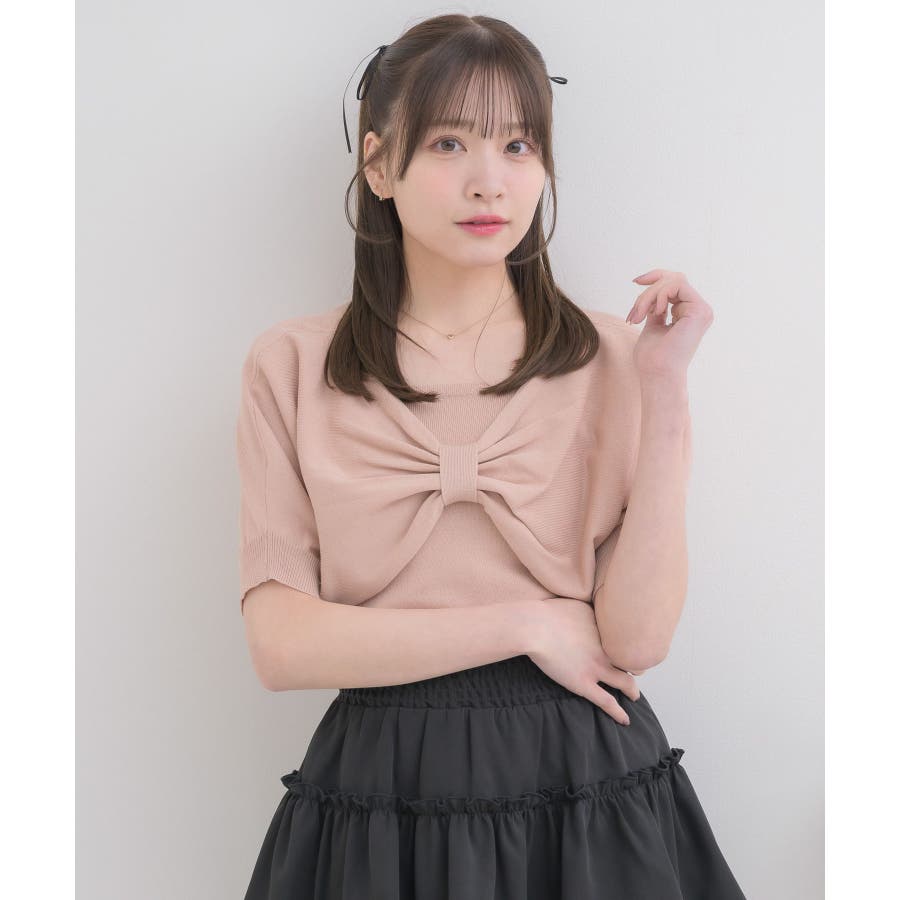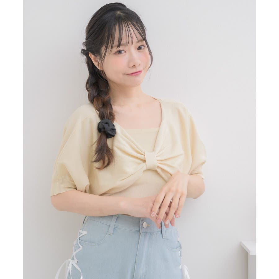 <フロントのリボンデザインが華やかな大人気シリーズニット>▼デザインフロントデザインがガーリーな二ットセットアイテム。同じ素材感のキャミもセットなので、統一感のあるコーデが目指せます。胸元の大きなリボンは写真映え間違いなし◎軽くて柔らかいサマーニットで、これからのシーズンお気に入りの1枚に。▼コーディネートかわいらしい印象のアイテム!チュールスカートやマーメイドスカート合わせがおすすめ♪春にセットで着用するのにぴったりな素材感です。▼セット内容・ニットキャミソール・リボンニット------------------------------生地感:普通伸縮性:ある透け感:なし裏地:なし------------------------------▼ブランド紹介ems excite (エムズエキサイト)“more fun more cute”今をもっと楽しくもっと可愛くいたい女の子に向けたgirly cuteなブランド#フロントリボン #リボンアイテム #リボン #ガーリーコーデ #ガーリーアイテム #フェミニンコーデ▼注意事項※撮影環境やモニター環境によって実際の商品とお色味が 多少異なってみえる場合がございます。品番:ES556412G001 / 品名:五分袖リボンNTSET