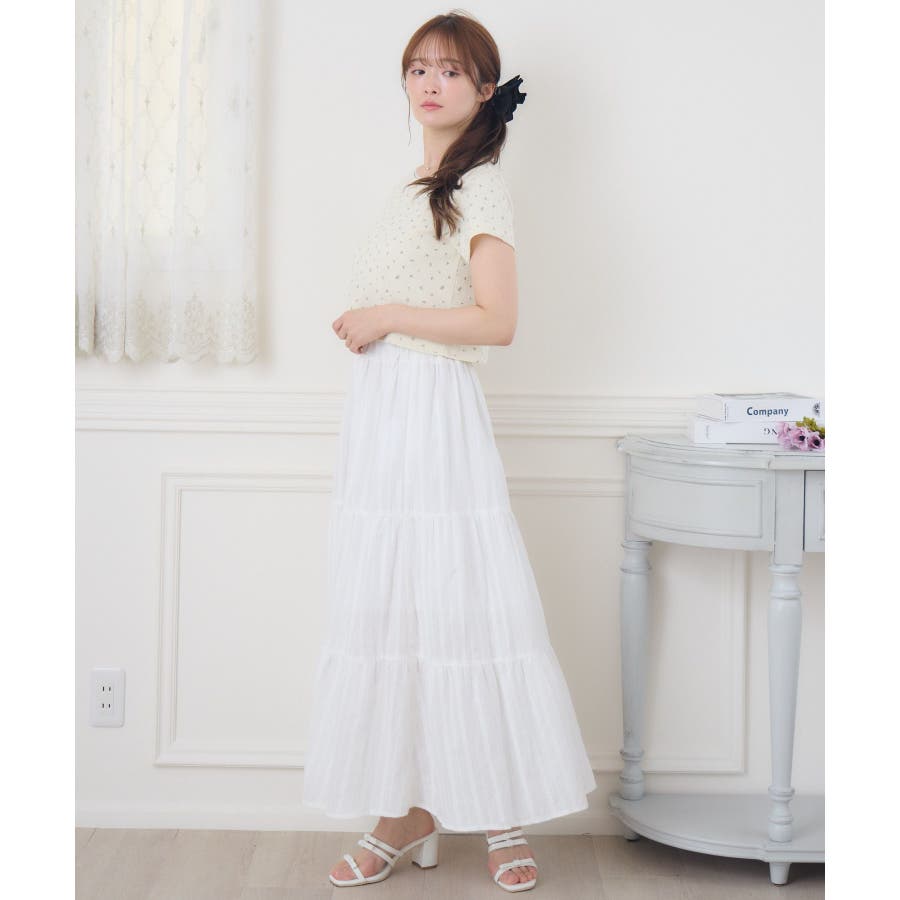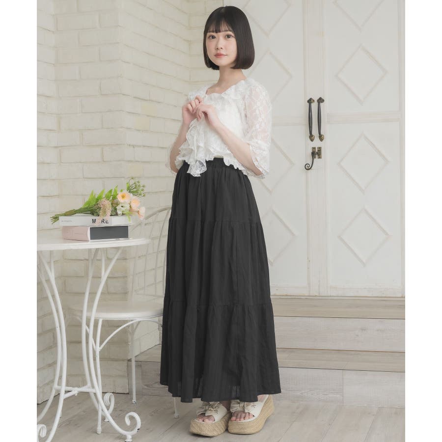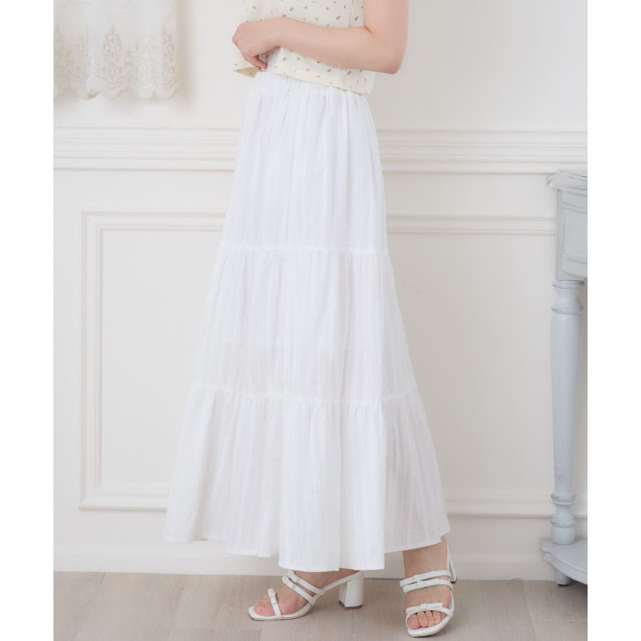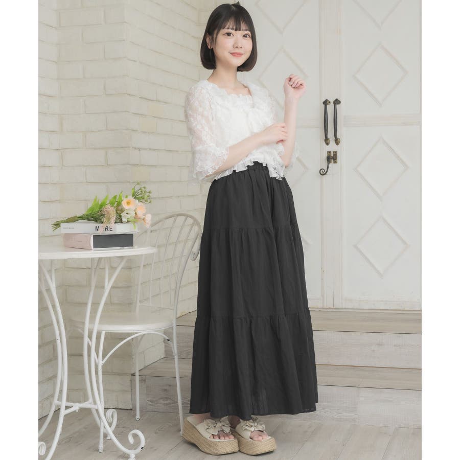 <今年らしいレースデザインのロングスカート>▼デザイン綿素材の軽い着心地が魅力のロングスカート。ウエストは360°ゴムになっているので、伸縮性たっぷり。風通しが良く、夏の気温でもストレスフリーで着て頂けるアイテムです。▼コーディネートシンプルにTシャツ合わせでも可愛くコーデが決まるアイテム。女性らしいデザインのトップスと相性ばっちりです。------------------------------生地感:普通伸縮性:なし透け感:なし(ホワイトのみ多少ある)裏地:ある------------------------------▼ブランド紹介ems excite (エムズエキサイト)“more fun more cute”今をもっと楽しくもっと可愛くいたい女の子に向けたgirly cuteなブランド#綿スカート #ロングスカート #マキシスカート #ガーリーアイテム #レーススカート▼注意事項※撮影環境やモニター環境によって実際の商品とお色味が多少異なってみえる場合がございます。品番:ES561031G001 / 品名:綿カラミSK