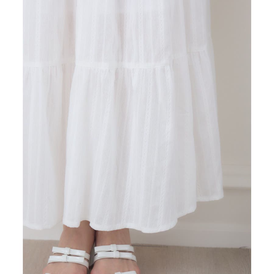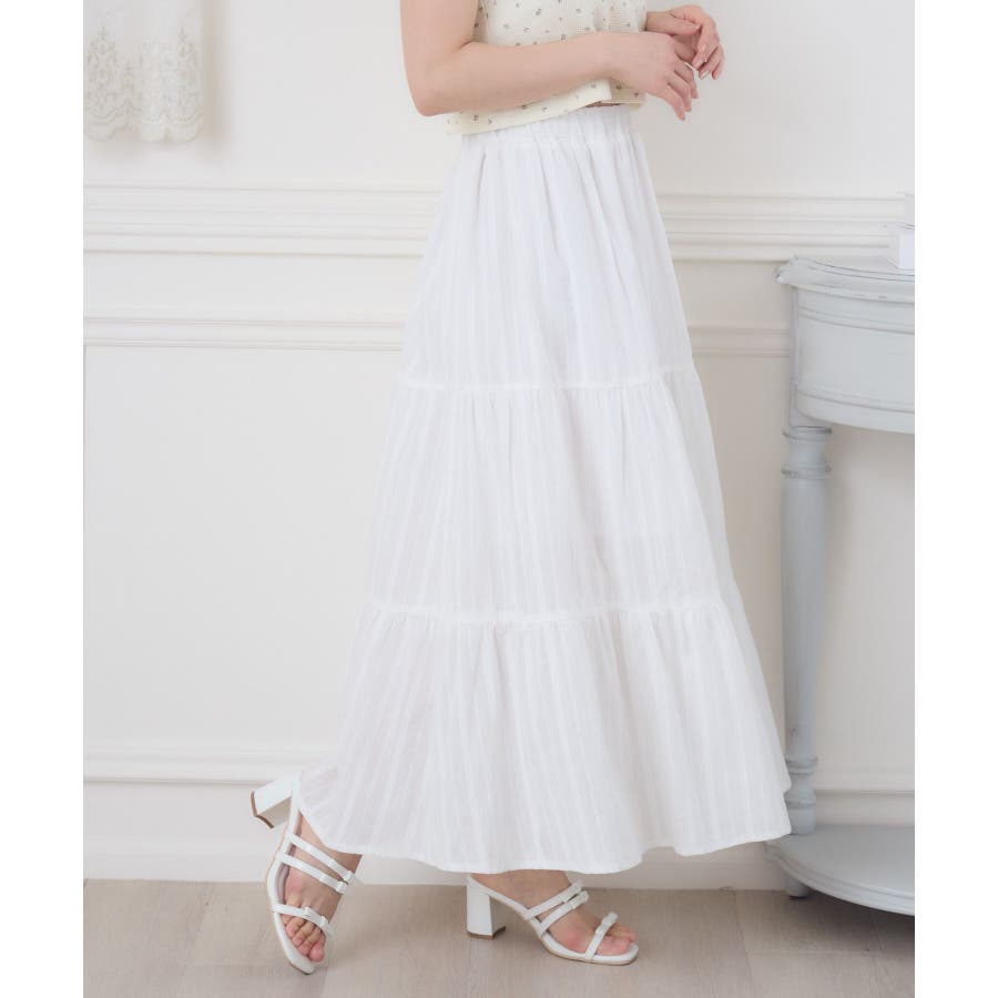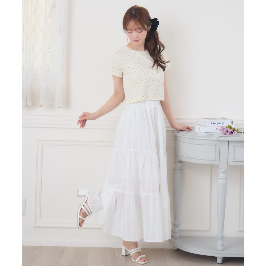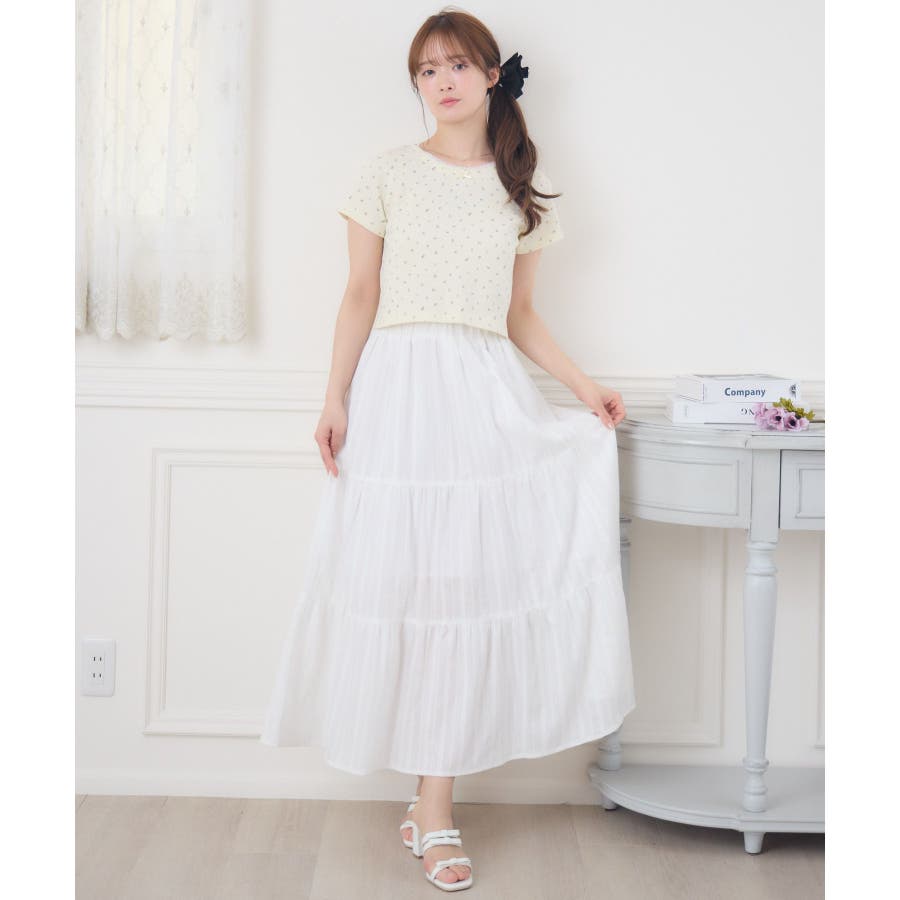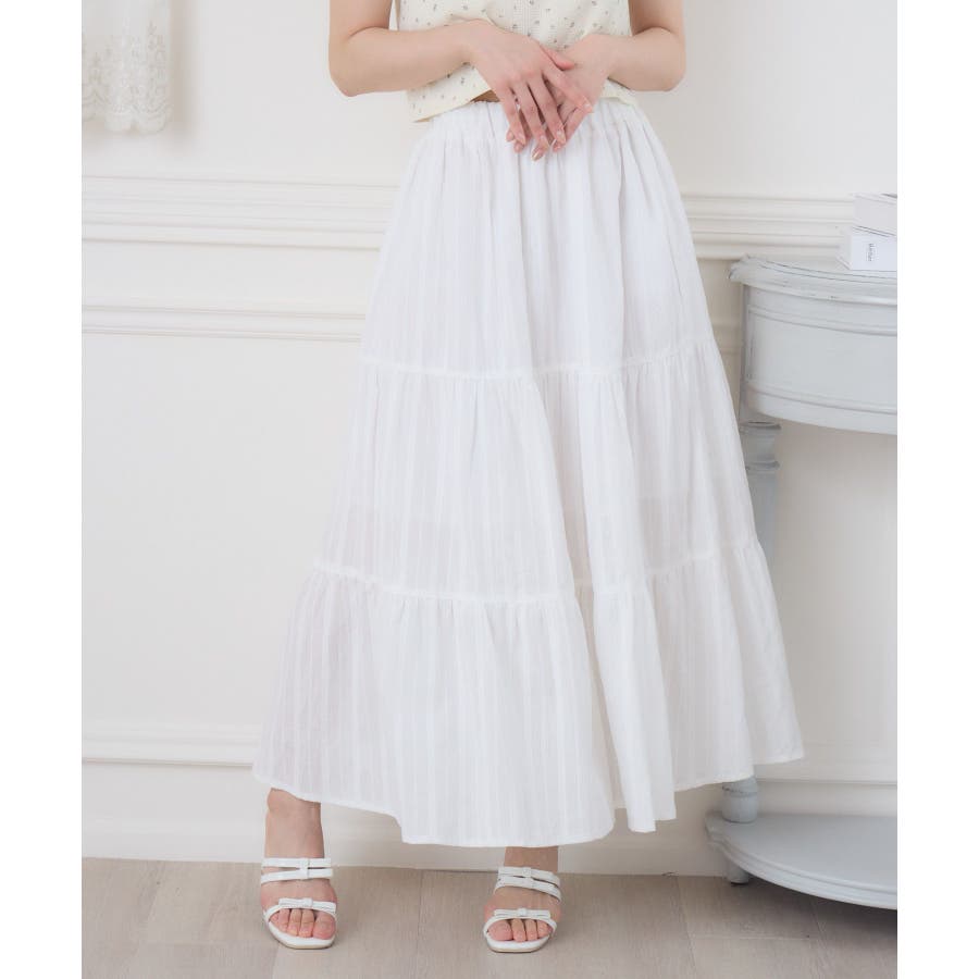 <今年らしいレースデザインのロングスカート>▼デザイン綿素材の軽い着心地が魅力のロングスカート。ウエストは360°ゴムになっているので、伸縮性たっぷり。風通しが良く、夏の気温でもストレスフリーで着て頂けるアイテムです。▼コーディネートシンプルにTシャツ合わせでも可愛くコーデが決まるアイテム。女性らしいデザインのトップスと相性ばっちりです。------------------------------生地感:普通伸縮性:なし透け感:なし(ホワイトのみ多少ある)裏地:ある------------------------------▼ブランド紹介ems excite (エムズエキサイト)“more fun more cute”今をもっと楽しくもっと可愛くいたい女の子に向けたgirly cuteなブランド#綿スカート #ロングスカート #マキシスカート #ガーリーアイテム #レーススカート▼注意事項※撮影環境やモニター環境によって実際の商品とお色味が多少異なってみえる場合がございます。品番:ES561031G001 / 品名:綿カラミSK