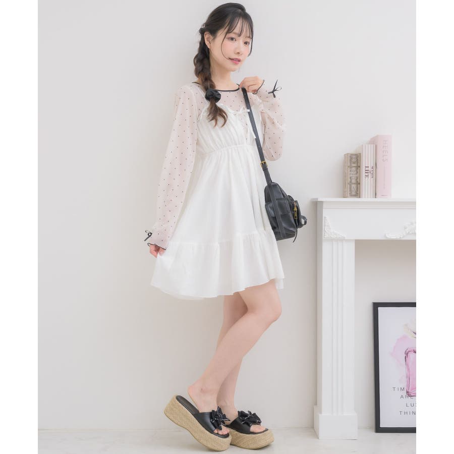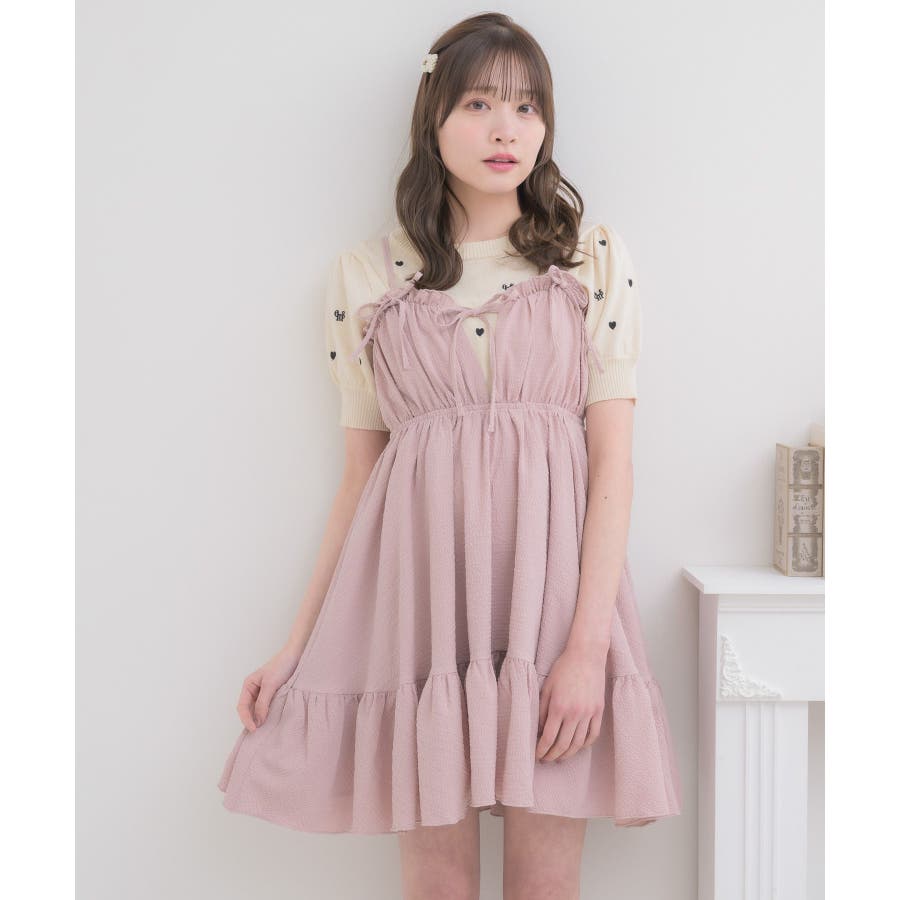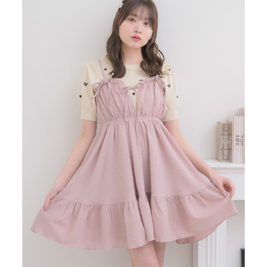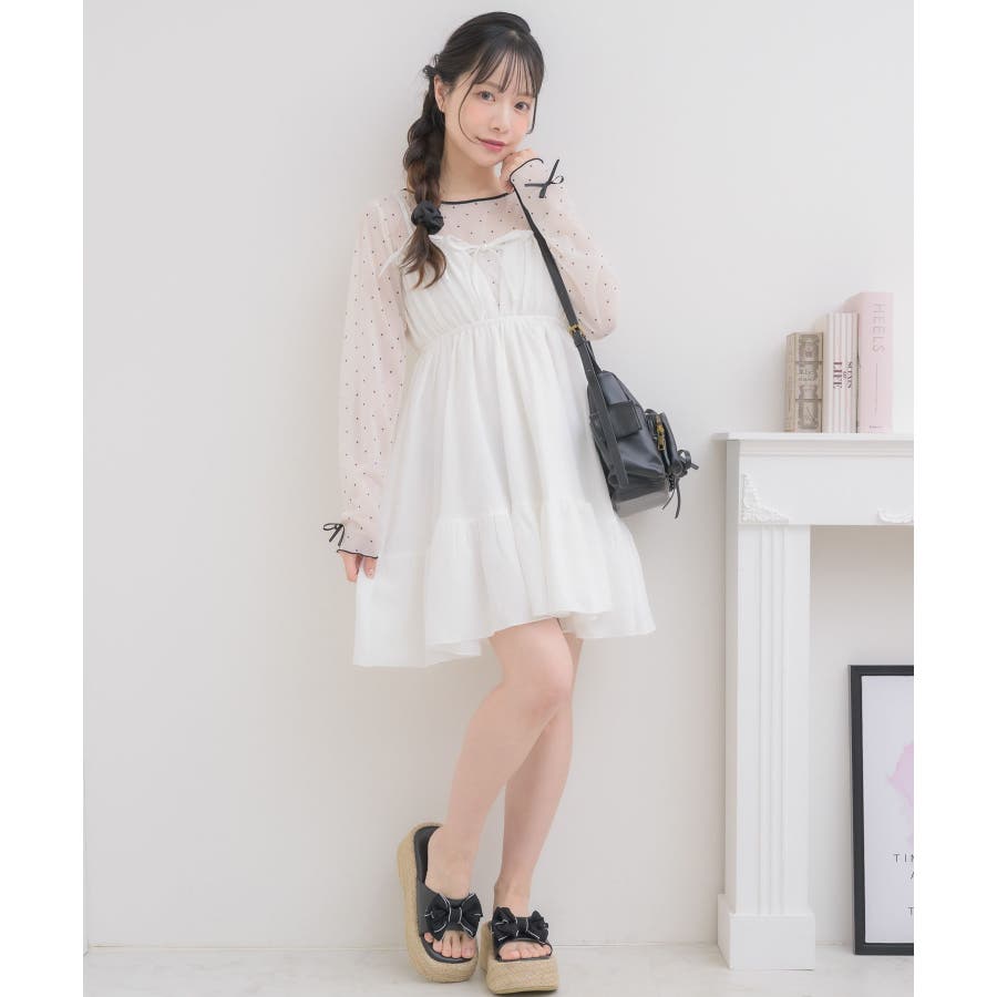 <リボンたっぷりなガーリーデザインのチュニックワンピース>▼デザイン春から大人気のチュニックワンピース。胸元やバックスタイルにリボンデザインが施され、ガーリーなデザインに。ポコポコと表面感ある軽い素材感が、これからの季節にぴったり♪▼コーディネートショートパンツを履いて、ワンピーススタイルで着て頂くのもおすすめ!ボトムにデニムパンツをセレクトし、上からトレーナーを重ね着してフリル見えする着こなしも最近トレンド!------------------------------生地感:普通伸縮性:なし透け感:なし(ホワイトのみ多少あり)裏地:ある------------------------------▼ブランド紹介ems excite (エムズエキサイト)“more fun more cute”今をもっと楽しくもっと可愛くいたい女の子に向けたgirly cuteなブランド#フリル #ワンピース #フリルワンピース #チュニックワンピース #キャミワンピース #デートコーデ #フレンチガーリー #チュニックワンピ▼注意事項※撮影環境やモニター環境によって実際の商品とお色味が 多少異なってみえる場合がございます。品番:ES580022G001 / 品名:メニーリボンキャミOP