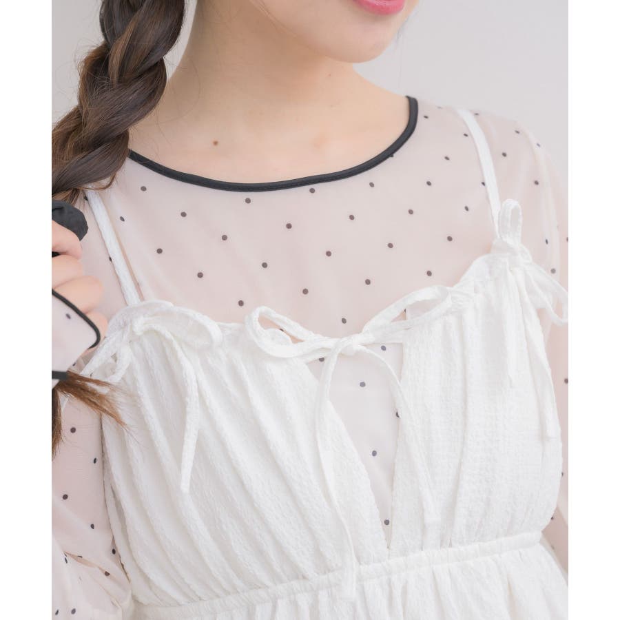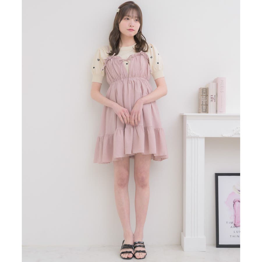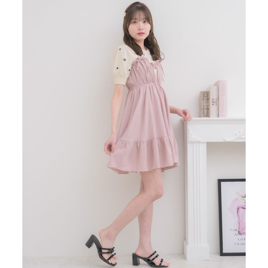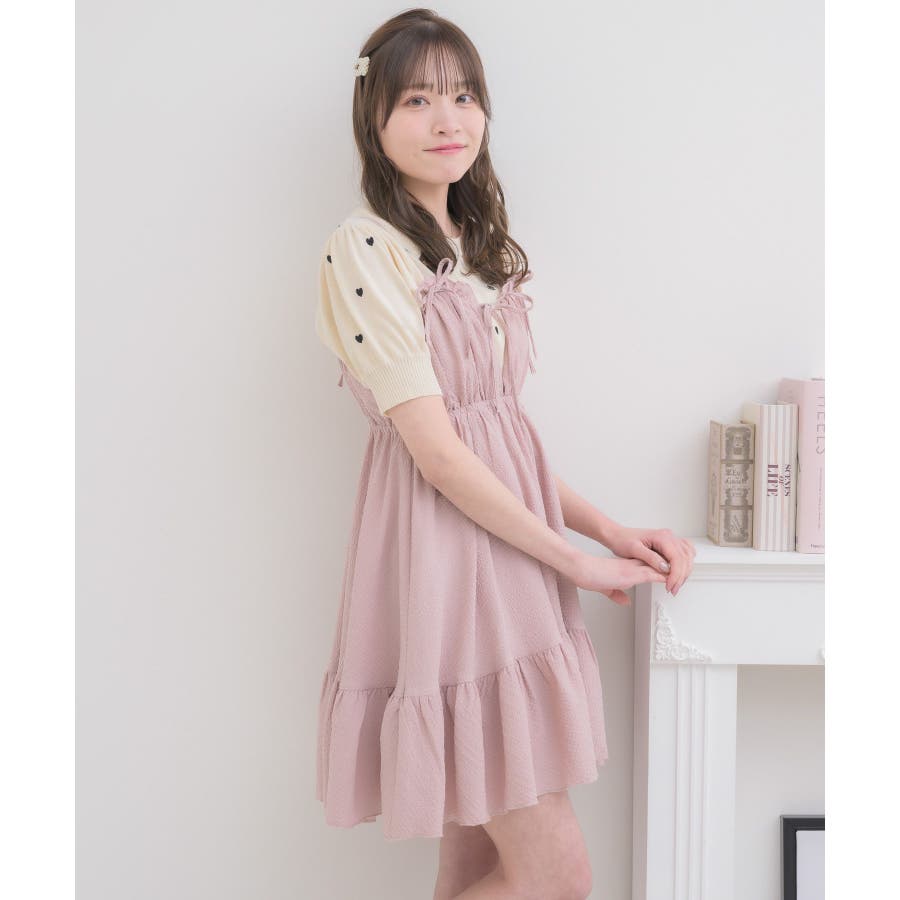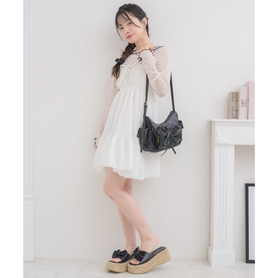 <リボンたっぷりなガーリーデザインのチュニックワンピース>▼デザイン春から大人気のチュニックワンピース。胸元やバックスタイルにリボンデザインが施され、ガーリーなデザインに。ポコポコと表面感ある軽い素材感が、これからの季節にぴったり♪▼コーディネートショートパンツを履いて、ワンピーススタイルで着て頂くのもおすすめ!ボトムにデニムパンツをセレクトし、上からトレーナーを重ね着してフリル見えする着こなしも最近トレンド!------------------------------生地感:普通伸縮性:なし透け感:なし(ホワイトのみ多少あり)裏地:ある------------------------------▼ブランド紹介ems excite (エムズエキサイト)“more fun more cute”今をもっと楽しくもっと可愛くいたい女の子に向けたgirly cuteなブランド#フリル #ワンピース #フリルワンピース #チュニックワンピース #キャミワンピース #デートコーデ #フレンチガーリー #チュニックワンピ▼注意事項※撮影環境やモニター環境によって実際の商品とお色味が 多少異なってみえる場合がございます。品番:ES580022G001 / 品名:メニーリボンキャミOP