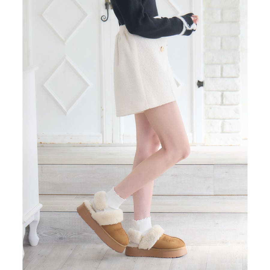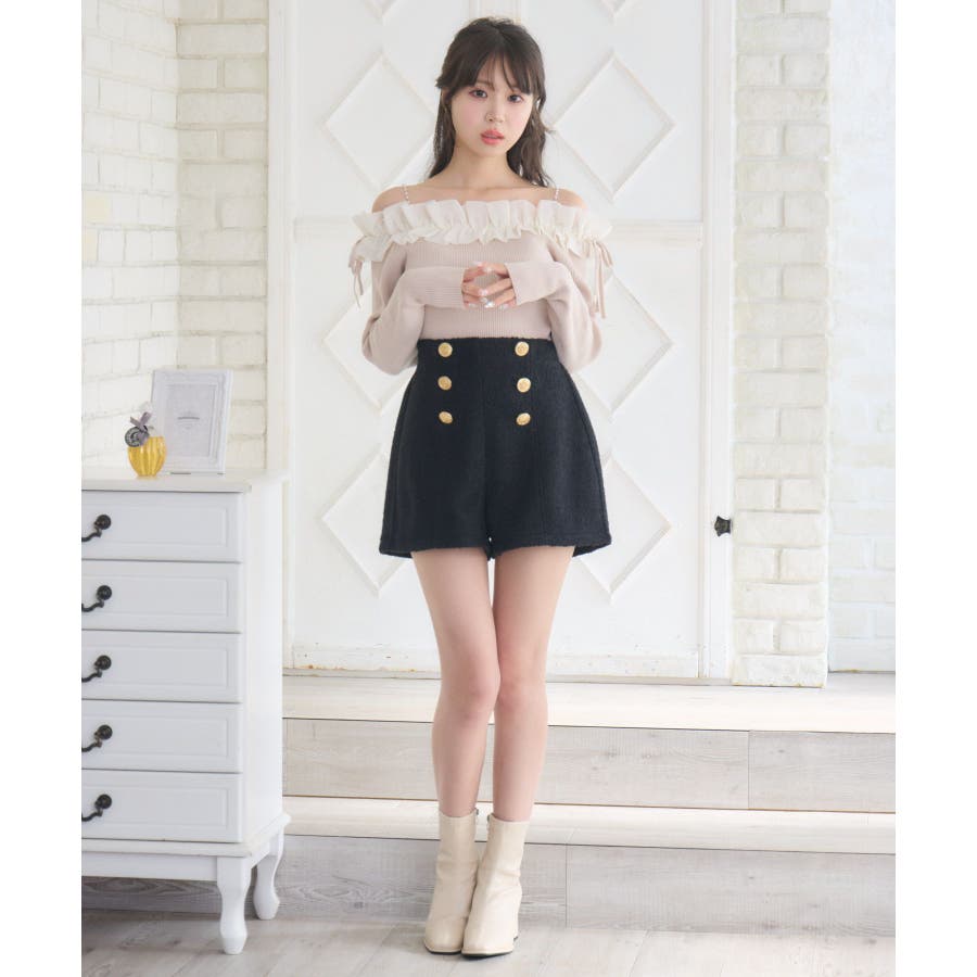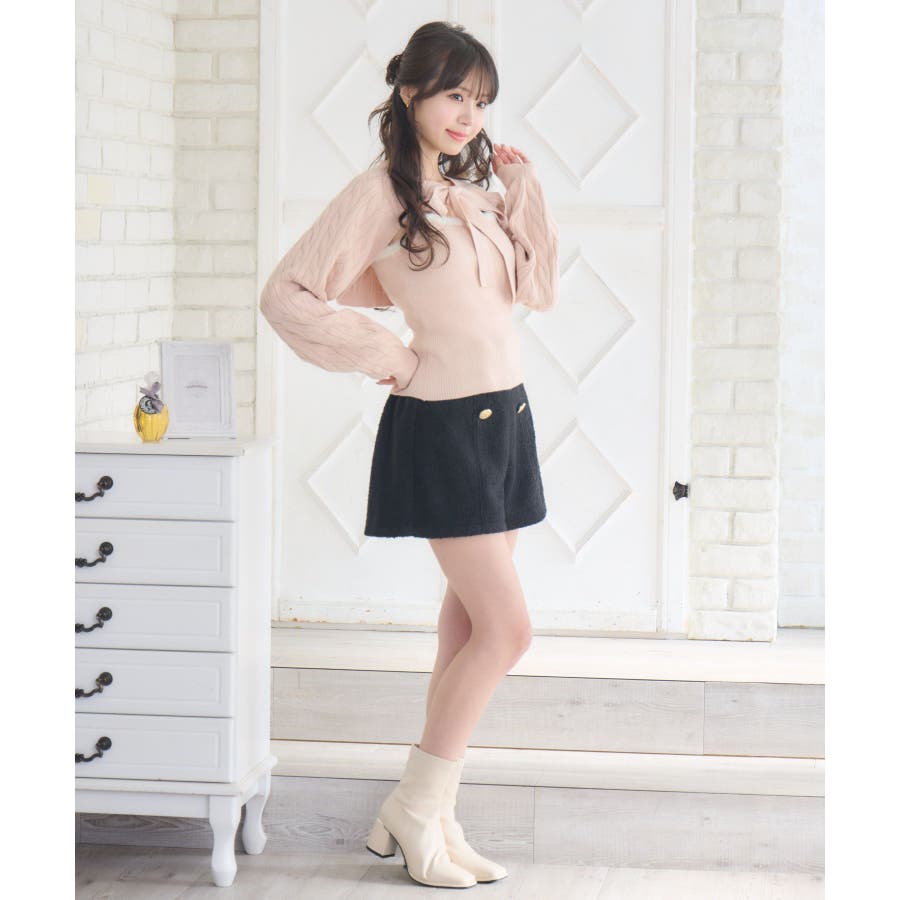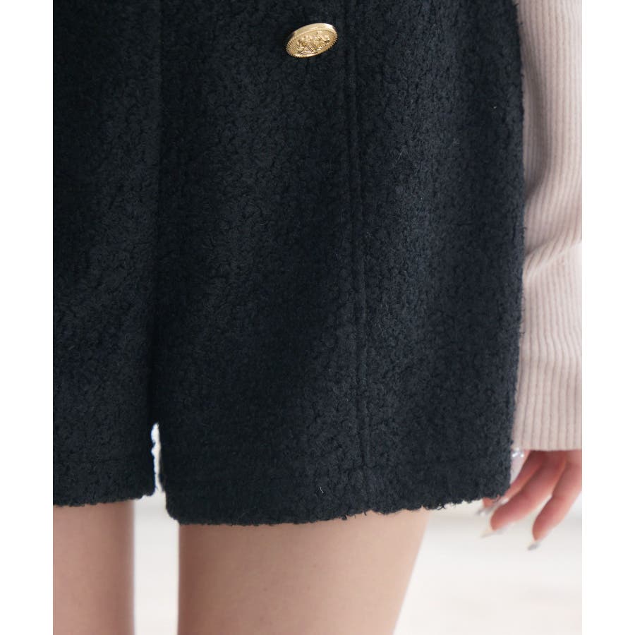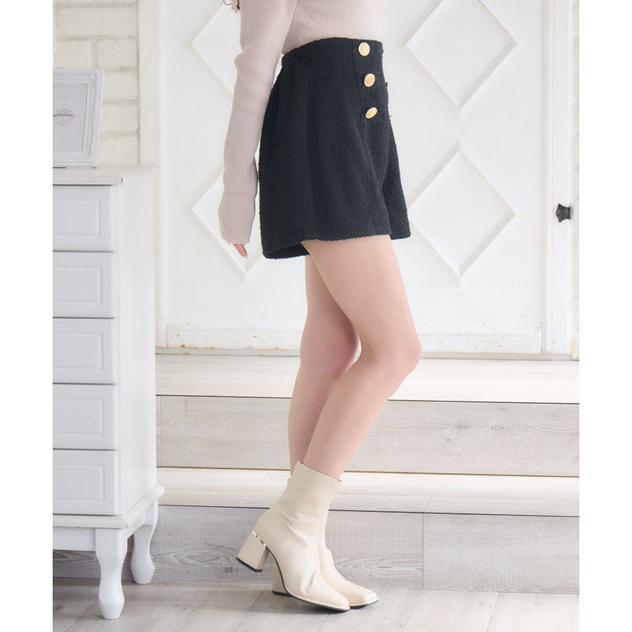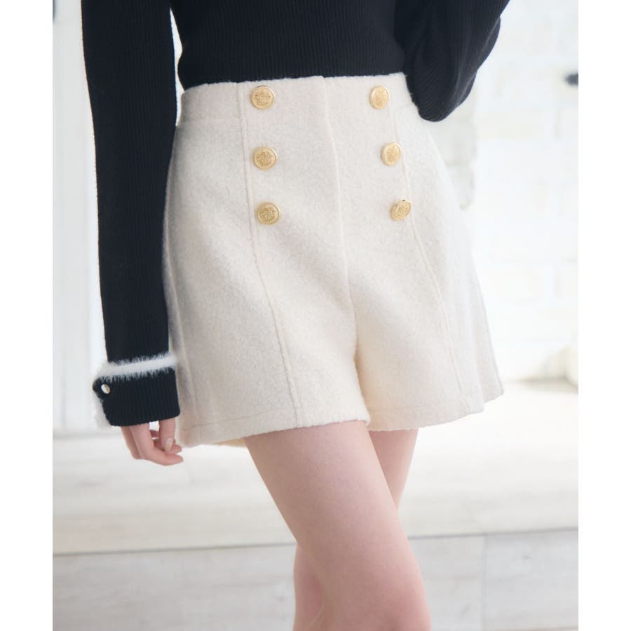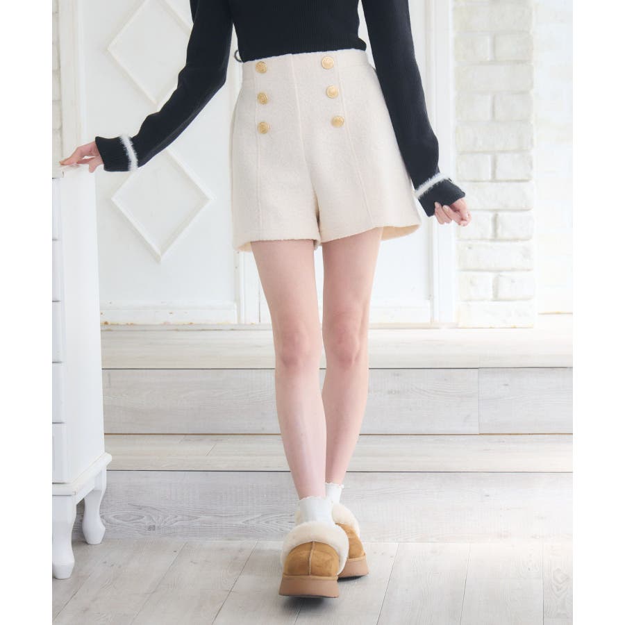 <毎年大人気のフロントボタンショートパンツ>▼デザインems exciteで毎回大人気を頂くシリーズアイテムの新作が登場!くるくるした起毛感ある暖かい素材が冬らしい!フロント部分にはゴールドボタンが6つデザインされていて、高級感溢れる。シンプルで使いやすいホワイトとブラックの2色で、デイリー使いにおすすめです♪▼コーディネートトップスはインして、フロントのデザインをメインにスタイリングを組むのがおすすめ!チュニックニットのインナーにセレクトするのも◎------------------------------生地感:やや厚手伸縮性:なし透け感:なし裏地:ある------------------------------▼ブランド紹介ems excite (エムズエキサイト)“more fun more cute”今をもっと楽しくもっと可愛くいたい女の子に向けたgirly cuteなブランド#ショートパンツ #金ボタン #ショート丈 #秋アイテム #ゴールドボタン #起毛パンツ▼注意事項※撮影環境やモニター環境によって実際の商品とお色味が 多少異なってみえる場合がございます。品番:EU537532B001 / 品名:クルクル起毛SPT