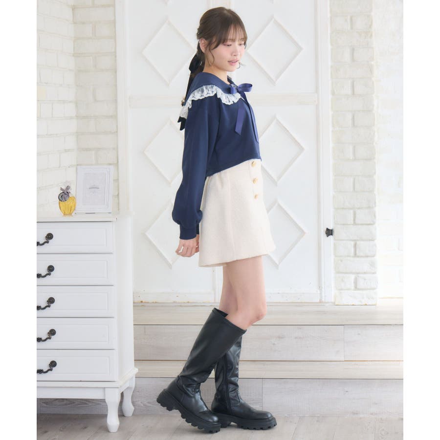 | 素材 | 本体 ポリエステル:65% 綿:35% リブ部分 ポリエステル:62% 綿:33% ポリウレタン:5% リボン部分 ポリエステル:100% レース部分 ポリエステル:100% |