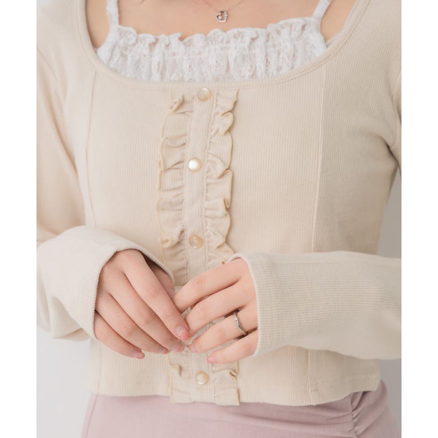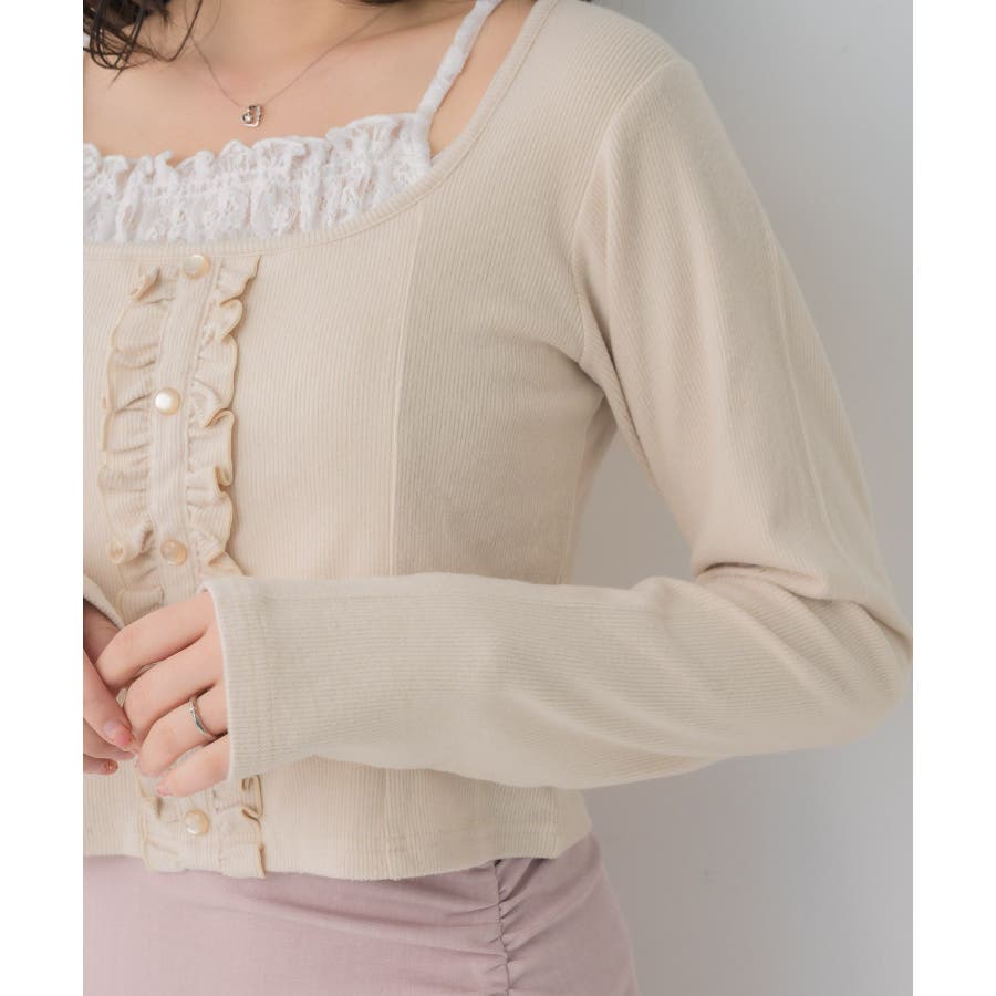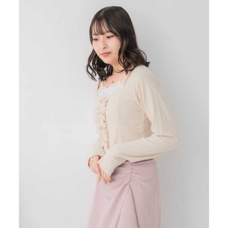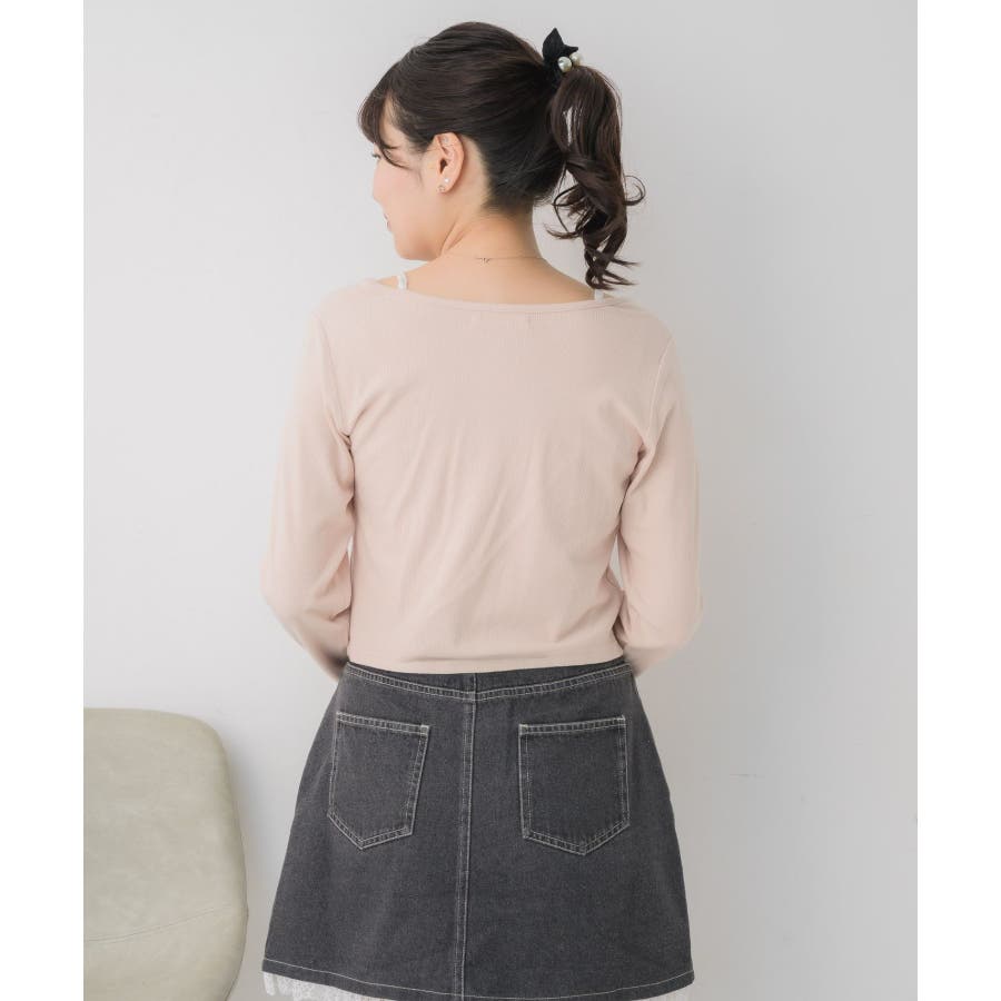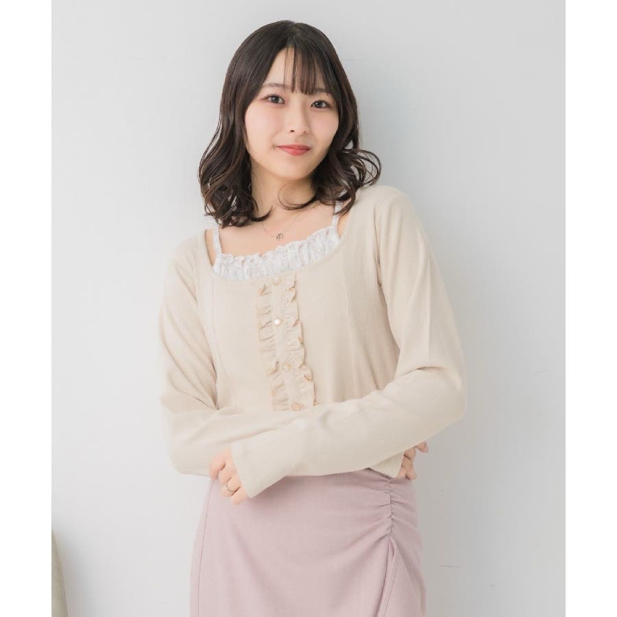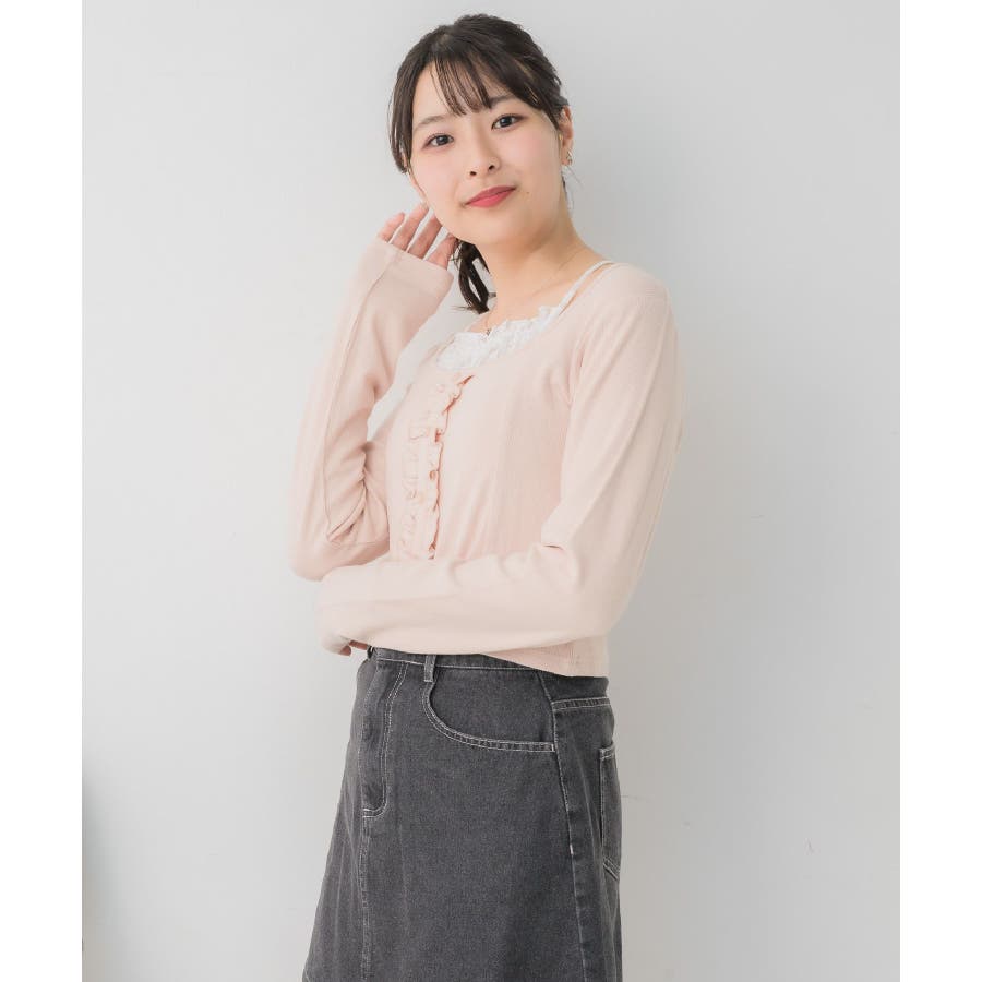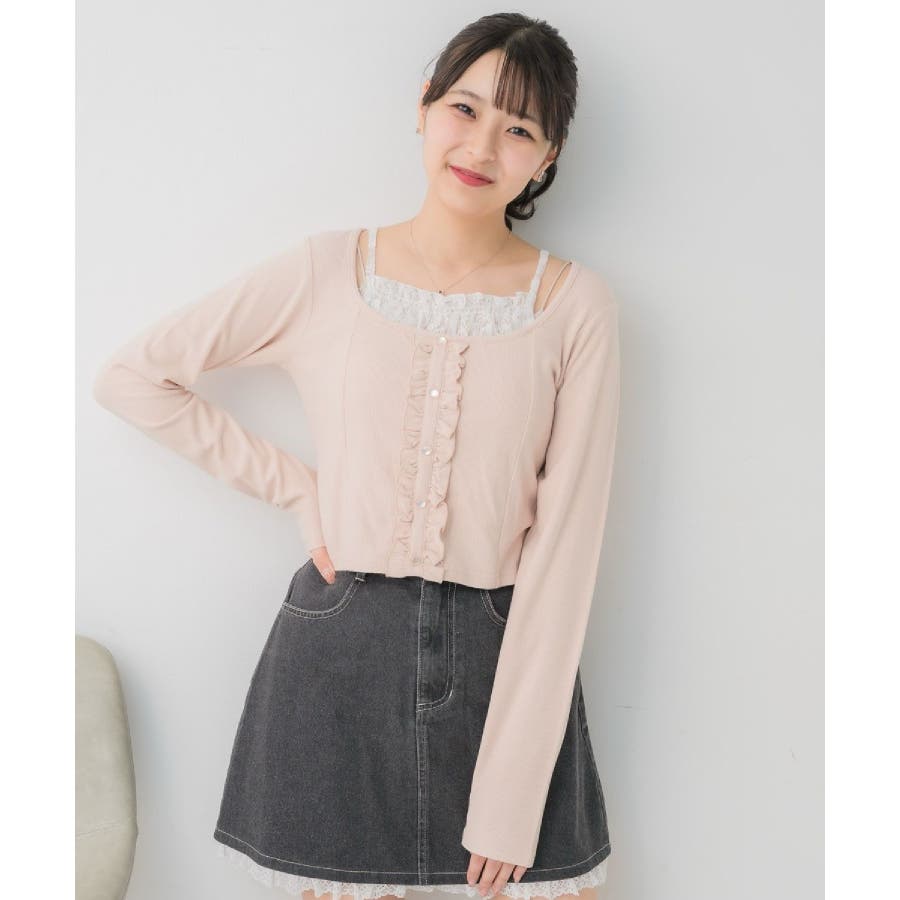 <華奢見え確定!フェイクレイヤードデザインのガーリーカットソー>▼デザインレイヤードしているようなデザインがポイントのカットソー!フロント部分にフリルがデザインされていて、ガーリーなアクセントに。レイヤード風のレースは肩紐部分が細めにデザインされているので、華奢見え効果も◎コンパクトな着丈で、上半身をすっきり見せてくれるのも嬉しいポイントです。▼コーディネートどんなボトムと合わせてもおしゃれ感溢れるデザインアイテム。フリルスカートやプリーツスカートと合わせて、甘めなスタイリングがemsらしくておすすめ◎------------------------------生地感:普通伸縮性:ある透け感:なし裏地:なし------------------------------▼ブランド紹介ems excite (エムズエキサイト)“more fun more cute”今をもっと楽しくもっと可愛くいたい女の子に向けたgirly cuteなブランド#カットソー #フリル #ドッキング #レース #ガーリー #レイヤード ▼注意事項※撮影環境やモニター環境によって実際の商品とお色味が 多少異なってみえる場合がございます。品番:EU541511G006 / 品名:レースドッキングCT