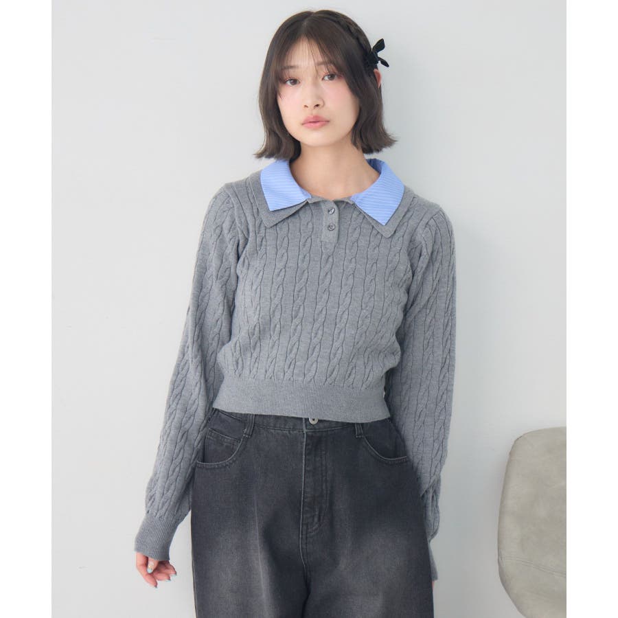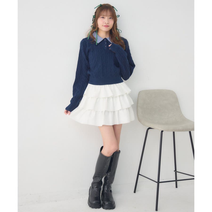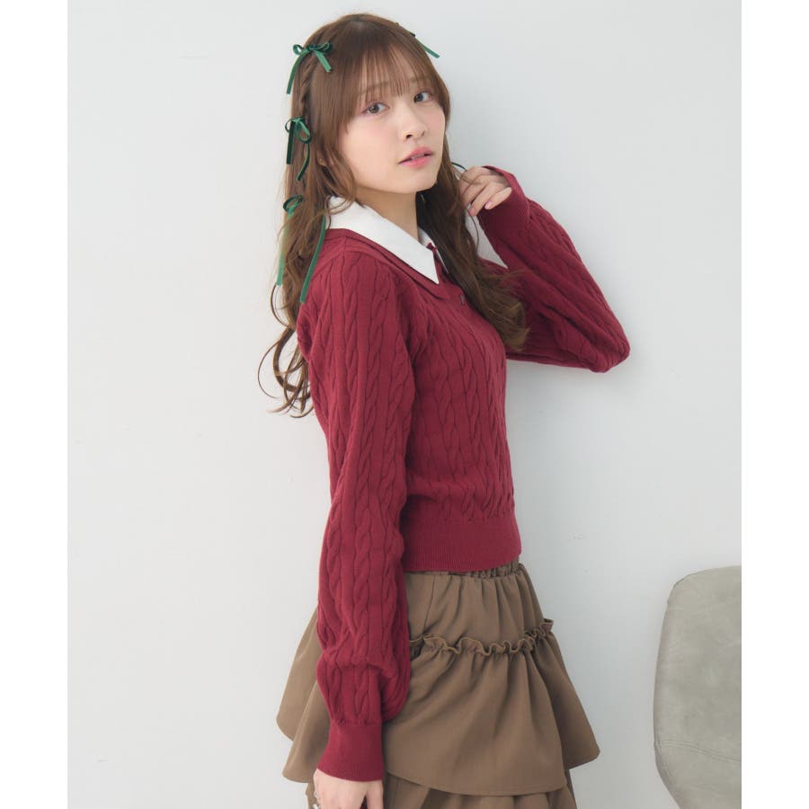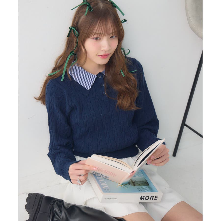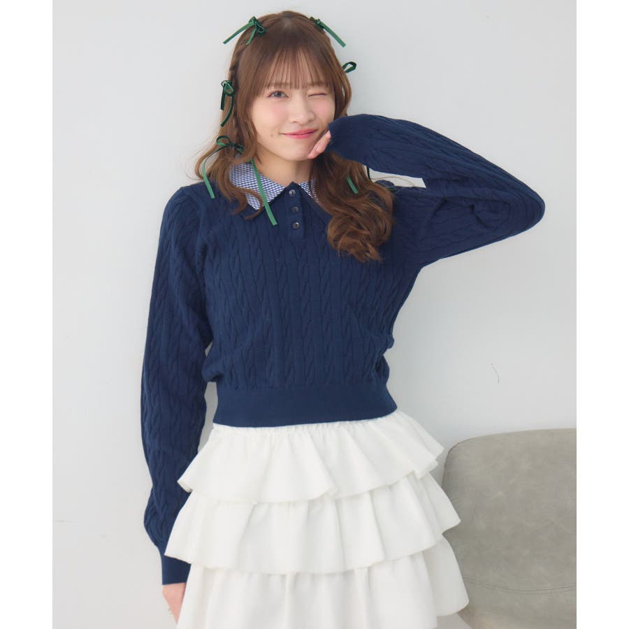 〈今年っぽいW襟が目を惹くトレンドニット〉▼デザインW襟でレイヤード風のケーブルニット。襟はシャツとニットが重なったデザインで、今年らしいディティール。胸元の釦で着脱可能です。冬っぽいケーブル編みになっていて、スクールガールコーデにもぴったり♪▼コーディネートミニ丈ボトムでガーリーにスタイリングがおすすめ!プリーツスカート合わせで韓国っぽいスクールガールコーデも可愛い!------------------------------生地感:普通伸縮性:ある透け感:なし裏地:なし------------------------------▼ブランド紹介ems excite (エムズエキサイト)“more fun more cute”今をもっと楽しくもっと可愛くいたい女の子に向けたgirly cuteなブランド#ニット #ニットアイテム #ケーブルニット #ダブル襟 #シャツレイヤード #襟ニット #レイヤード風▼注意事項※撮影環境やモニター環境によって実際の商品とお色味が 多少異なってみえる場合がございます。品番:EU541512B002 / 品名:SH襟ドッキングケーブルNT