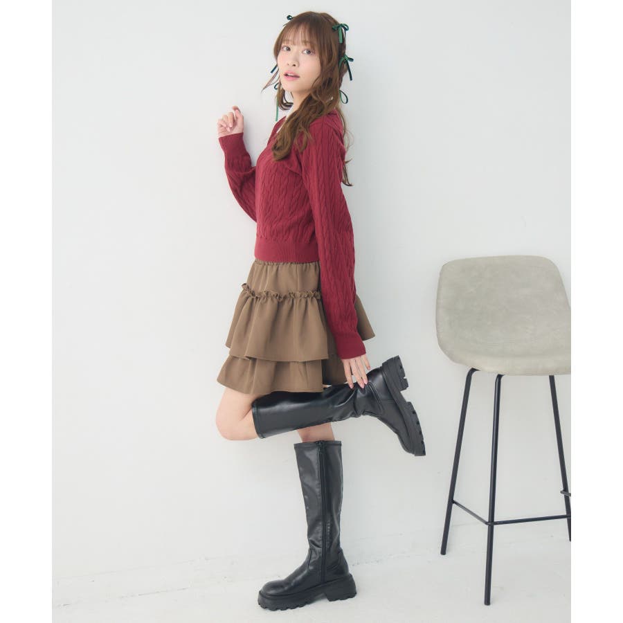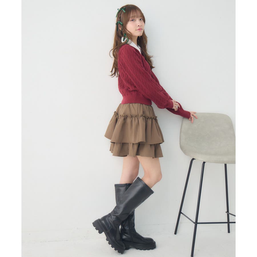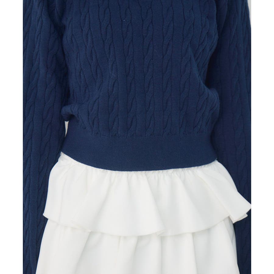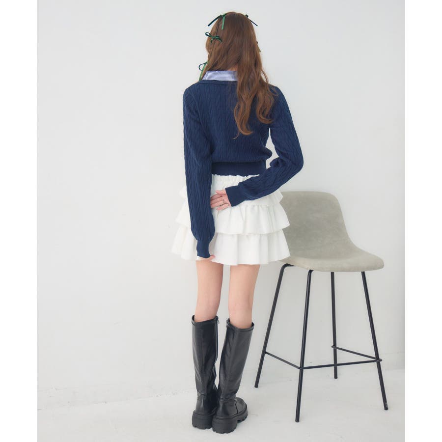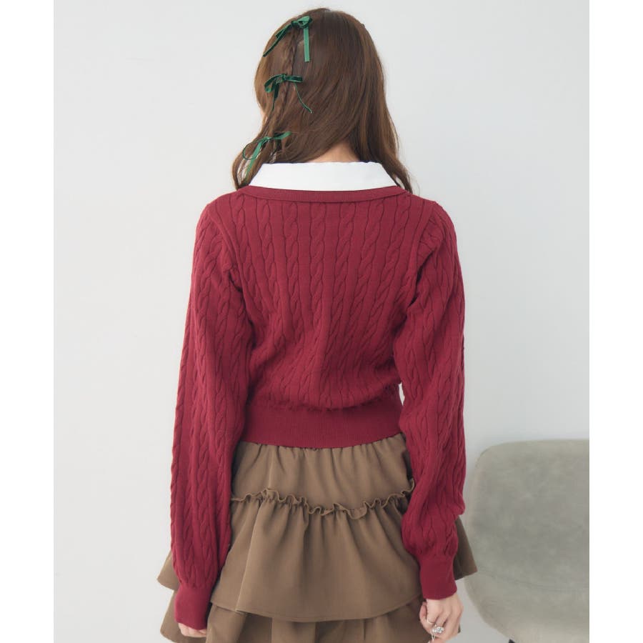 〈今年っぽいW襟が目を惹くトレンドニット〉▼デザインW襟でレイヤード風のケーブルニット。襟はシャツとニットが重なったデザインで、今年らしいディティール。胸元の釦で着脱可能です。冬っぽいケーブル編みになっていて、スクールガールコーデにもぴったり♪▼コーディネートミニ丈ボトムでガーリーにスタイリングがおすすめ!プリーツスカート合わせで韓国っぽいスクールガールコーデも可愛い!------------------------------生地感:普通伸縮性:ある透け感:なし裏地:なし------------------------------▼ブランド紹介ems excite (エムズエキサイト)“more fun more cute”今をもっと楽しくもっと可愛くいたい女の子に向けたgirly cuteなブランド#ニット #ニットアイテム #ケーブルニット #ダブル襟 #シャツレイヤード #襟ニット #レイヤード風▼注意事項※撮影環境やモニター環境によって実際の商品とお色味が 多少異なってみえる場合がございます。品番:EU541512B002 / 品名:SH襟ドッキングケーブルNT