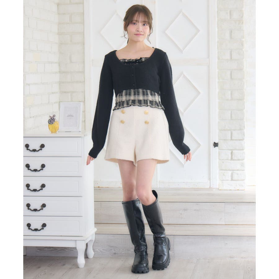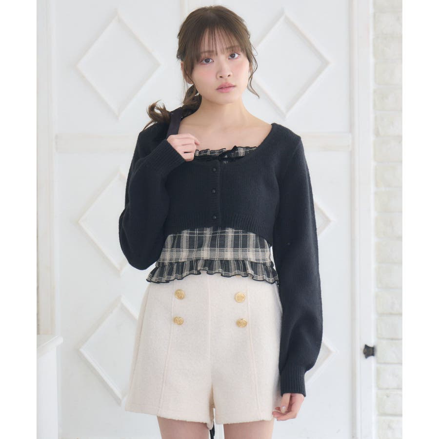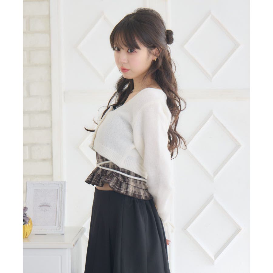 〈大人可愛いフェミニンコーデに仕上るニットセットアイテム〉▼デザインフェミニンで可愛いニットとキャミソールのセットアイテム!着丈が短いカーディガンは裾にリボンがついていて、ウエストを細く魅せてくれます。フロント部分の釦は開けることもできるので、羽織スタイルも楽しめます。キャミソールは裾にフリルデザインが施されていて、emsらしい可愛らしいポイント♪胸元のベロアリボンも冬っぽくデートコーデにもおすすめです◎▼コーディネートガーリーなデザインで、デートコーデにおすすめ♪プリーツスカートやフリルスカート、ショートパンツなどと合わせてみてください!▼セット内容・キャミソール・ニットカーディガン------------------------------生地感:普通伸縮性:ある透け感:なし裏地:なし------------------------------▼ブランド紹介ems excite (エムズエキサイト)“more fun more cute”今をもっと楽しくもっと可愛くいたい女の子に向けたgirly cuteなブランド#セットアイテム #カーディガン #ショートニット #カーディガン #キャミセット #フェミニンコーデ▼注意事項※撮影環境やモニター環境によって実際の商品とお色味が 多少異なってみえる場合がございます。品番:EU541512G003 / 品名:ショートNT&キャミSET