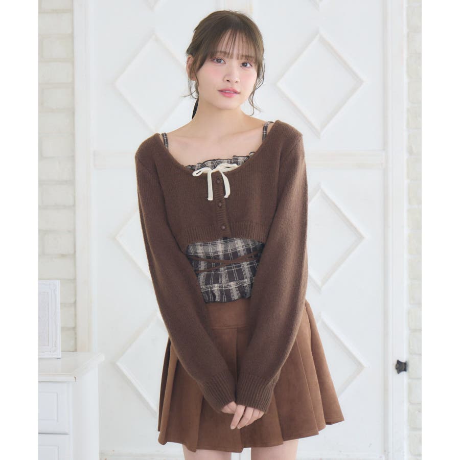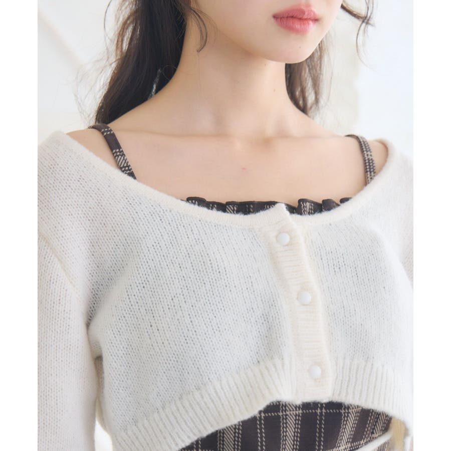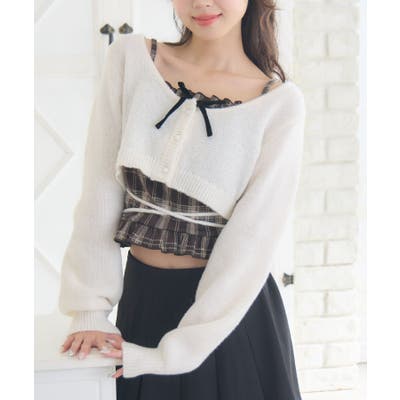 | 素材 | カーディガン ポリエステル:100% キャミソール 本体 ポリエステル:98% ポリウレタン:2% リボン部分 ポリエステル:100% |
