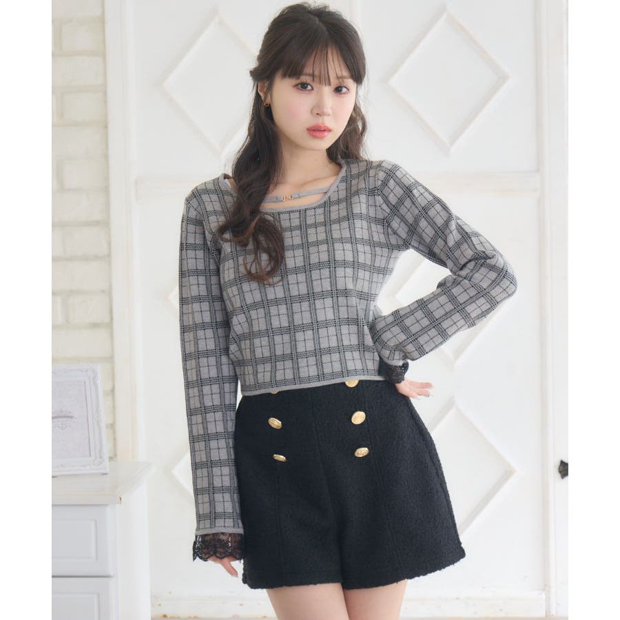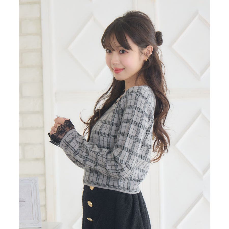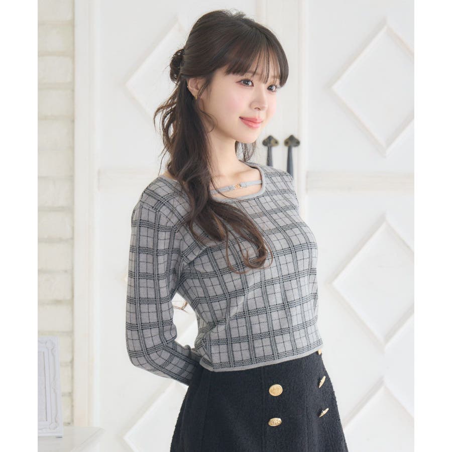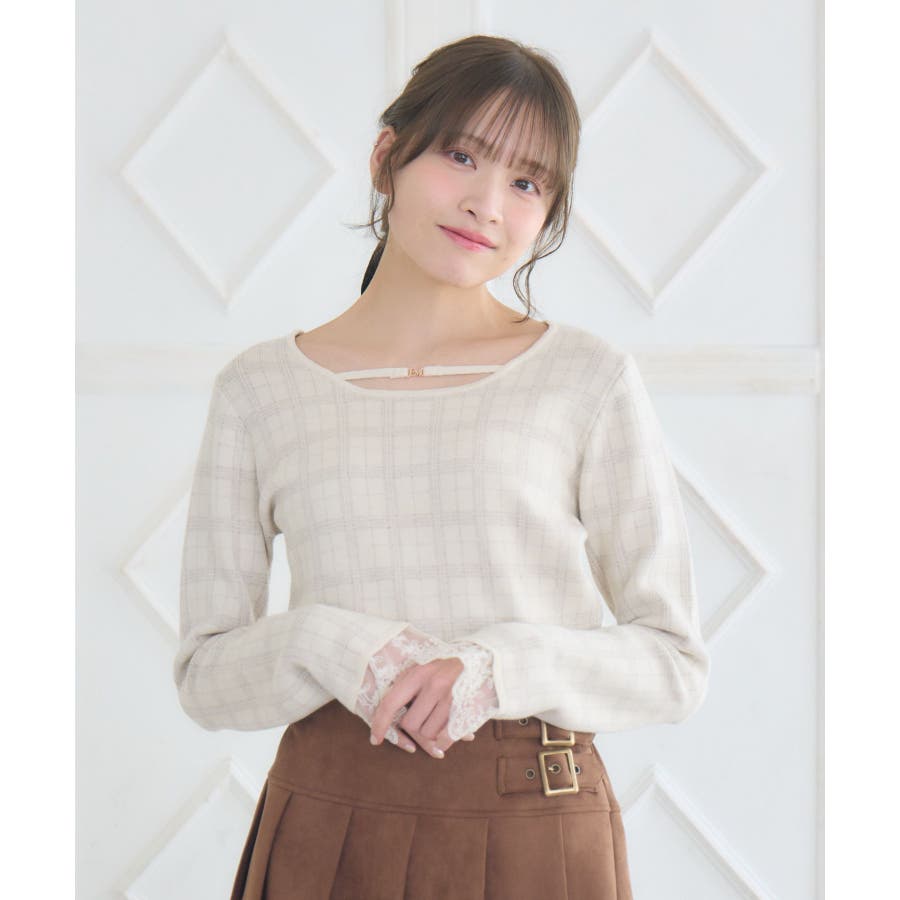 <フェミニンなコーデにピッタリなチェック柄ニット>▼デザイン胸元のプレートが可愛いニットアイテム。秋冬にピッタリなチェック柄がパッと目を惹くデザインです。袖口はレースで華やかな印象に。インナーにもメインにも使える冬にマストバイアイテム♪▼コーディネートコンパクトな着丈なので、ハイウエストのボトムとも相性◎インナー使いもしやすいので、1枚持っておけば重宝しそう♪------------------------------生地感:普通伸縮性:ある透け感:なし裏地:なし------------------------------▼ブランド紹介ems excite (エムズエキサイト)“more fun more cute”今をもっと楽しくもっと可愛くいたい女の子に向けたgirly cuteなブランド#ニット #プレート #インナーニット #レーススリーブ #ガーリー #袖レース #レースデザイン #チェック柄▼注意事項※撮影環境やモニター環境によって実際の商品とお色味が 多少異なってみえる場合がございます。品番:EU541512G004 / 品名:チェックジャガードNTPO