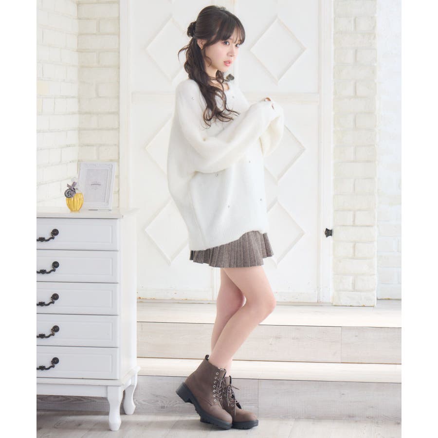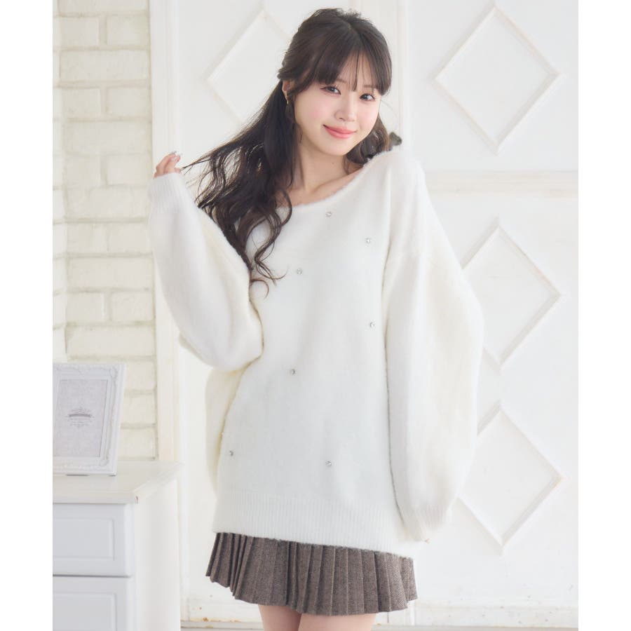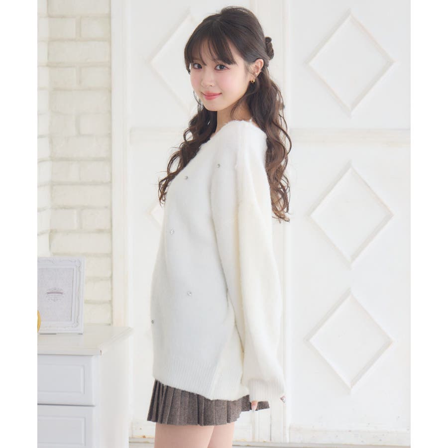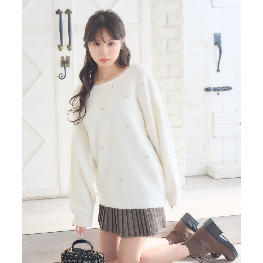 〈ビックシルエットでゆるふわコーデが叶う起毛ニット〉▼デザインシンプルなデザインながらフロント部分に施されたビジューが目を惹くニットアイテム。ゆるっとした丈感で、抜け感と“華奢見え”が叶うシルエット。起毛感あるシャギー素材でモコモコした触り心地で防寒もしっかりできるのが嬉しい♪▼コーディネートショートパンツと合わせればチュニックニットワンピースのようなスタイリングに。デニムやスウェットパンツと合わせることでカジュアルコーデも可能です◎------------------------------生地感:普通伸縮性:あり透け感:なし裏地:なし------------------------------▼ブランド紹介ems excite (エムズエキサイト)“more fun more cute”今をもっと楽しくもっと可愛くいたい女の子に向けたgirly cuteなブランド#ビジューアイテム #ビッグシルエット #オーバーサイズ #ビジューニット #シャギーニット #ガーリーコーデ▼注意事項※撮影環境やモニター環境によって実際の商品とお色味が多少異なってみえる場合がございます。品番:EU541512G005 / 品名:ビジュー付き起毛BIGNT