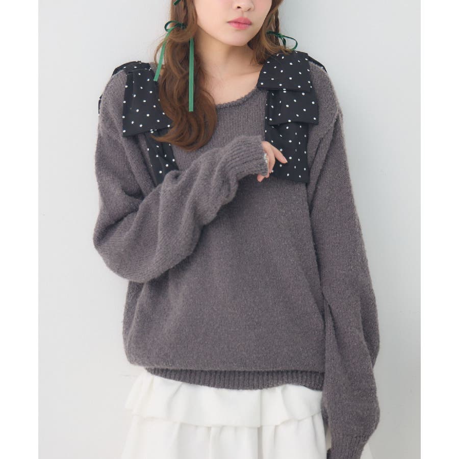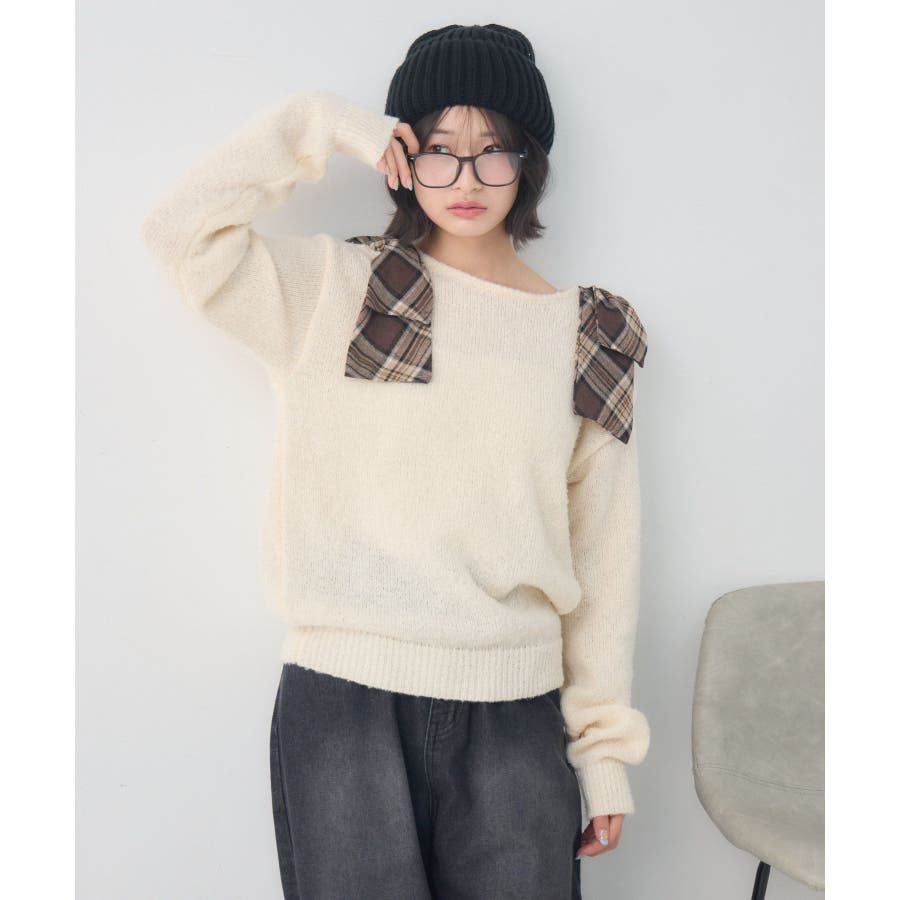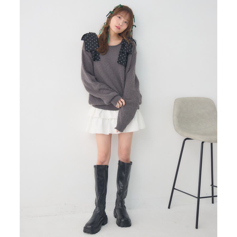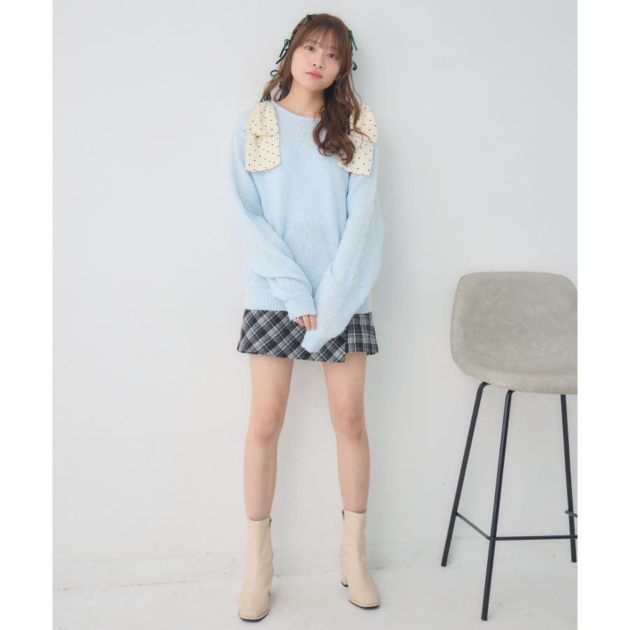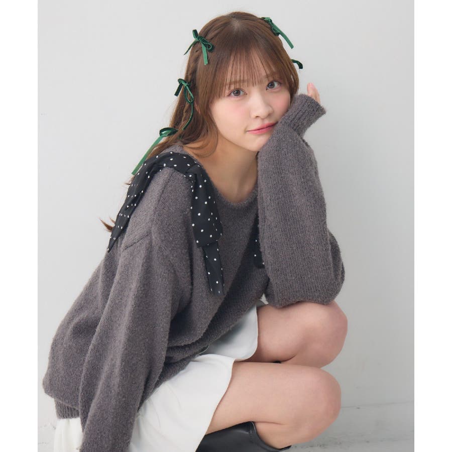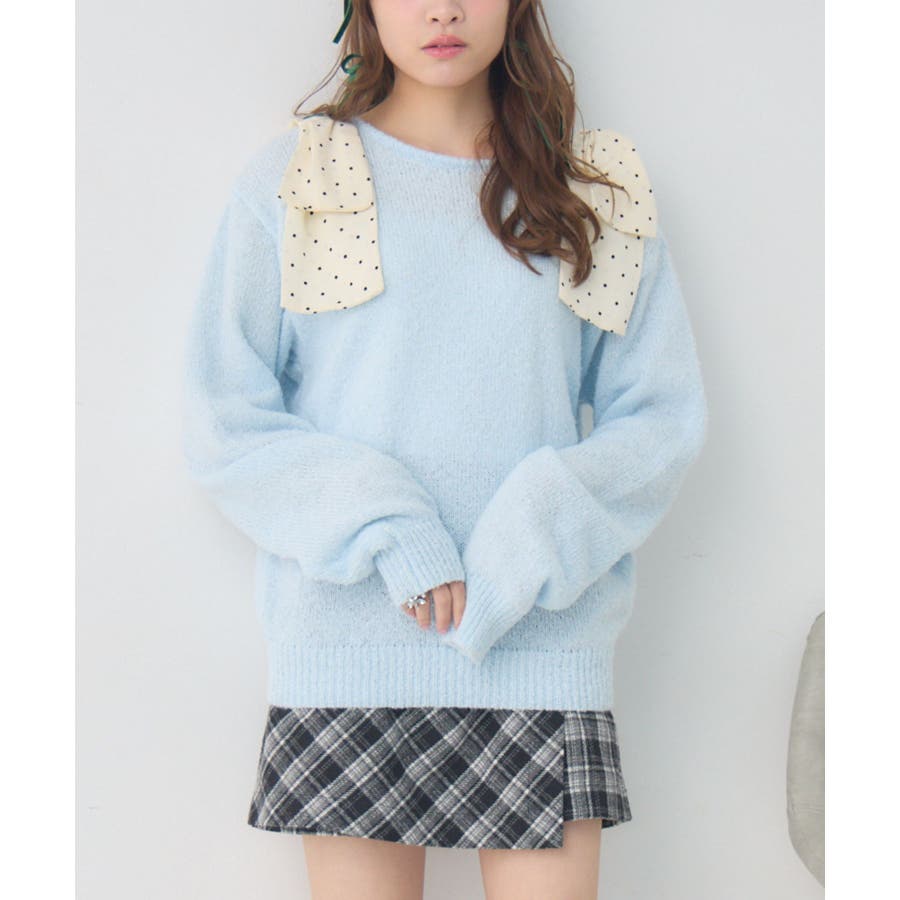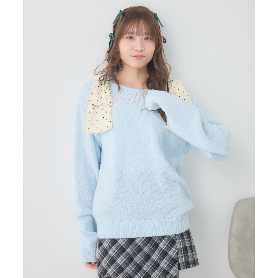 <ラフな素材と甘めのリボンがマッチした甘カジニット>▼デザイン肩のリボンが目を惹くニットアイテム。リボンはアソートで柄の生地が用いられていて、デザイン性も◎ポコポコした素材がカジュアルで、甘さもカジュアルさもバランスの取れた印象に。ビックシルエットでゆったりした着心地も確保でき、冬のお出かけに嬉しい1枚。▼コーディネートショートパンツと合わせればチュニックニットのような着こなしに。フリルスカートで甘めにスタイリングするのも、デニムでカジュアルに着こなすのも◎------------------------------生地感:普通伸縮性:ある透け感:なし裏地:なし------------------------------▼ブランド紹介ems excite (エムズエキサイト)“more fun more cute”今をもっと楽しくもっと可愛くいたい女の子に向けたgirly cuteなブランド#リボンコーデ #リボンニット #ガーリーコーデ #チェック柄 #ドット柄▼注意事項※撮影環境やモニター環境によって実際の商品とお色味が多少異なってみえる場合がございます。品番:EU541512G007 / 品名:ポコポコ肩リボンNTPO