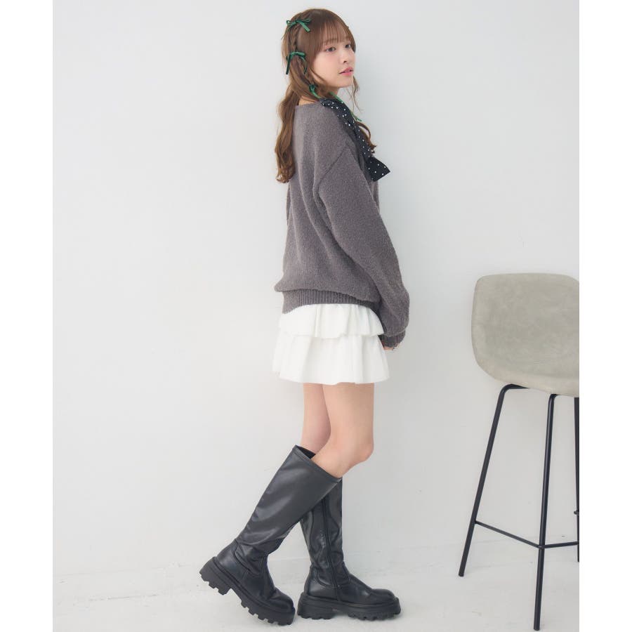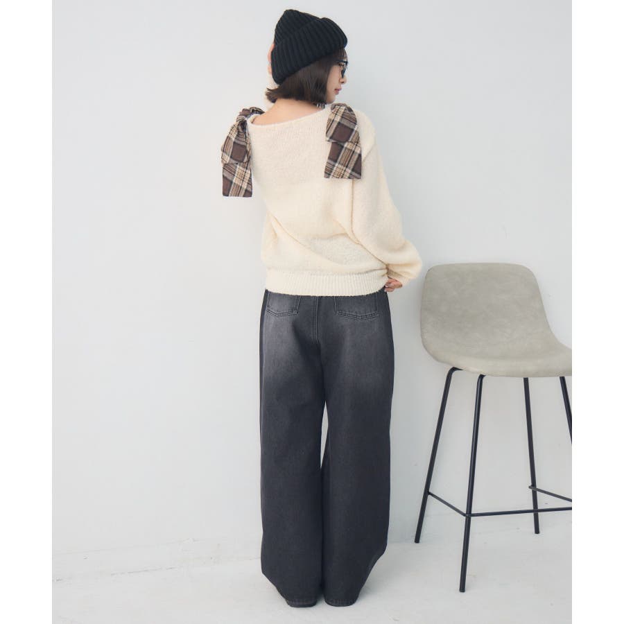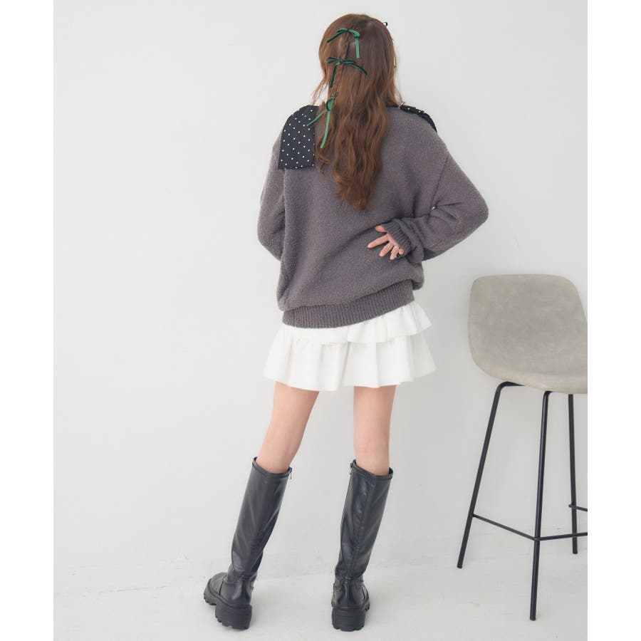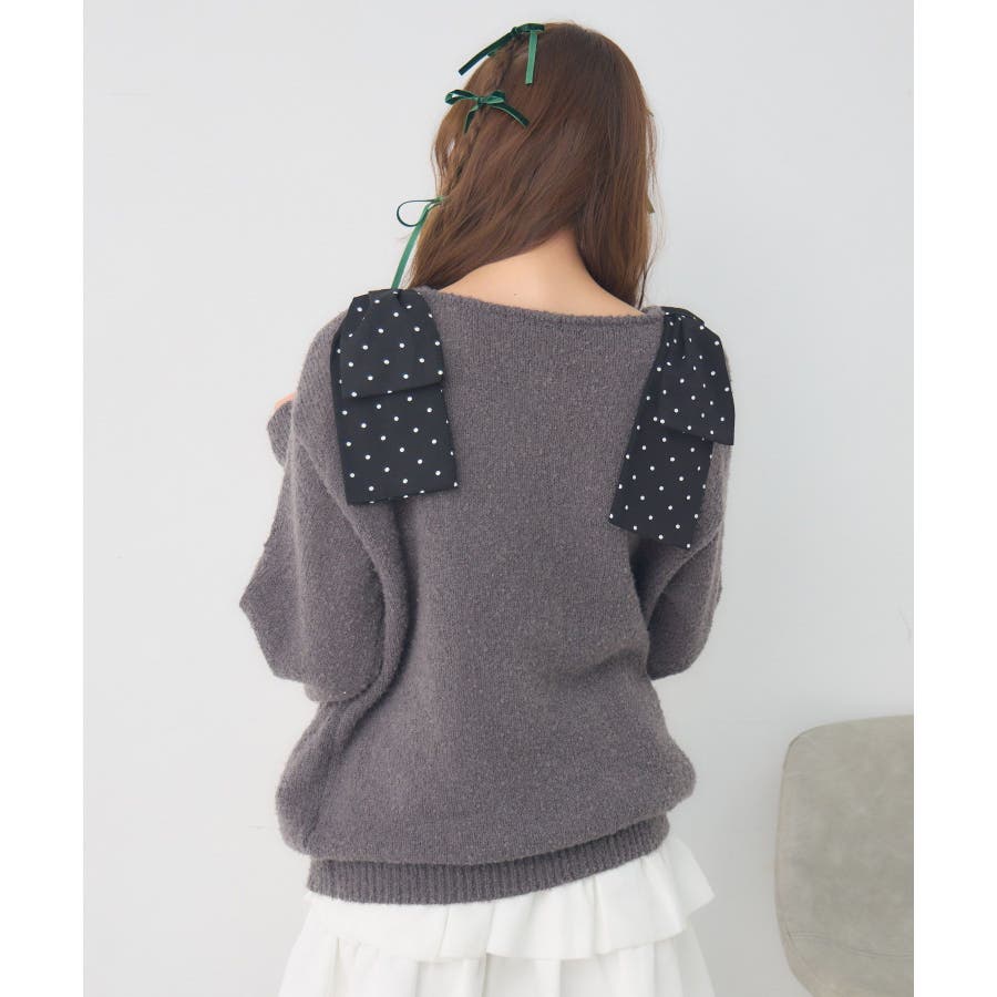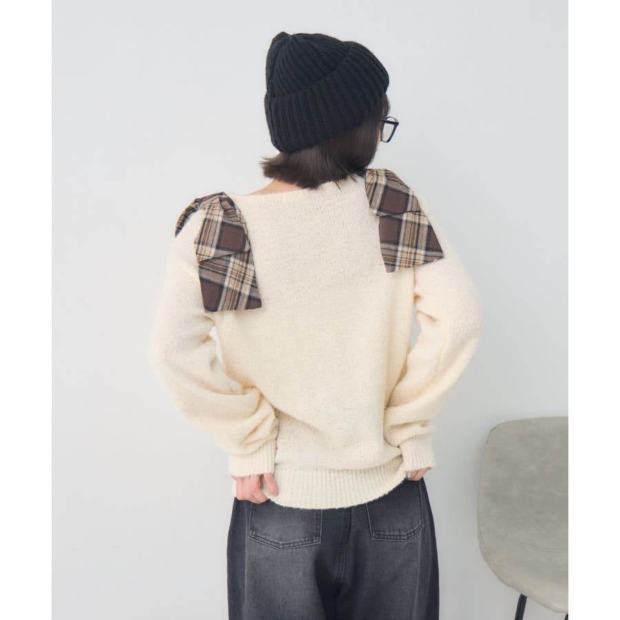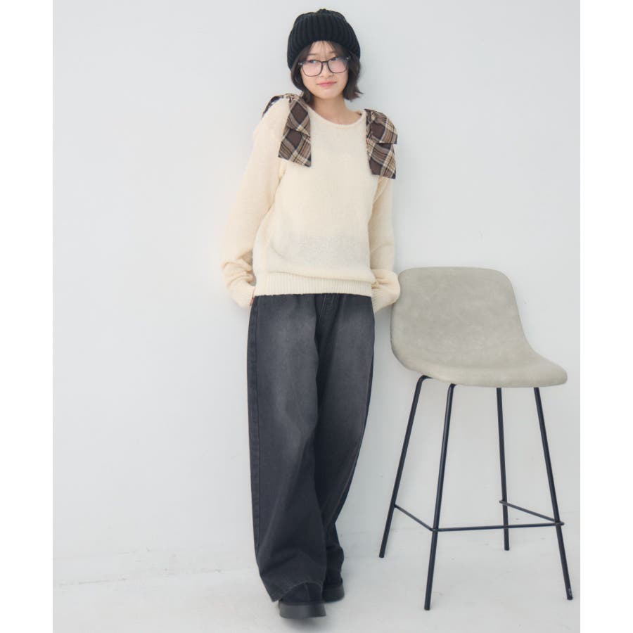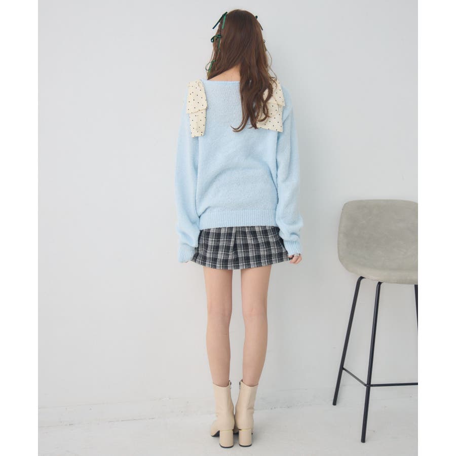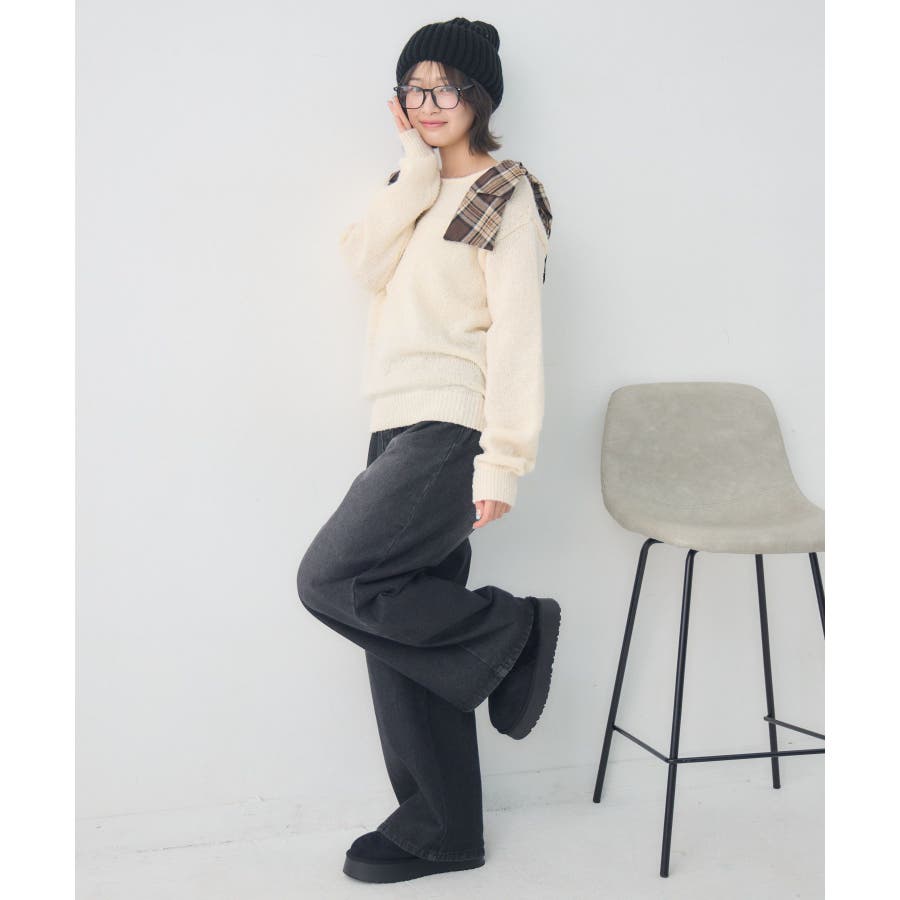 <ラフな素材と甘めのリボンがマッチした甘カジニット>▼デザイン肩のリボンが目を惹くニットアイテム。リボンはアソートで柄の生地が用いられていて、デザイン性も◎ポコポコした素材がカジュアルで、甘さもカジュアルさもバランスの取れた印象に。ビックシルエットでゆったりした着心地も確保でき、冬のお出かけに嬉しい1枚。▼コーディネートショートパンツと合わせればチュニックニットのような着こなしに。フリルスカートで甘めにスタイリングするのも、デニムでカジュアルに着こなすのも◎------------------------------生地感:普通伸縮性:ある透け感:なし裏地:なし------------------------------▼ブランド紹介ems excite (エムズエキサイト)“more fun more cute”今をもっと楽しくもっと可愛くいたい女の子に向けたgirly cuteなブランド#リボンコーデ #リボンニット #ガーリーコーデ #チェック柄 #ドット柄▼注意事項※撮影環境やモニター環境によって実際の商品とお色味が多少異なってみえる場合がございます。品番:EU541512G007 / 品名:ポコポコ肩リボンNTPO