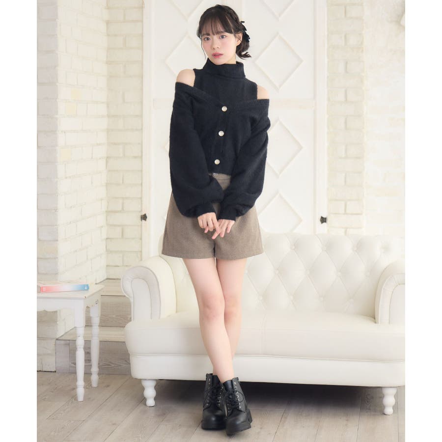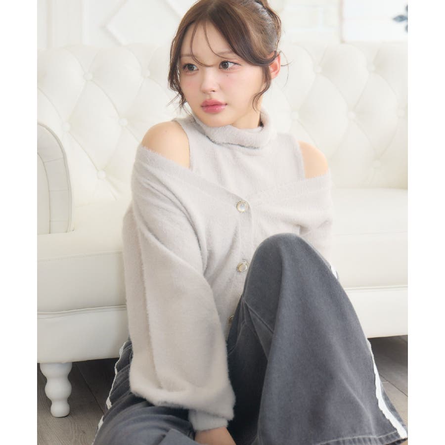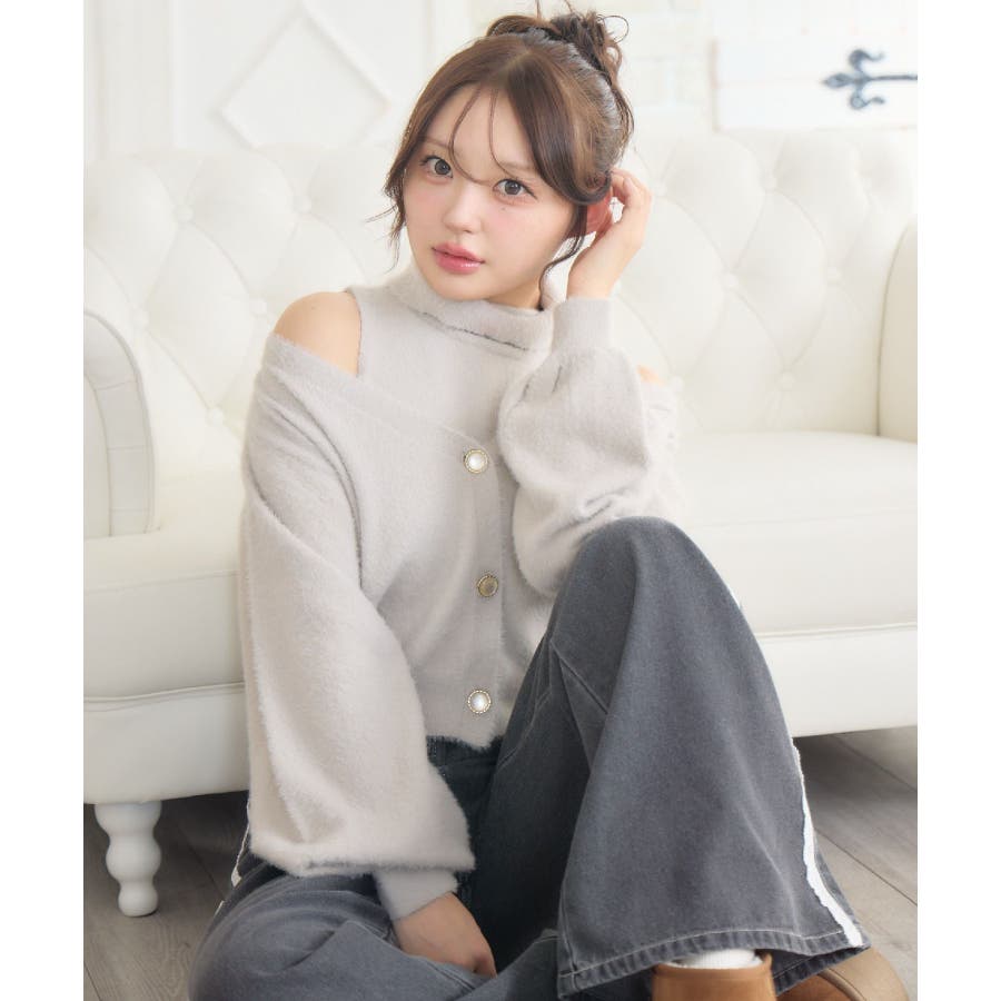 〈シャギー素材がふわふわ手触りなニットセットアイテム〉▼デザインシャギー素材の冬らしいニットカーディガンのセットアイテム!インナーは折り返しのハイネックで首周りまで暖かい!カーディガンはボタンがキラキラと光沢感のあるパールになっていて細かい部分まで可愛いデザイン♪肩をチラッと見せる抜襟で着るのも女性らしくておすすめです!▼コーディネートガーリーなデートコーデにおすすめ♪プリーツスカートやフリルスカートと合わせてみてください!▼セット内容・ハイネックニット・カーディガン------------------------------生地感:普通伸縮性:ある透け感:なし裏地:なし------------------------------▼ブランド紹介ems excite (エムズエキサイト)“more fun more cute”今をもっと楽しくもっと可愛くいたい女の子に向けたgirly cuteなブランド#セットアイテム #カーディガン #シャギーニット #カーディガン #オフショルアイテム▼注意事項※撮影環境やモニター環境によって実際の商品とお色味が 多少異なってみえる場合がございます。品番:EU556412B002 / 品名:シャギーNTSET