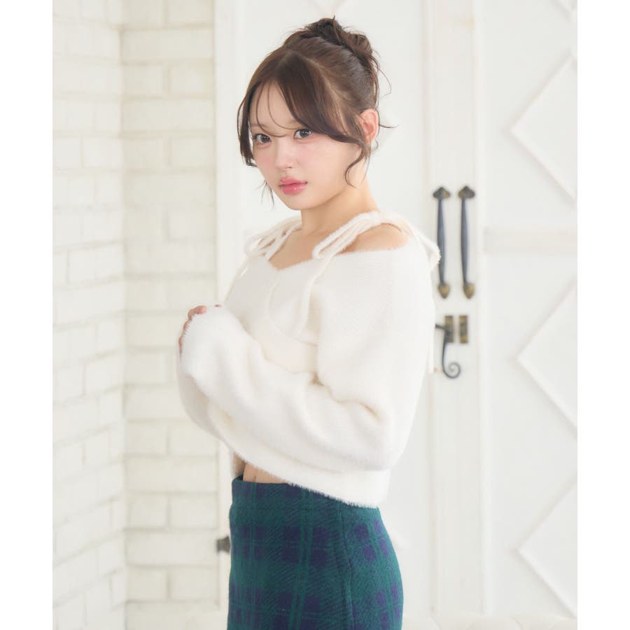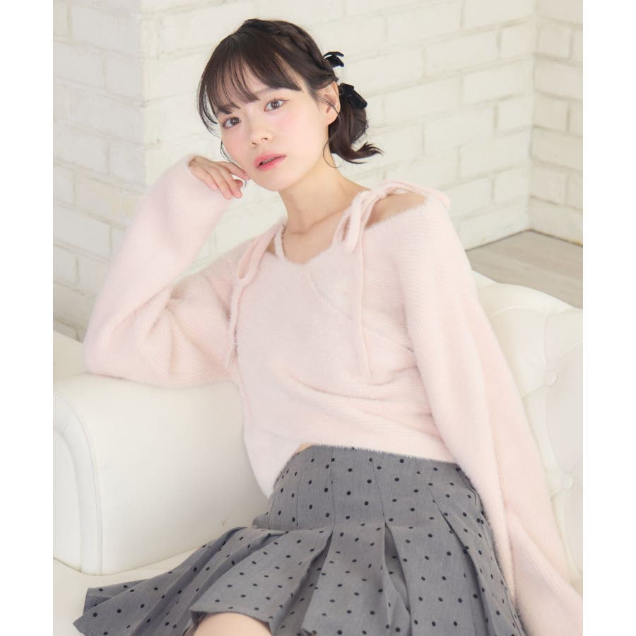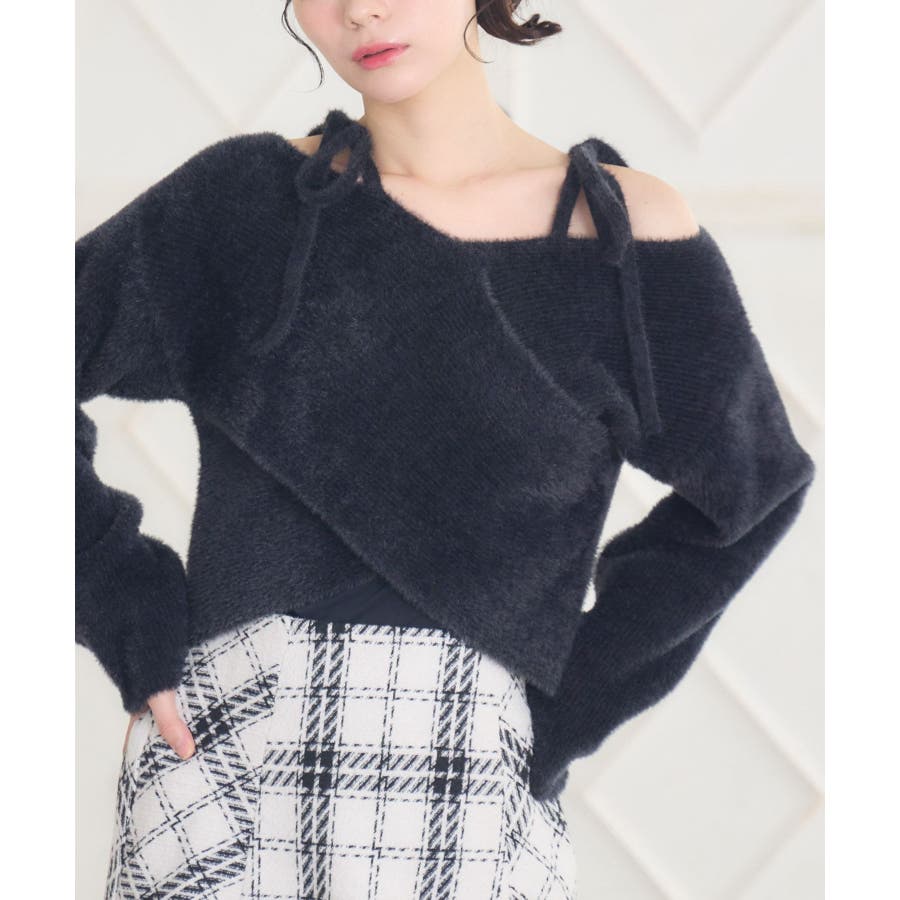 <シャギー素材のオフショルダーデザインニット>▼デザイン今年も大人気のシャギーニット!フロント部分はクロスデザインになっていて、ウエスト部分がちらっと見えるのが女性らしい!ショルダーはリボンになっていて結ぶ位置で着丈の調節が可能です。▼コーディネートデニムパンツで合わせればカジュアルなコーデに。スカートでチェックやツイードなど柄を取り入れるのも冬っぽくて可愛いです。------------------------------生地感:普通伸縮性:ある透け感:なし裏地:なし------------------------------▼ブランド紹介ems excite (エムズエキサイト)“more fun more cute”今をもっと楽しくもっと可愛くいたい女の子に向けたgirly cuteなブランド#ニット #シャギーニット #モケモケアイテム #冬コーデ #クロスデザイン #オフショルダーアイテム▼注意事項※撮影環境やモニター環境によって実際の商品とお色味が多少異なってみえる場合がございます。品番:EU556412B003 / 品名:肩リボンクロスNTPO