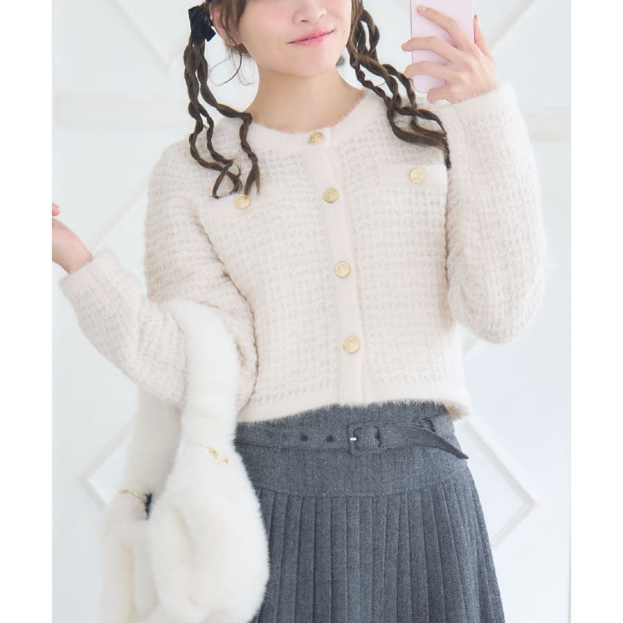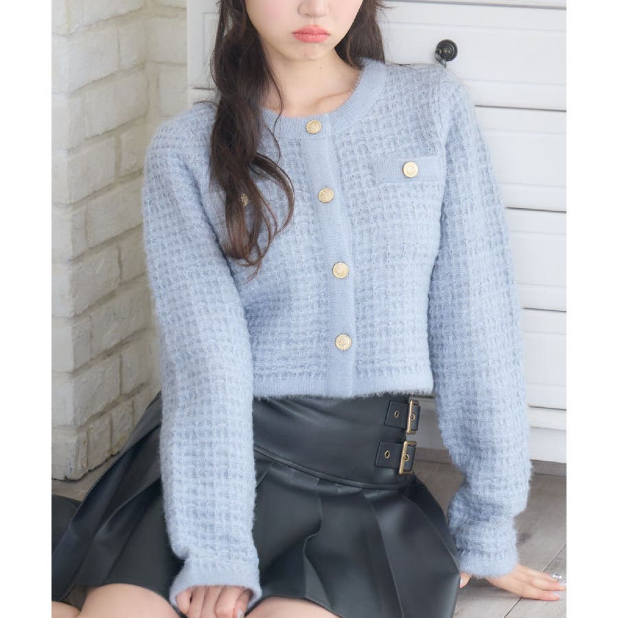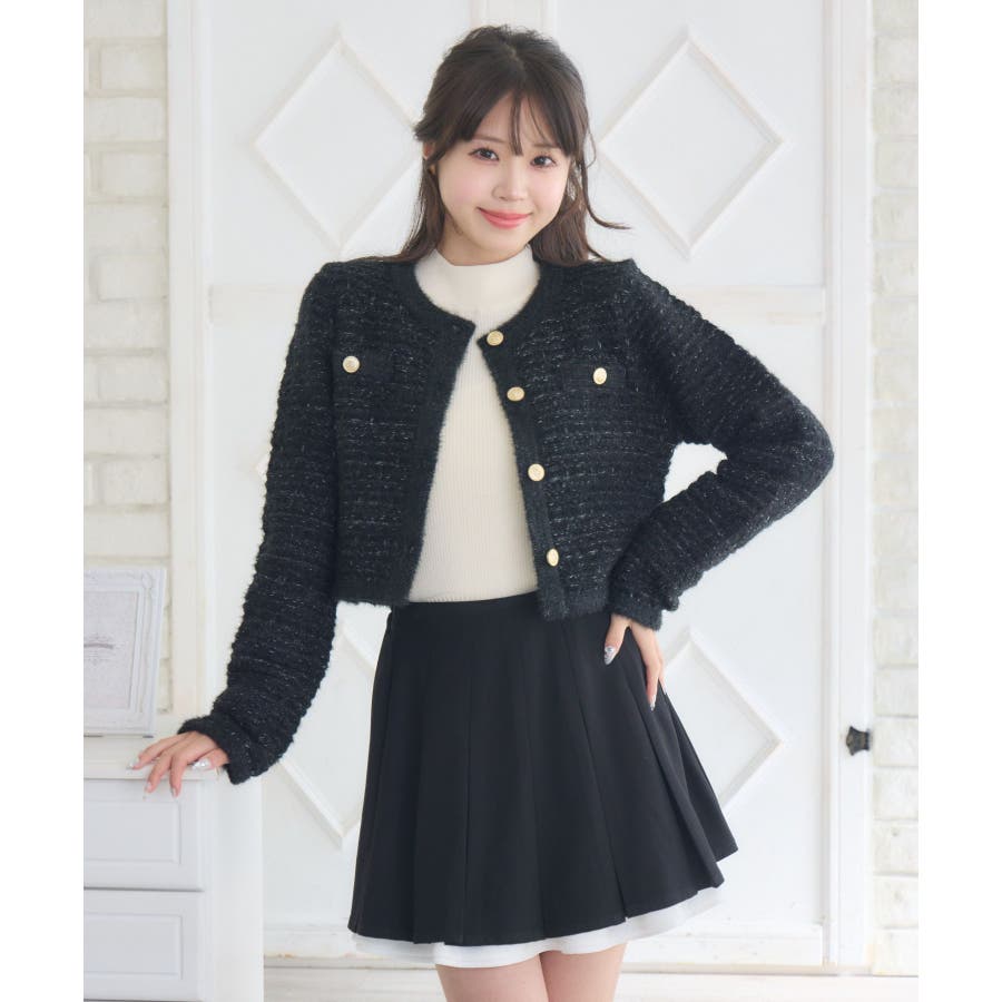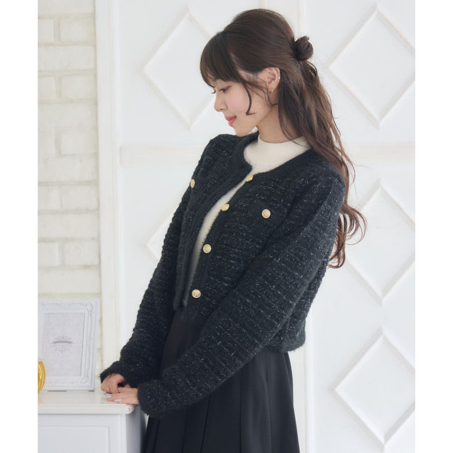 <セットアップでも着用可能な韓国ガーリーカーディガン>▼デザインems exciteの大人気アイテム、ヴィンテージカーディガン!1枚で上品で高級感あるコーデに仕上ります。金釦で高見え間違いなしのデザインが魅力的!ラメ糸がミックスされていて、羽織るだけで存在感たっぷり♪程よい着丈で、ニットとしてもカーディガンとしても活躍します。▼コーディネートシンプルなボトムスとコーディネートするだけでレディなスタイルが完成します!ワンピースに羽織っても合いやすく、おすすめです。-----------------------------生地感:普通伸縮性:ある透け感:なし裏地:なし------------------------------▼ブランド紹介ems excite (エムズエキサイト)“more fun more cute”今をもっと楽しくもっと可愛くいたい女の子に向けたgirly cuteなブランド#ツイードカーデ #ヴィンテージ #ヴィンテージカーデ #ラメ #ツイード▼注意事項※撮影環境やモニター環境によって実際の商品とお色味が多少異なってみえる場合がございます。品番:EU556412B004 / 品名:ツイード風ヴィンテージカーデ