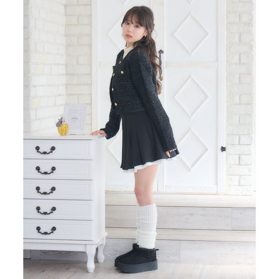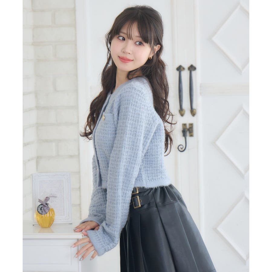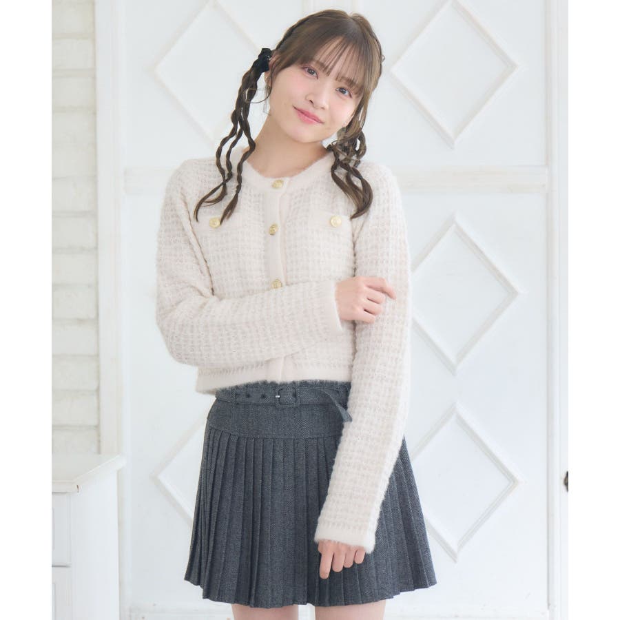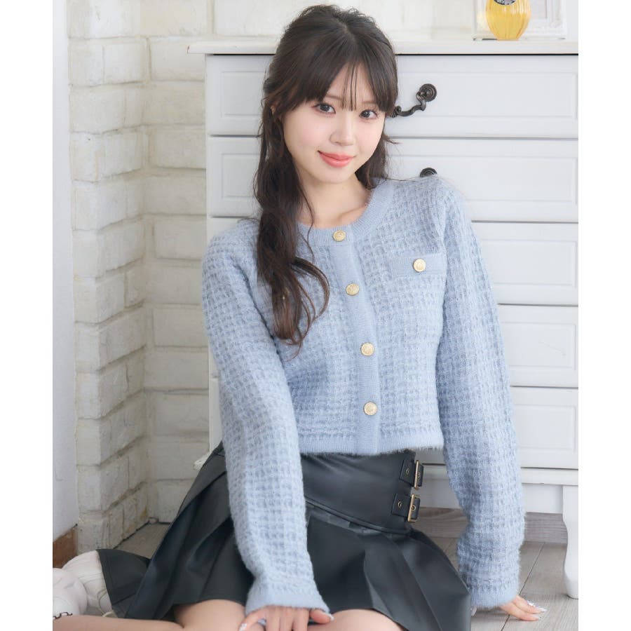 <セットアップでも着用可能な韓国ガーリーカーディガン>▼デザインems exciteの大人気アイテム、ヴィンテージカーディガン!1枚で上品で高級感あるコーデに仕上ります。金釦で高見え間違いなしのデザインが魅力的!ラメ糸がミックスされていて、羽織るだけで存在感たっぷり♪程よい着丈で、ニットとしてもカーディガンとしても活躍します。▼コーディネートシンプルなボトムスとコーディネートするだけでレディなスタイルが完成します!ワンピースに羽織っても合いやすく、おすすめです。-----------------------------生地感:普通伸縮性:ある透け感:なし裏地:なし------------------------------▼ブランド紹介ems excite (エムズエキサイト)“more fun more cute”今をもっと楽しくもっと可愛くいたい女の子に向けたgirly cuteなブランド#ツイードカーデ #ヴィンテージ #ヴィンテージカーデ #ラメ #ツイード▼注意事項※撮影環境やモニター環境によって実際の商品とお色味が多少異なってみえる場合がございます。品番:EU556412B004 / 品名:ツイード風ヴィンテージカーデ