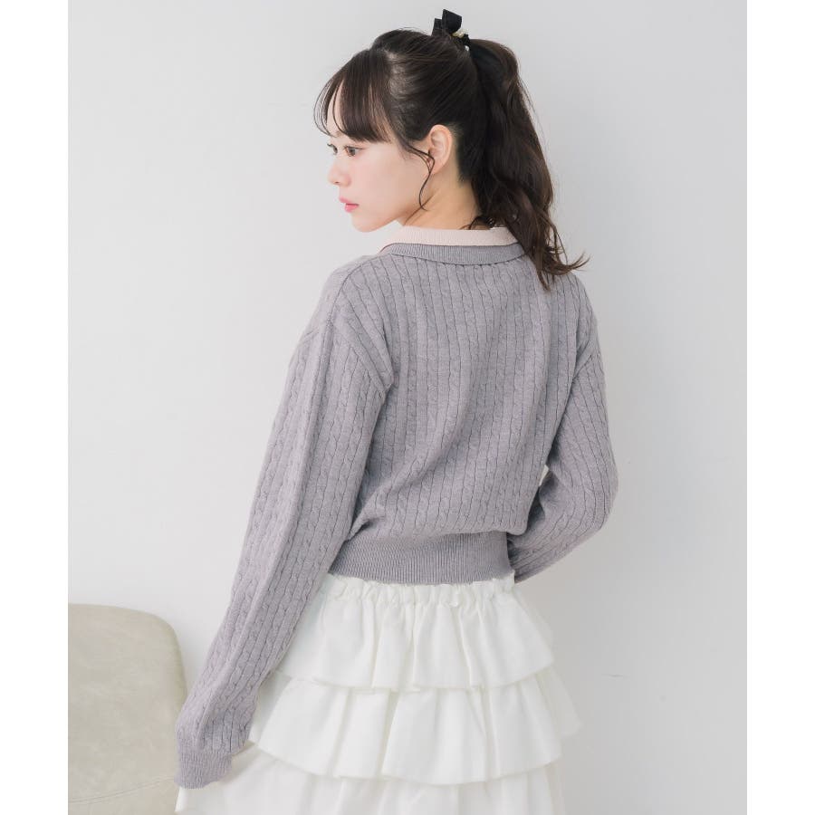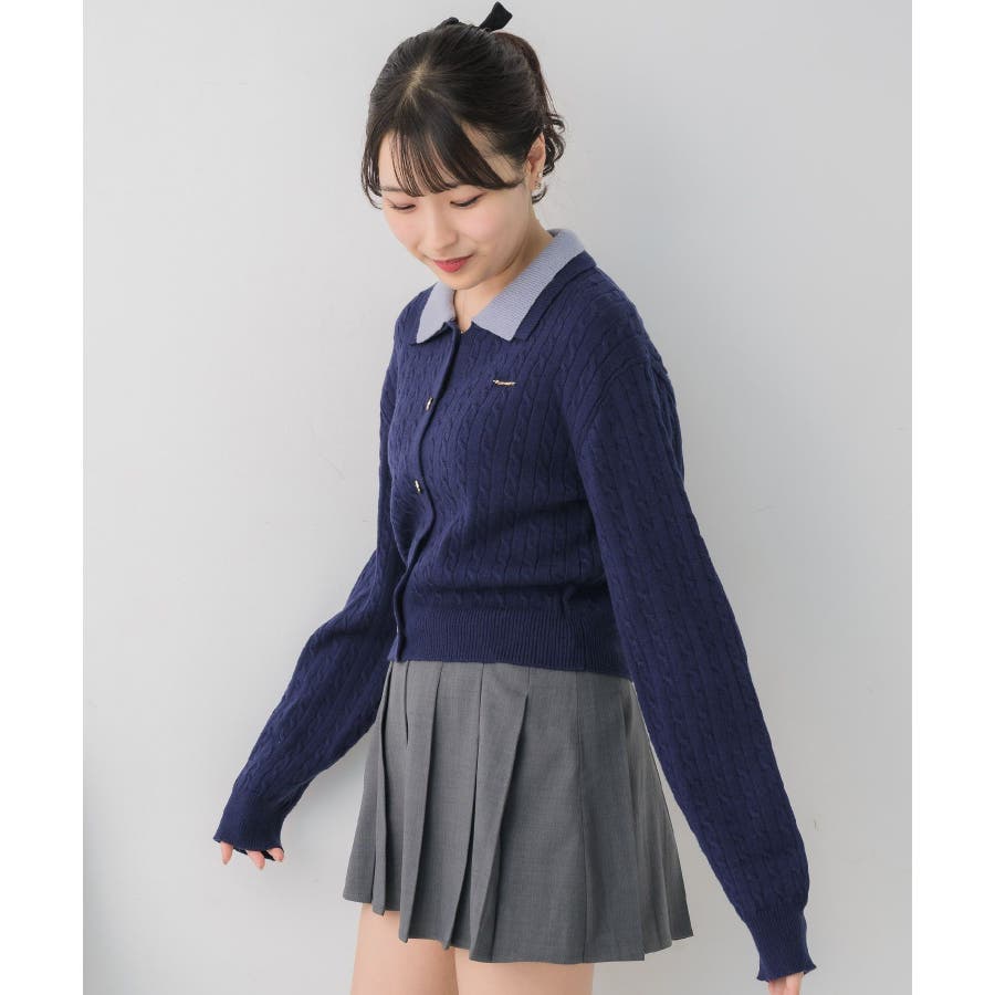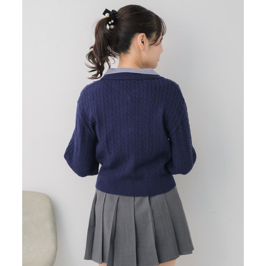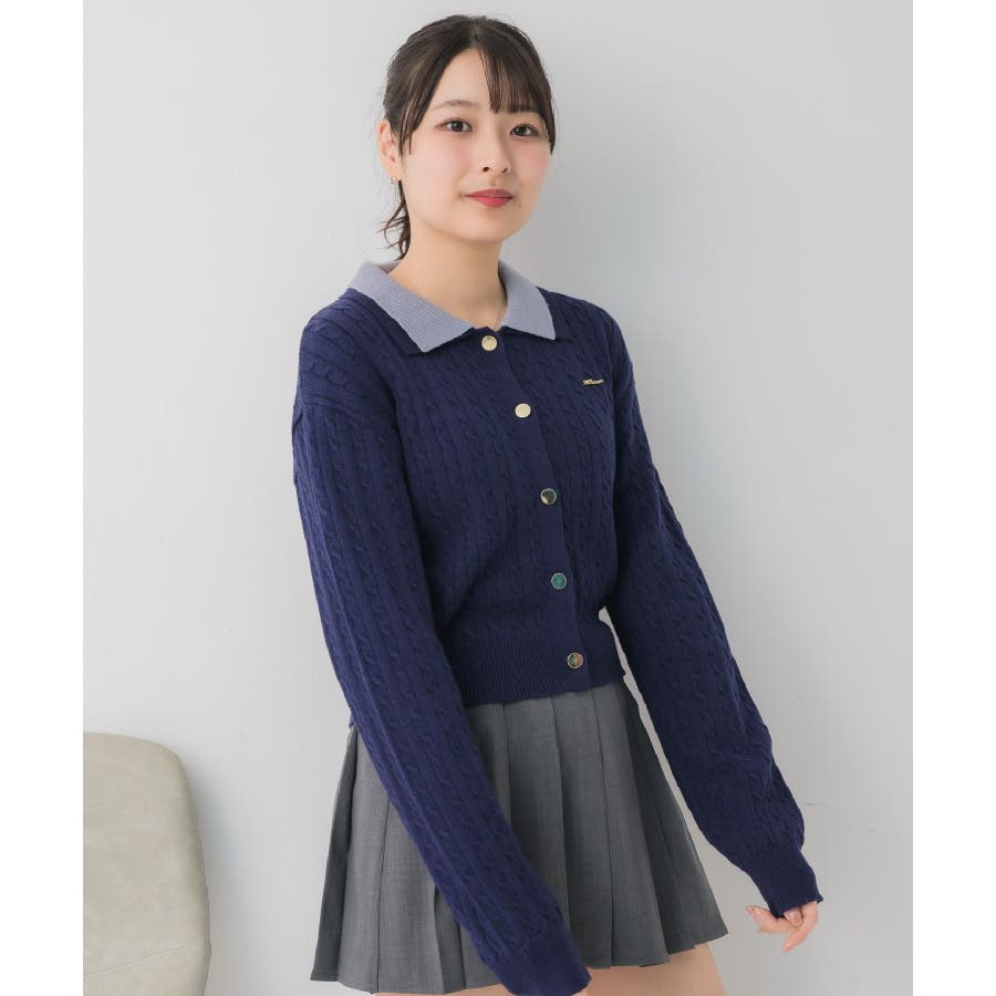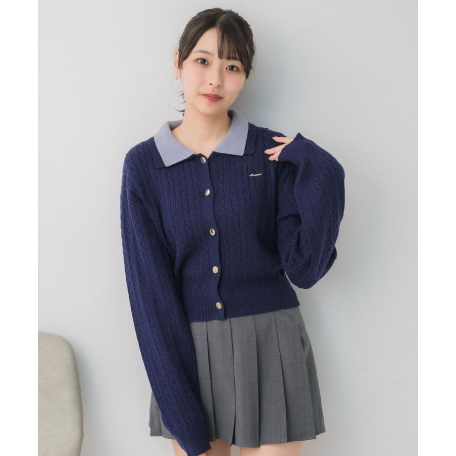 〈スクール感あるケーブル編みの二枚襟ニットカーディガン〉▼デザイン今年トレンドのW襟デザインのニット!ニットはケーブル編みになっていて、スクール感ある可愛いデザイン。フロント部分はゴールドボタンで高級感も◎胸元にはemsオリジナルプレートがついていて、プチプラなのにしっかり高見え♪▼コーディネート定番のプリーツスカート合わせやカジュアルなデニム合わせもおすすめ!ロングスカートで合わせればフェミニンな印象に仕上がります。フロント部分の釦を外すとカーディガンとして着用できるので、いろんな場面で活躍♪------------------------------生地感:普通伸縮性:ある透け感:なし裏地:なし------------------------------▼ブランド紹介ems excite (エムズエキサイト)“more fun more cute”今をもっと楽しくもっと可愛くいたい女の子に向けたgirly cuteなブランド#ニット #ニットアイテム #ケーブルニット #ダブル襟 #プレート #バイカラー #襟ニット #カーディガン▼注意事項※撮影環境やモニター環境によって実際の商品とお色味が 多少異なってみえる場合がございます。品番:EU557112B001 / 品名:2枚襟ケーブルカーデ