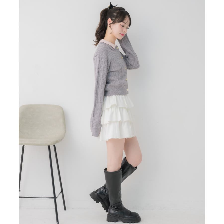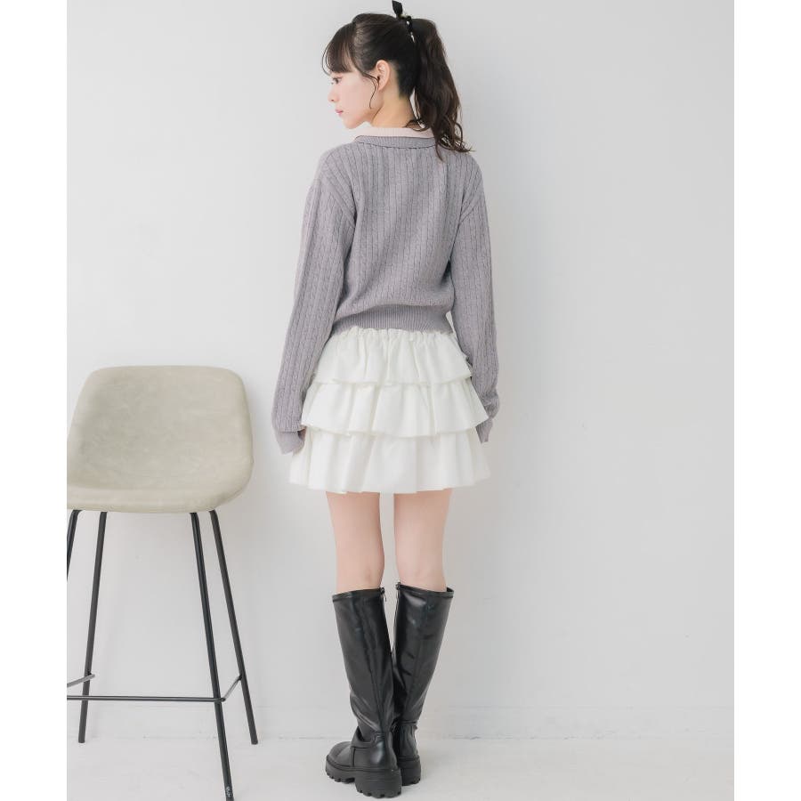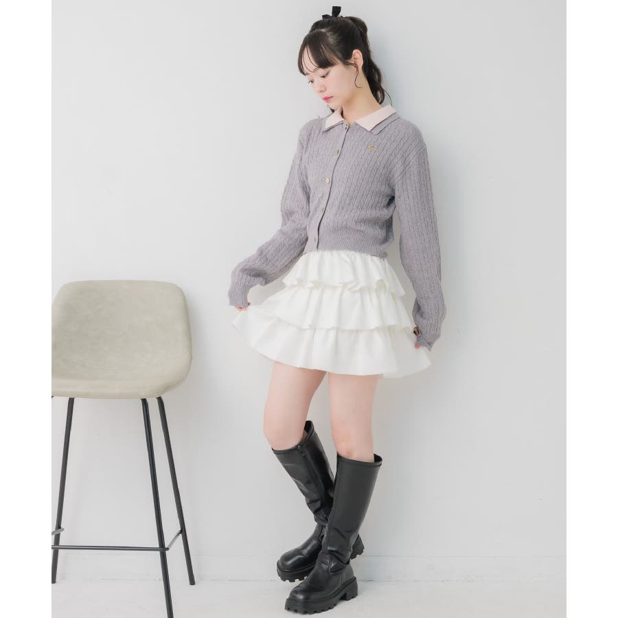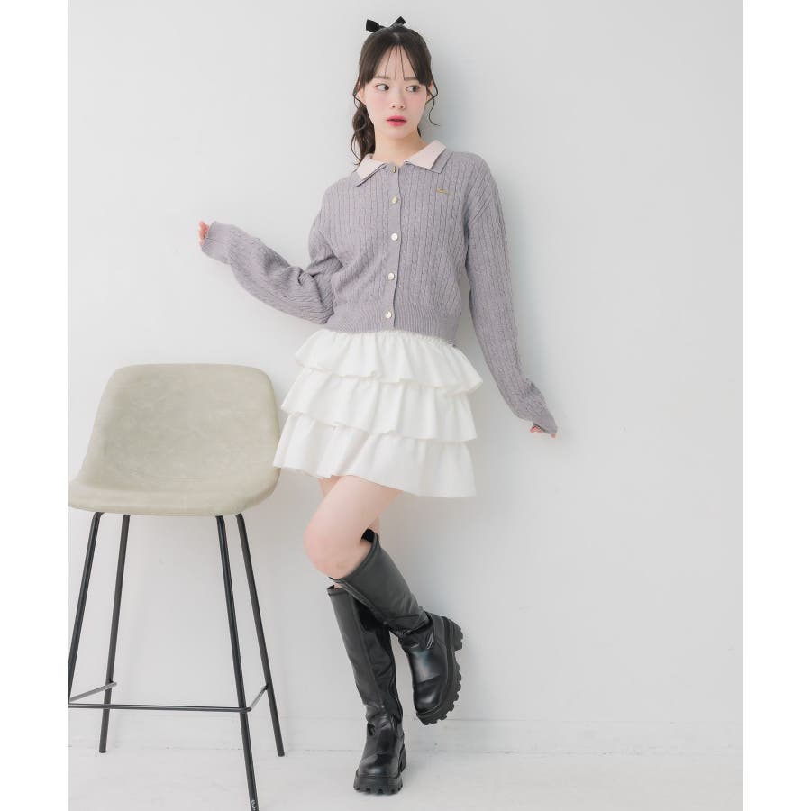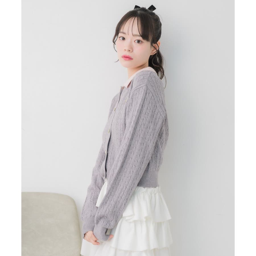 〈スクール感あるケーブル編みの二枚襟ニットカーディガン〉▼デザイン今年トレンドのW襟デザインのニット!ニットはケーブル編みになっていて、スクール感ある可愛いデザイン。フロント部分はゴールドボタンで高級感も◎胸元にはemsオリジナルプレートがついていて、プチプラなのにしっかり高見え♪▼コーディネート定番のプリーツスカート合わせやカジュアルなデニム合わせもおすすめ!ロングスカートで合わせればフェミニンな印象に仕上がります。フロント部分の釦を外すとカーディガンとして着用できるので、いろんな場面で活躍♪------------------------------生地感:普通伸縮性:ある透け感:なし裏地:なし------------------------------▼ブランド紹介ems excite (エムズエキサイト)“more fun more cute”今をもっと楽しくもっと可愛くいたい女の子に向けたgirly cuteなブランド#ニット #ニットアイテム #ケーブルニット #ダブル襟 #プレート #バイカラー #襟ニット #カーディガン▼注意事項※撮影環境やモニター環境によって実際の商品とお色味が 多少異なってみえる場合がございます。品番:EU557112B001 / 品名:2枚襟ケーブルカーデ