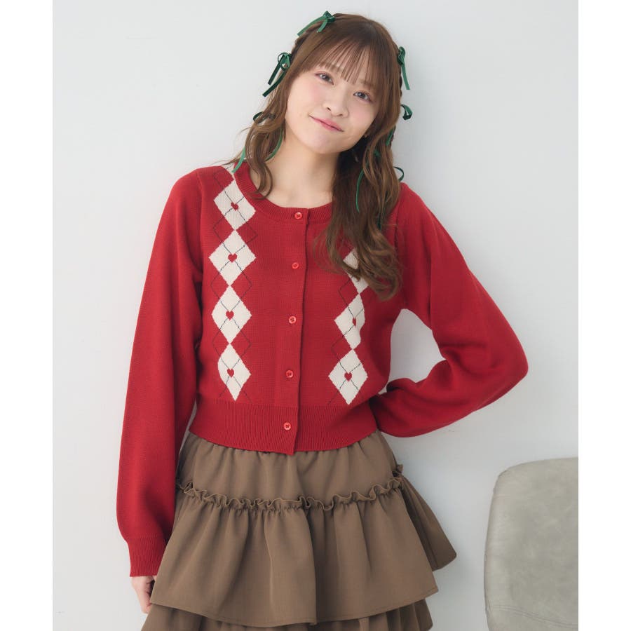 〈ハートモチーフがキュートなアーガイルニットカーディガン〉▼デザイン今年の冬大人気なアーガイル柄のカーディガンが新登場。ダイヤ型の模様の中にはハートもキュートなデザインが。emsが好きなガーリー派女子にはたまらないワンポイント!着丈もコンパクトで、ニットとしてもカーディガンとしても活躍間違いなしです♪▼コーディネートちょっと羽織るだけでも可愛らしい印象になるアイテム。デニムパンツ合わせでカジュアルにも、ミニスカート合わせてemsらしく甘めコーデも◎------------------------------生地感:普通伸縮性:ある透け感:なし裏地:なし------------------------------▼ブランド紹介ems excite (エムズエキサイト)“more fun more cute”今をもっと楽しくもっと可愛くいたい女の子に向けたgirly cuteなブランド#ニット #アーガイルニット #ハートニット #カーディガン #ニットカーデ #ハートデザイン▼注意事項※撮影環境やモニター環境によって実際の商品とお色味が 多少異なってみえる場合がございます。品番:EU557112G001 / 品名:ハートアーガイルNTカーデ