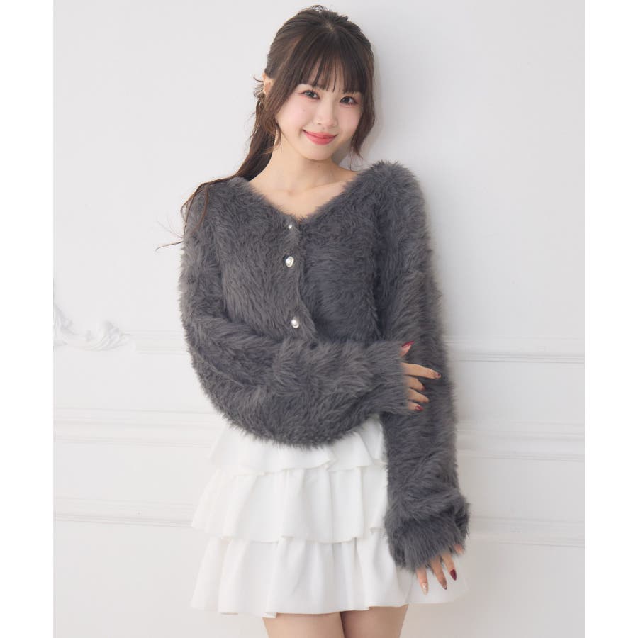 <シャギー素材で触り心地がたまらないラメカーディガン♪>▼デザイン長い毛足のシャギー素材で、触り心地が抜群のカーディガン!カラー展開もemsらしい甘めカラーで、お揃いコーデをしたり、楽しいイベントにも活用してみて下さい♪ラメがMIXされたカーディガンなので、動くたびにキラキラ輝くのも女の子らしさ抜群です。コンパクトな着丈で、今年らしいシルエットで着こなせる1枚です。▼コーディネートVネックなので、首回りもすっきり見えて、ネックレスなどと合わせても映えるデザインです。カラーによって印象もガラリと変わるので、お好みのカラーでスタイリングを組んでみて下さい!------------------------------生地感:普通伸縮性:ある透け感:なし裏地:なし------------------------------▼ブランド紹介ems excite (エムズエキサイト)“more fun more cute”今をもっと楽しくもっと可愛くいたい女の子に向けたgirly cuteなブランド#ラメMIX #ラメニット #ラメカーディガン #カーディガン #シャギーカーディガン #シャギー #ふわふわカーデ▼注意事項※撮影環境やモニター環境によって実際の商品とお色味が 多少異なってみえる場合がございます。品番:EU580012B001 / 品名:キラキラシャギーカーデ