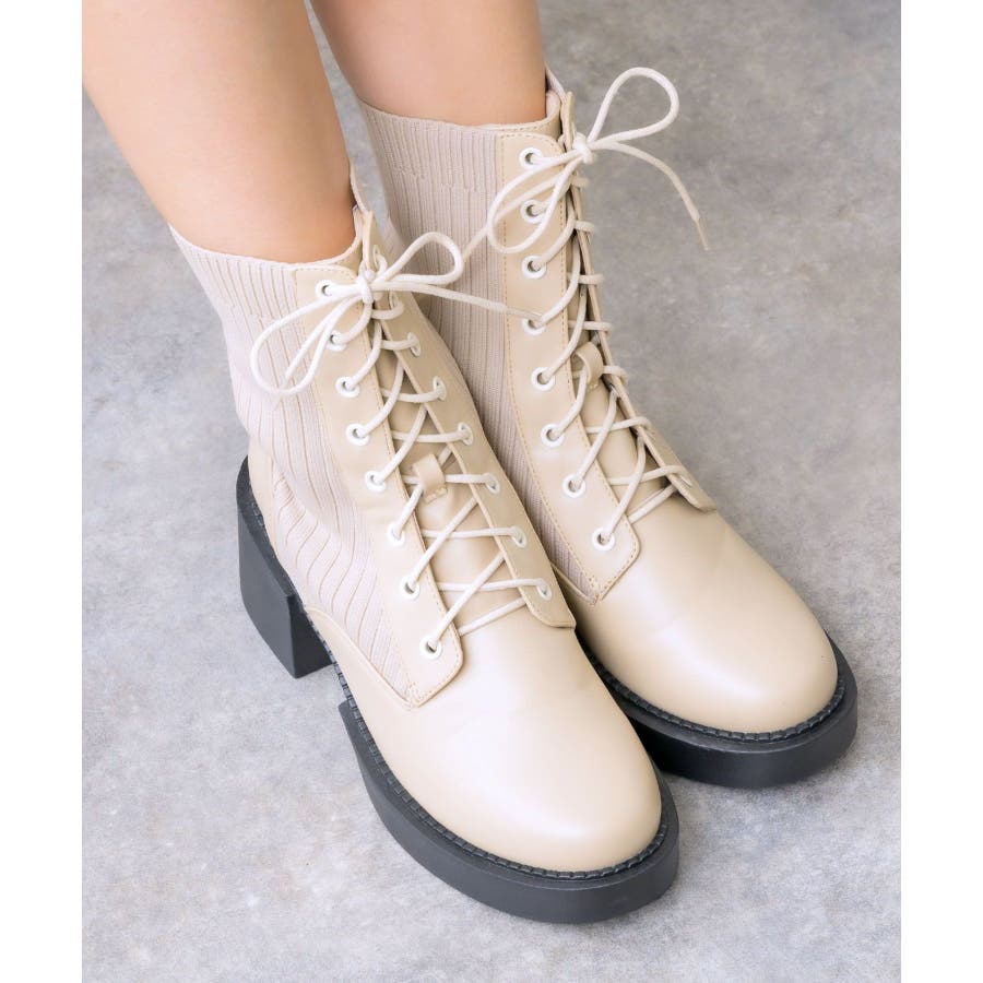レースアップニットブーツ 【Emsexcite】靴/ブーツ/秋冬
