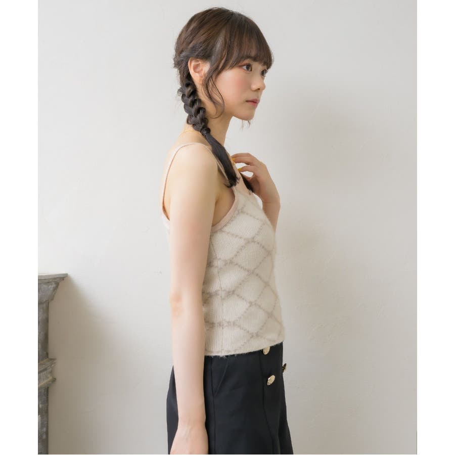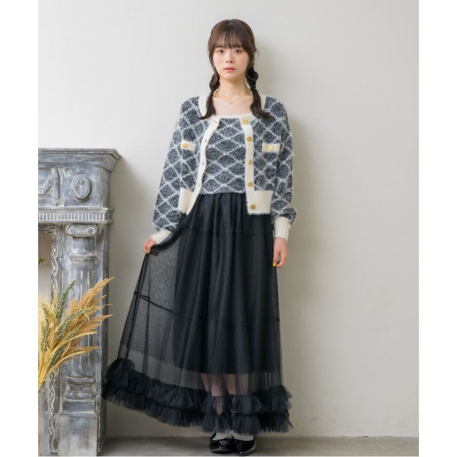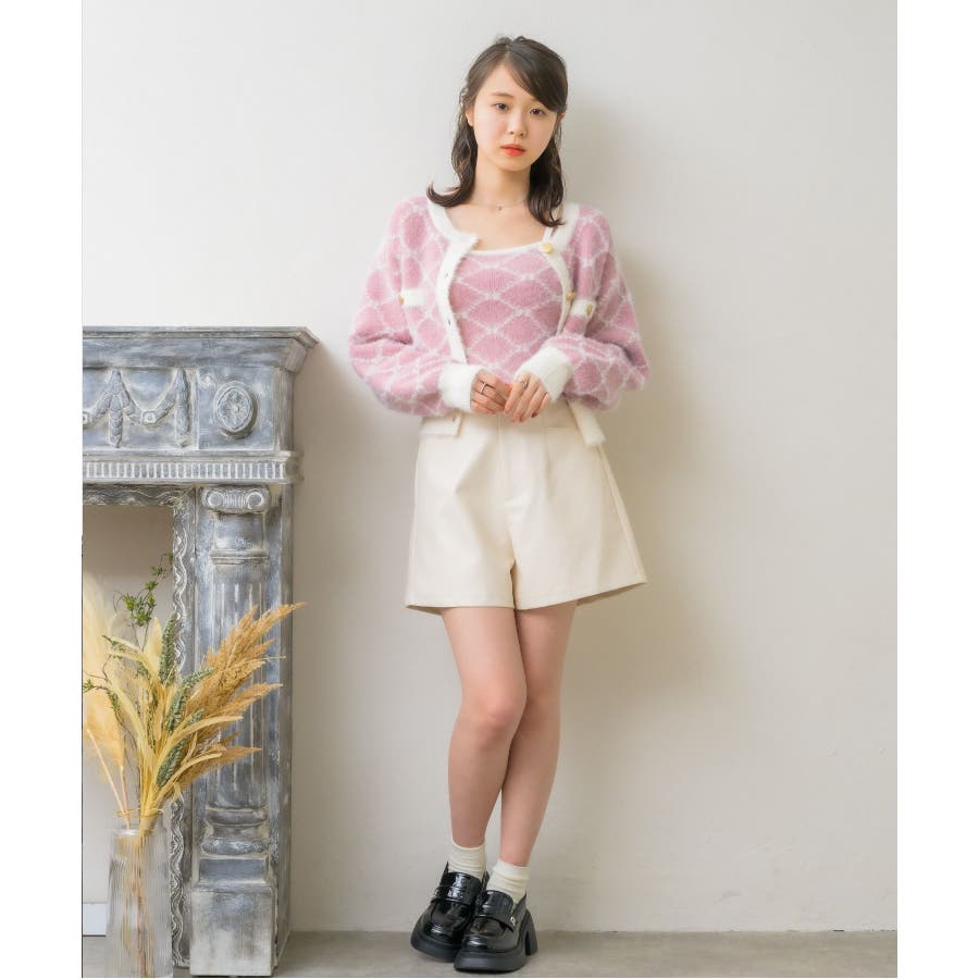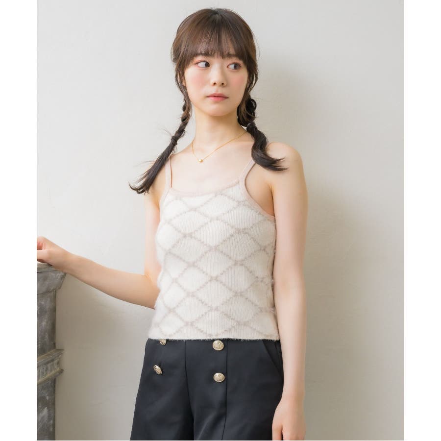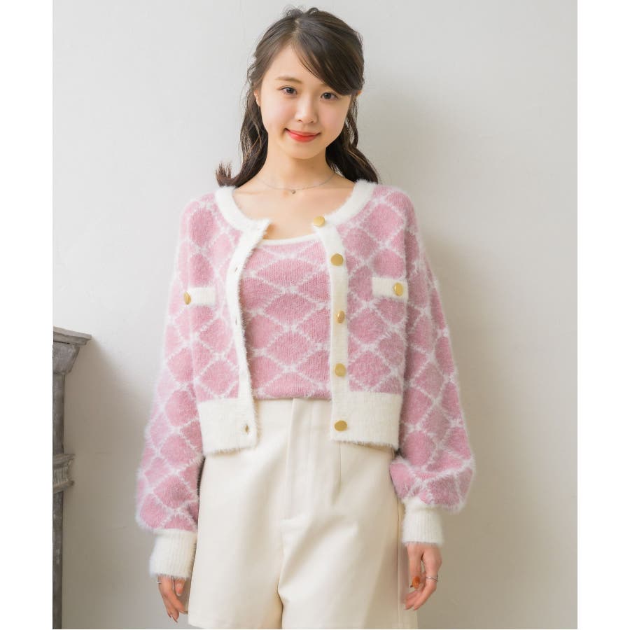 モノグラム柄シャギーNTSET Emsexcite ニットキャミソール&カーディ…
