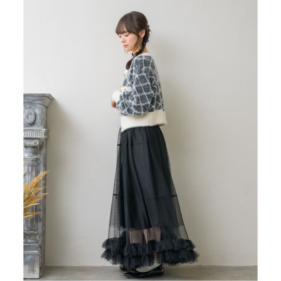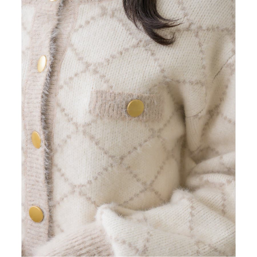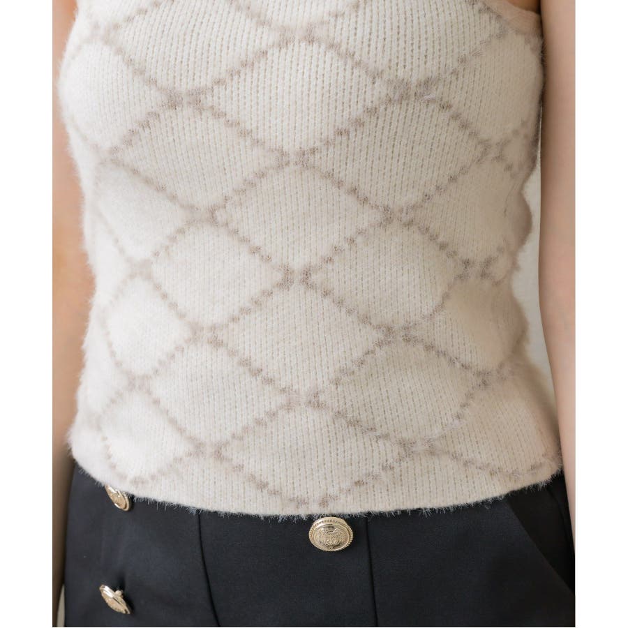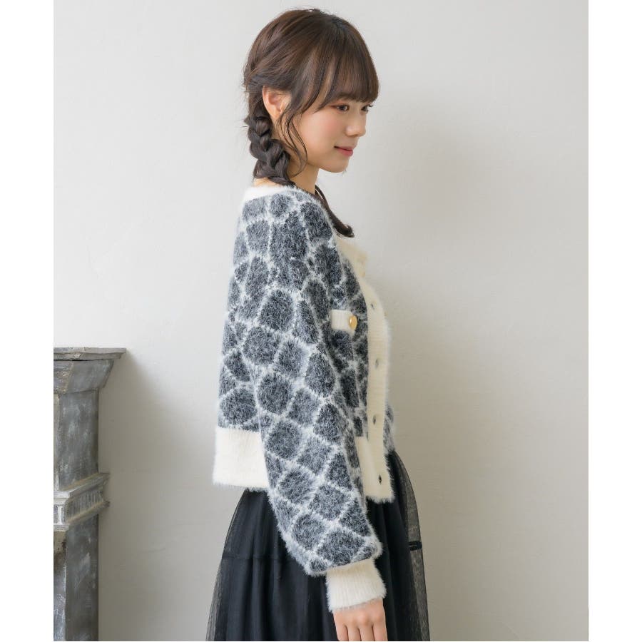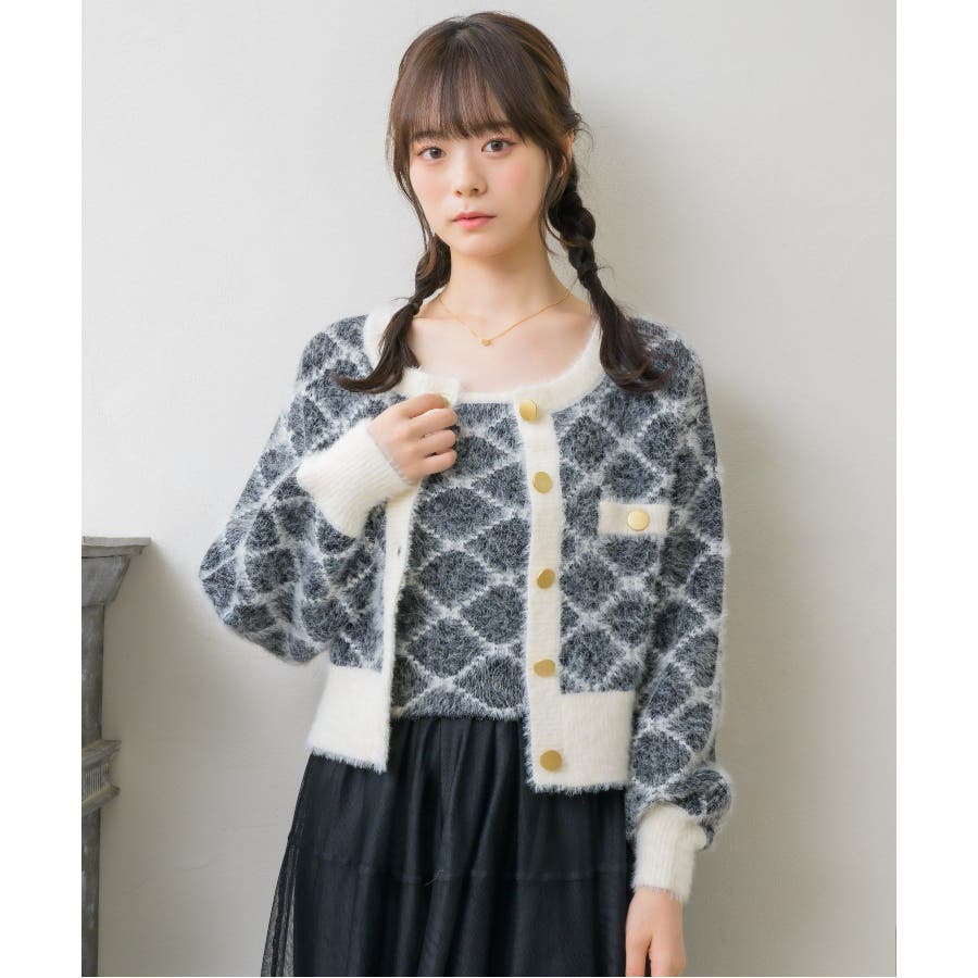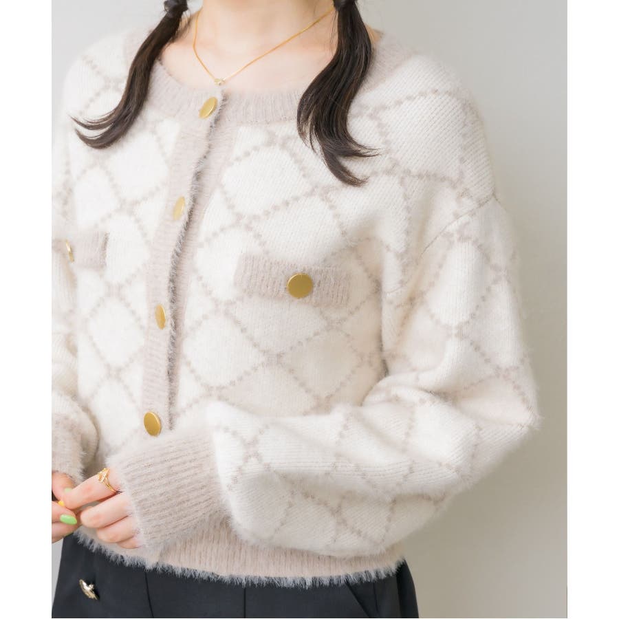 モノグラム柄シャギーNTSET Emsexcite ニットキャミソール&カーディ…
