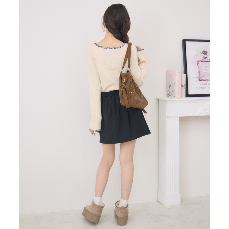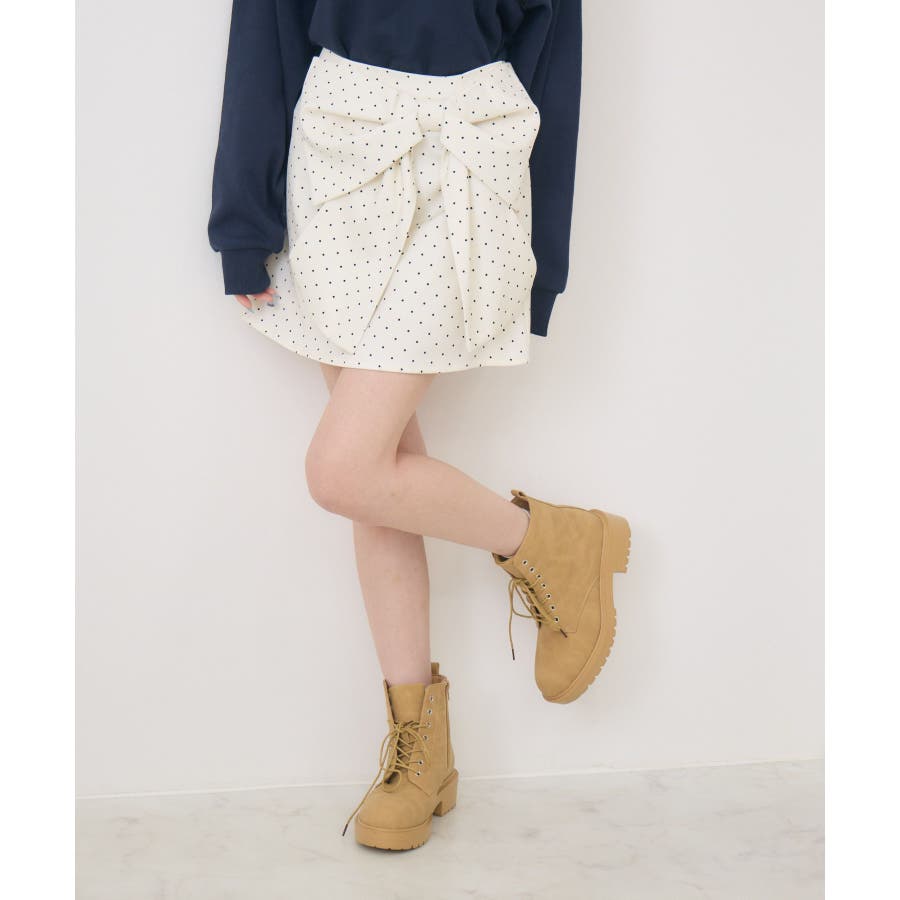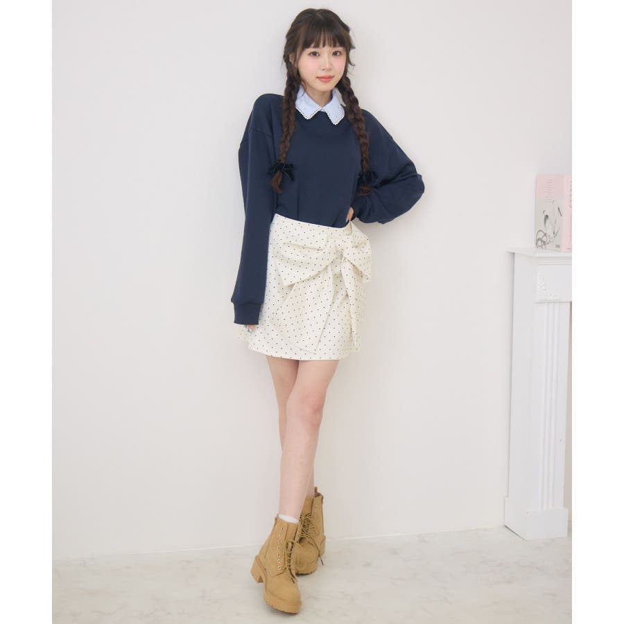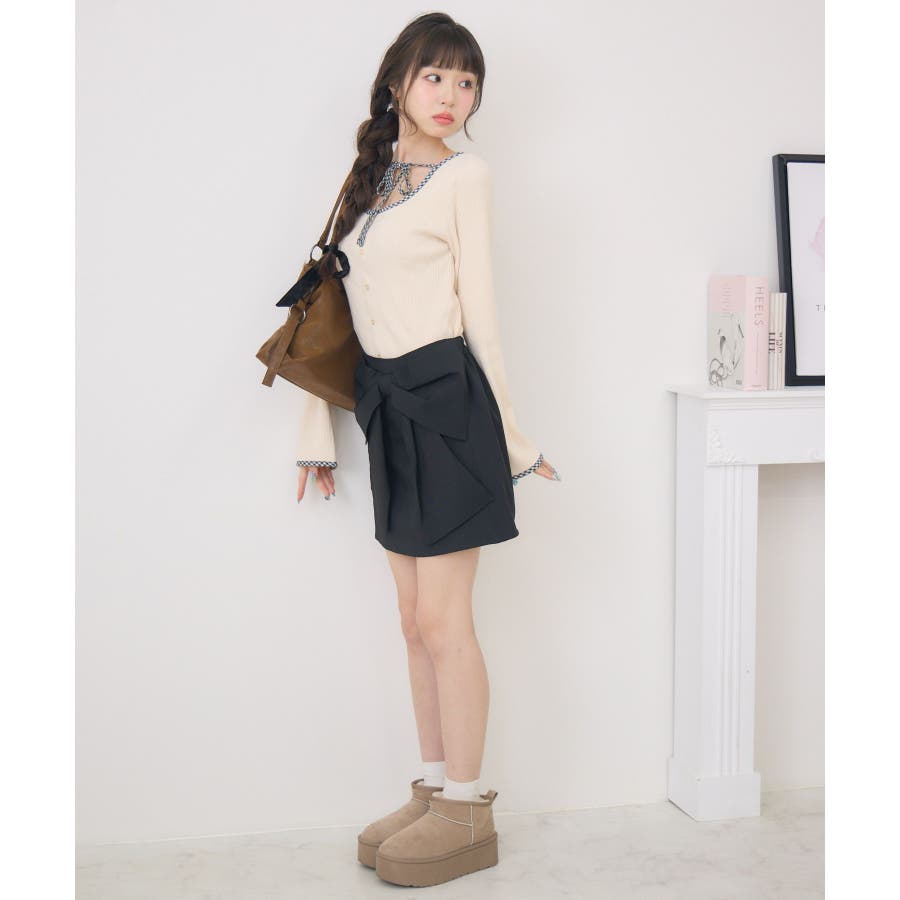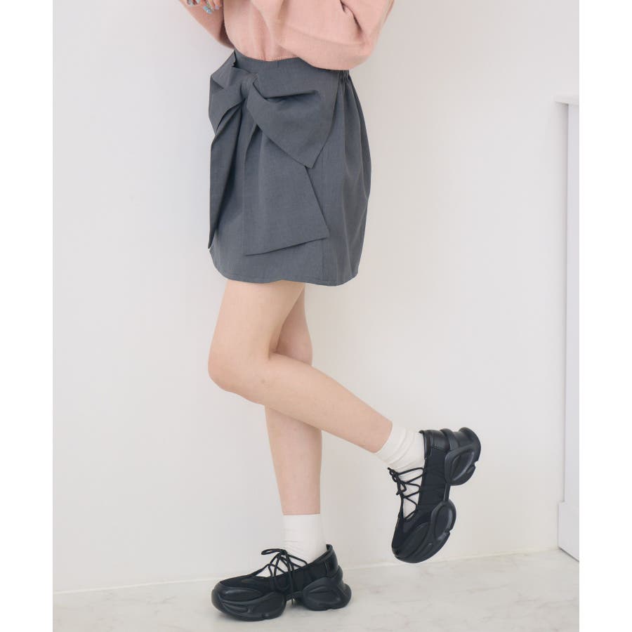 <大きなリボンが目を惹くタイトなミニスカート>▼デザインリボンデザインのガーリーなスクエアミニスカートフロント部分に同素材のリボンが立体的にデザインされていて、華やかな印象に。ブラック、グレーのスタイリッシュカラーに甘めのドット柄のアソート展開でご用意!もちろん後ろはゴムになっていて伸縮性もあります♪▼コーディネートガーリーなスタイルに取り入れたいボトムスロングブーツとも相性抜群♪------------------------------生地感:普通伸縮性:なし透け感:なし裏地:ある------------------------------▼ブランド紹介ems excite (エムズエキサイト)“more fun more cute”今をもっと楽しくもっと可愛くいたい女の子に向けたgirly cuteなブランド#ドットスカート #タイトスカート #タイトデニム #リボン #リボンスカート▼注意事項※撮影環境やモニター環境によって実際の商品とお色味が 多少異なってみえる場合がございます。品番:EW537531G005 / 品名:リボンモチーフミニSK