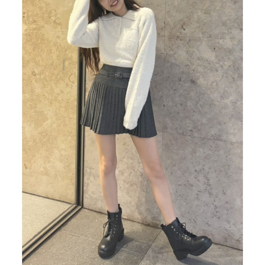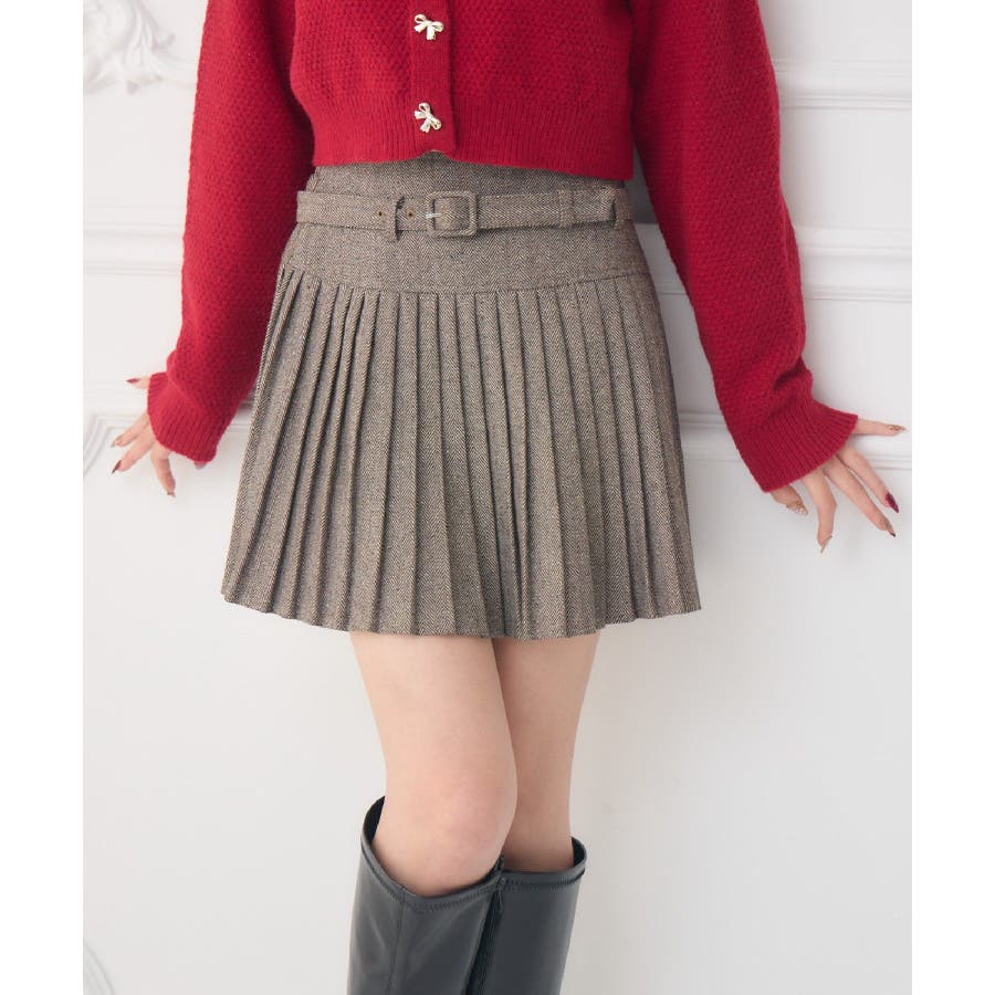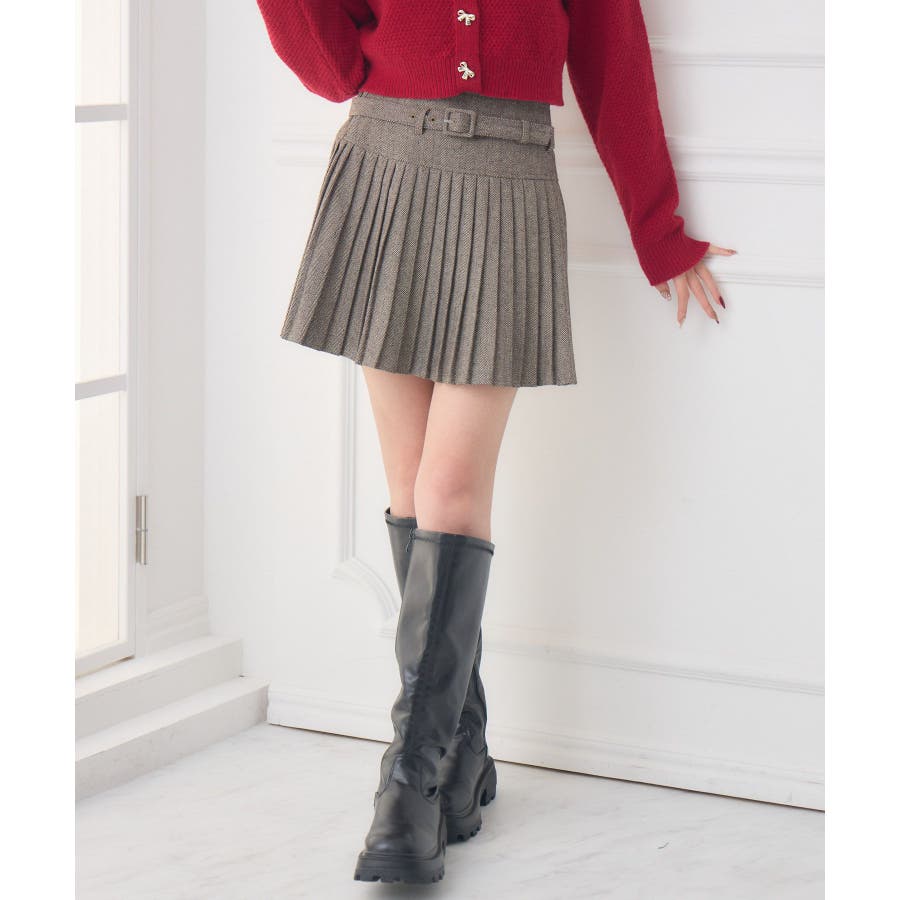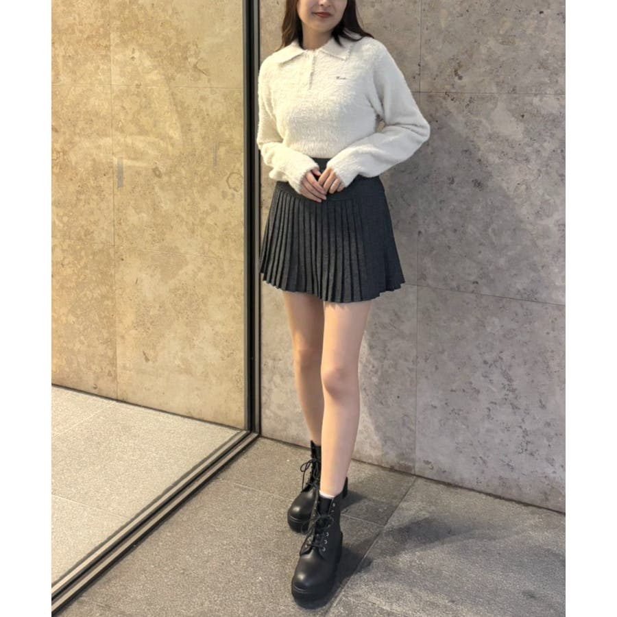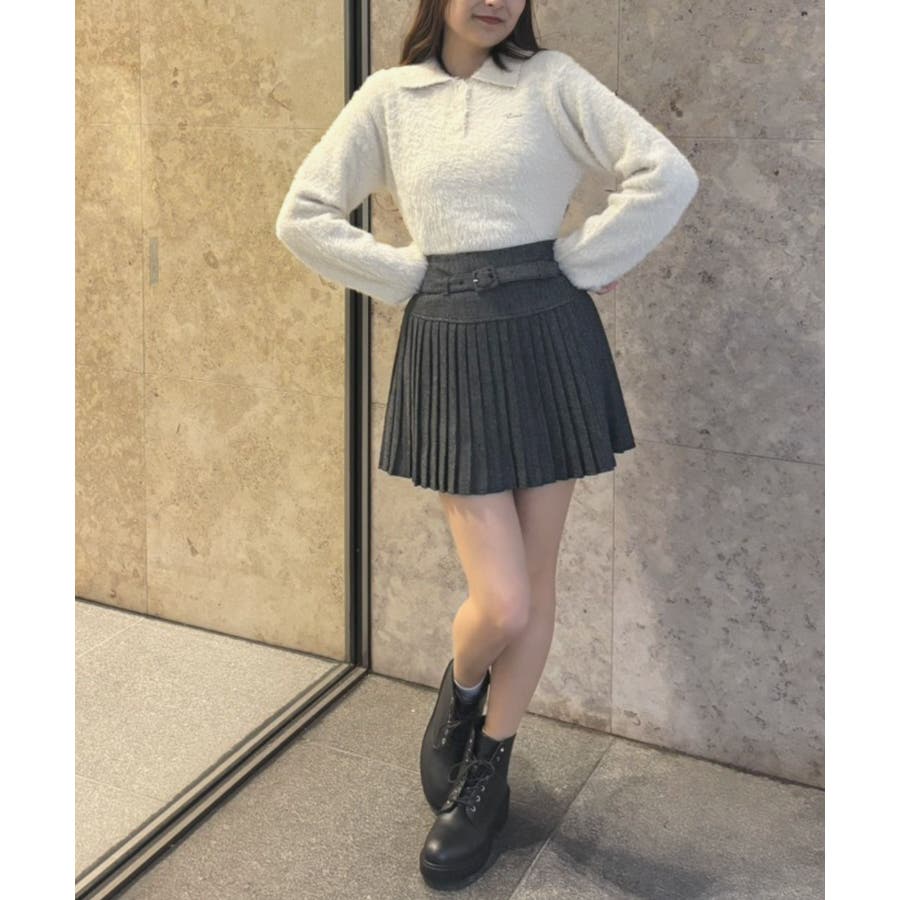 <冬素材でシーズン気分を上げるプリーツスカート>▼デザイン毎回大人気!emsのプリーツスカートの新作です。ベルトがウエストより低い位置についているトレンドデザイン。冬らしい厚手の素材でシーズンコーデにピッタリ♪プリーツはいつもより細くなっているので、華奢見え効果も◎インナーはパンツスタイルになっているので、ミニ丈ですが安心の着心地です。▼コーディネートニットやカーディガンと合わせて冬のデートコーデに取り入れてみてください♪どんなスタイリングでも定番に活躍するので、デイリー使いにおすすめ!▼セット内容・ミニスカート・ベルト------------------------------生地感:やや厚手伸縮性:なし透け感:なし裏地:ある------------------------------▼ブランド紹介ems excite (エムズエキサイト)“more fun more cute”今をもっと楽しくもっと可愛くいたい女の子に向けたgirly cuteなブランド#ベルト付き #ミニスカート #プリーツスカート #デザインスカート #セットアイテム #ベルトセット▼注意事項※撮影環境やモニター環境によって実際の商品とお色味が多少異なってみえる場合がございます。品番:EW537531G009 / 品名:細プリーツミニSK