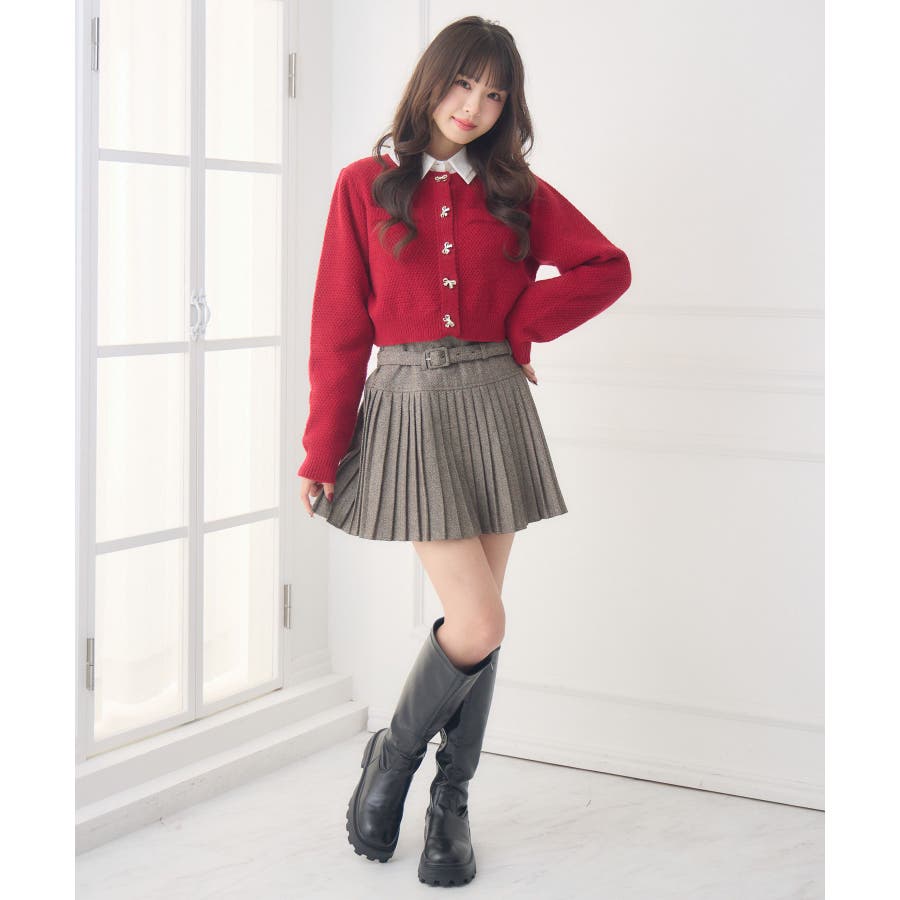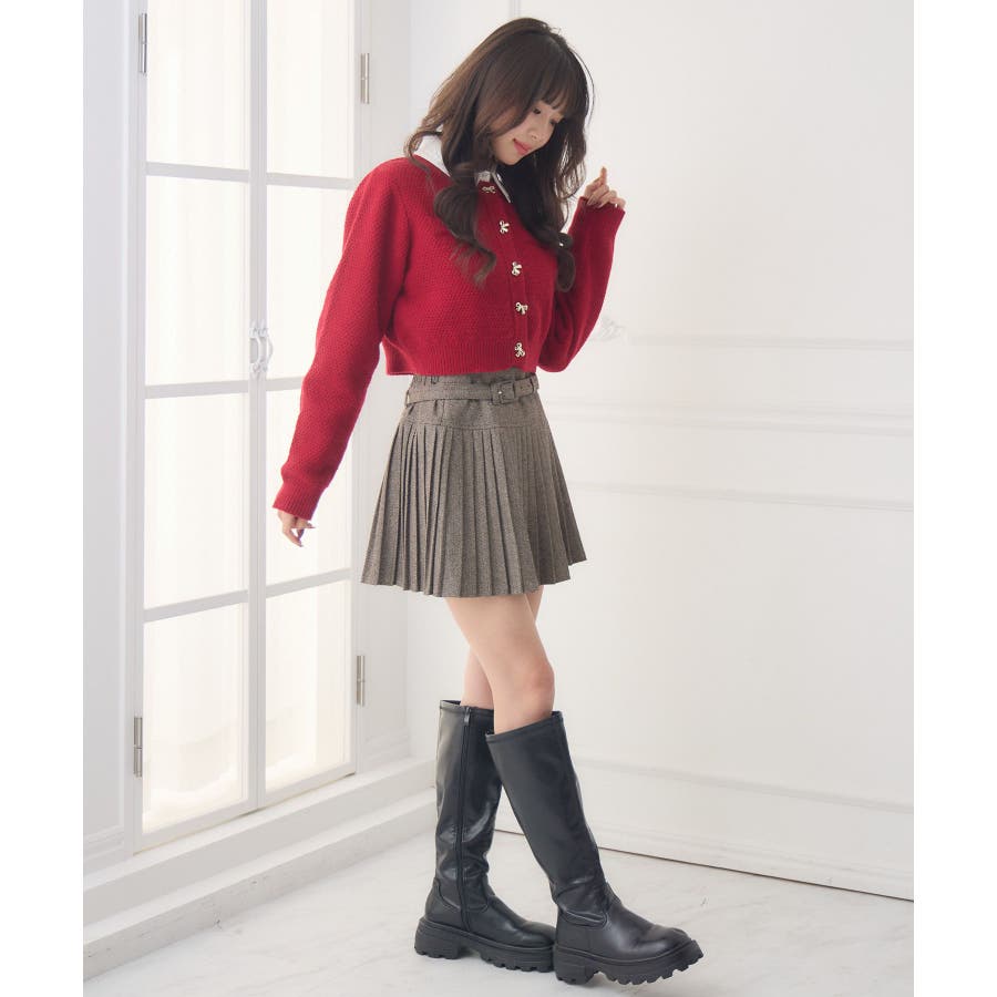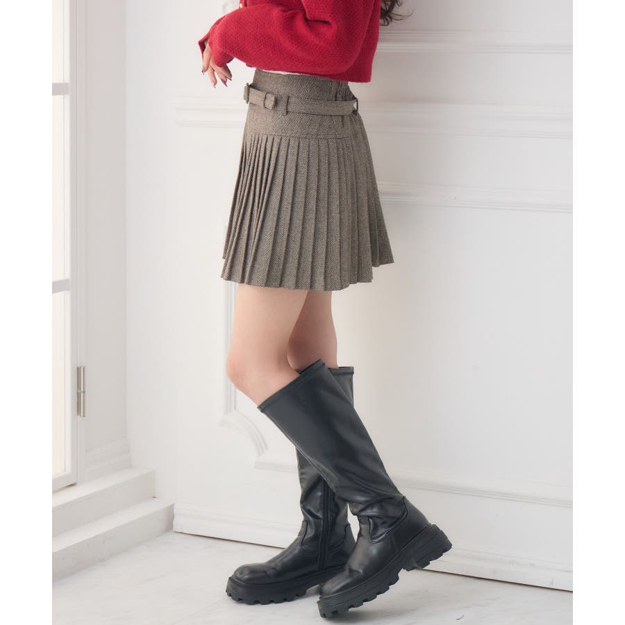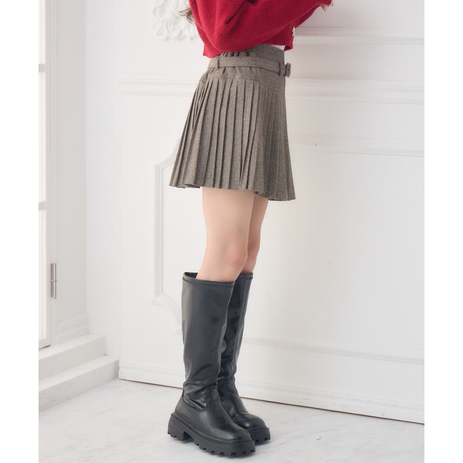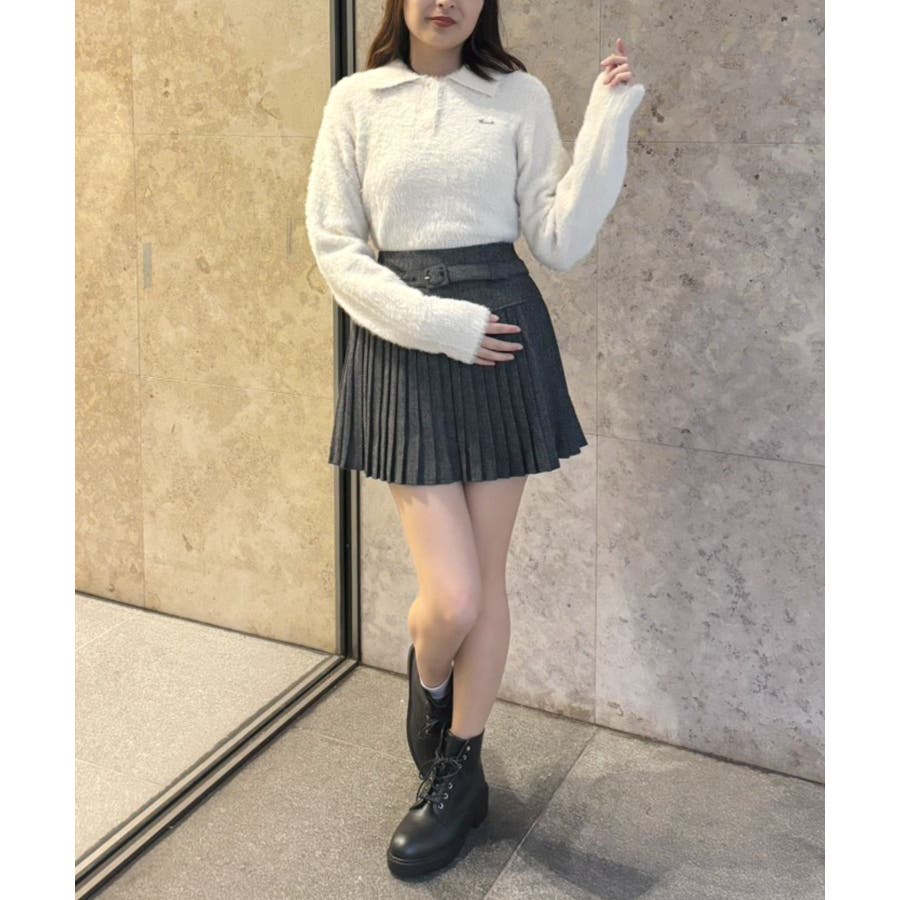 <冬素材でシーズン気分を上げるプリーツスカート>▼デザイン毎回大人気!emsのプリーツスカートの新作です。ベルトがウエストより低い位置についているトレンドデザイン。冬らしい厚手の素材でシーズンコーデにピッタリ♪プリーツはいつもより細くなっているので、華奢見え効果も◎インナーはパンツスタイルになっているので、ミニ丈ですが安心の着心地です。▼コーディネートニットやカーディガンと合わせて冬のデートコーデに取り入れてみてください♪どんなスタイリングでも定番に活躍するので、デイリー使いにおすすめ!▼セット内容・ミニスカート・ベルト------------------------------生地感:やや厚手伸縮性:なし透け感:なし裏地:ある------------------------------▼ブランド紹介ems excite (エムズエキサイト)“more fun more cute”今をもっと楽しくもっと可愛くいたい女の子に向けたgirly cuteなブランド#ベルト付き #ミニスカート #プリーツスカート #デザインスカート #セットアイテム #ベルトセット▼注意事項※撮影環境やモニター環境によって実際の商品とお色味が多少異なってみえる場合がございます。品番:EW537531G009 / 品名:細プリーツミニSK