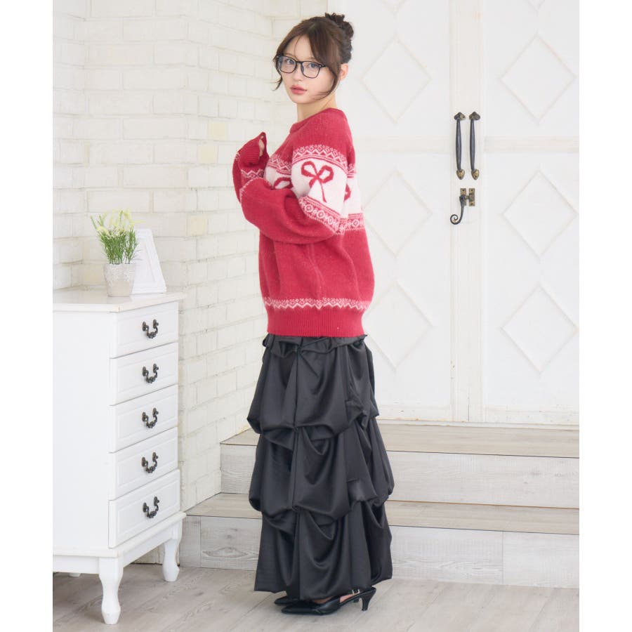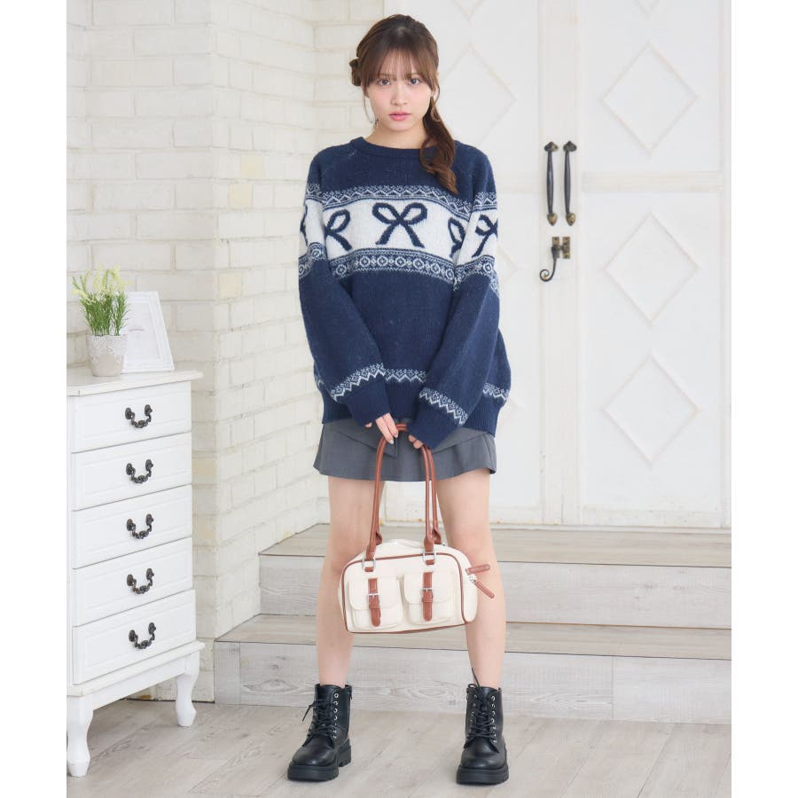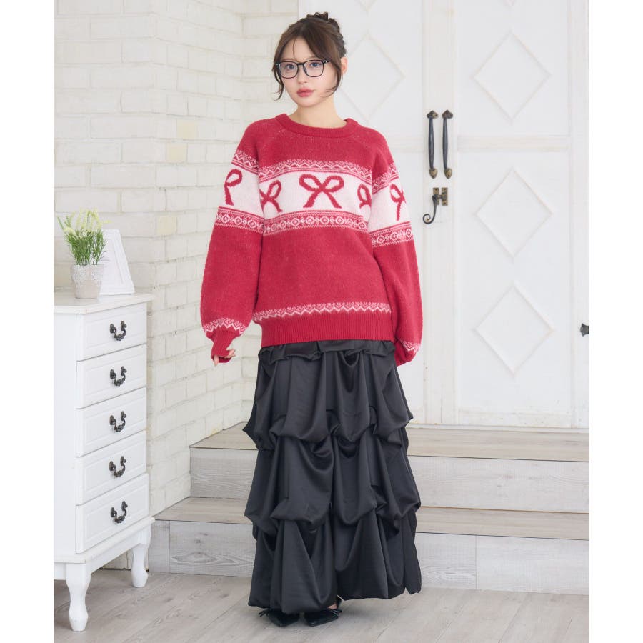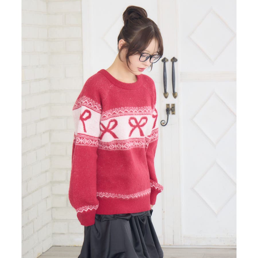 〈冬を感じるノルディックニットにリボンデザインでガーリーに〉▼デザインリボンが可愛いノルディック柄ニットが今年も登場!一気に冬の女の子スタイリングに仕上げてくれる冬ニットです。カラー展開は全て配色が可愛くて迷っちゃいますよね!レッドカラーはクリスマス時期にもおすすめです。▼コーディネートデニムやスカートとどちらでも着合わせして頂けるアイテム!トップスをメインにボトムはシンプルに仕上げるのがおすすめ!------------------------------生地感:やや厚手伸縮性:ある透け感:なし裏地:なし------------------------------▼ブランド紹介ems excite (エムズエキサイト)“more fun more cute”今をもっと楽しくもっと可愛くいたい女の子に向けたgirly cuteなブランド#リボン #リボンアイテム #ニット #ノルディックニット #ノルディック柄▼注意事項※撮影環境やモニター環境によって実際の商品とお色味が 多少異なってみえる場合がございます。品番:EW541512G004 / 品名:リボンノルディックNTPO