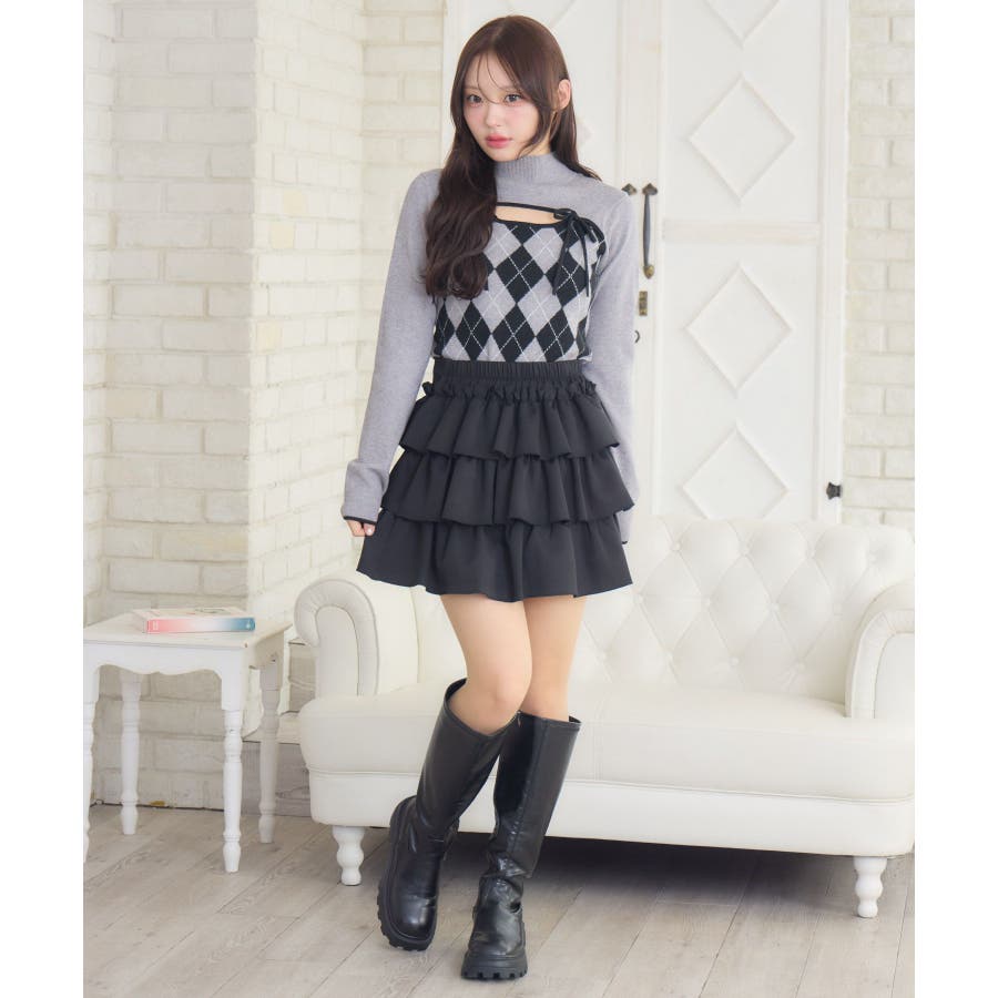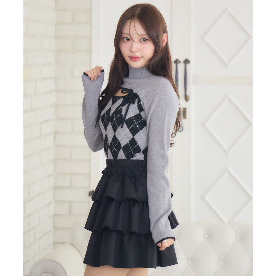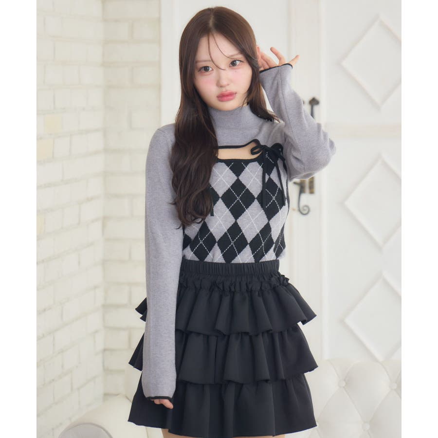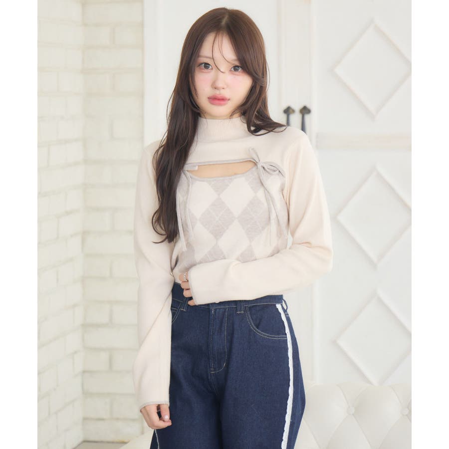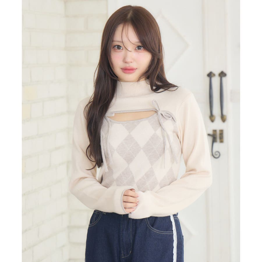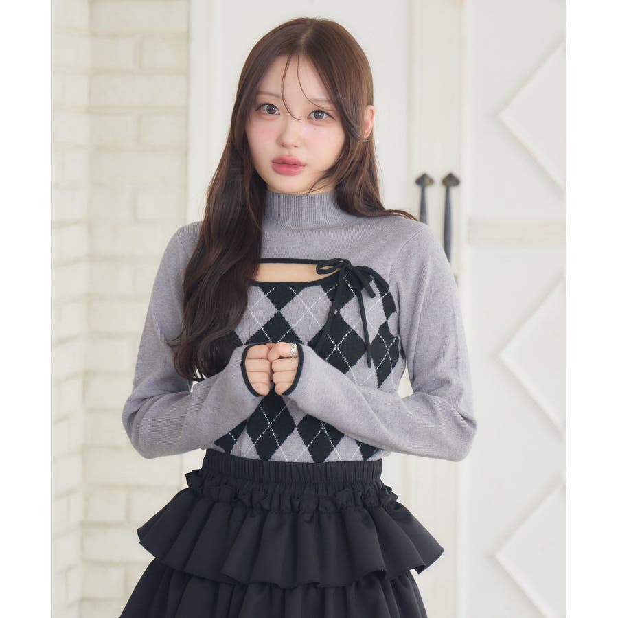 〈スクール感がフレッシュなレイヤードニットアイテム〉▼アイテム胸のスリットデザインがフェミニンなニット。アーガイル柄なのでこれ1枚で冬っぽい雰囲気になります。タイトでボディラインにピタッとくっつくので細見え効果も!裾にはemsのオリジナルプレートがデザインされているので、アウトスタイルもおすすめです♪▼コーディネートプリーツスカートやタイトスカートと合わせてガーリーなコーデがおすすめ!ロングスカートと合わせて上品なスタイリングも大人可愛いです。------------------------------生地感:普通伸縮性:ある透け感:なし裏地:なし------------------------------▼ブランド紹介ems excite (エムズエキサイト)“more fun more cute”今をもっと楽しくもっと可愛くいたい女の子に向けたgirly cuteなブランド#ニット #ニットアイテム #柄アイテム #アーガイル #胸空き #フェミニンアイテム▼注意事項※撮影環境やモニター環境によって実際の商品とお色味が 多少異なってみえる場合がございます。品番:EW541512G006 / 品名:デコルテカットアーガイルNT