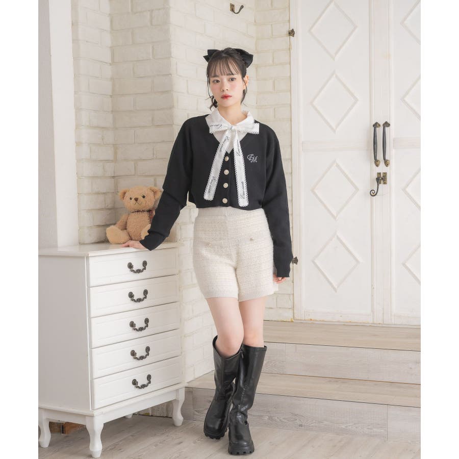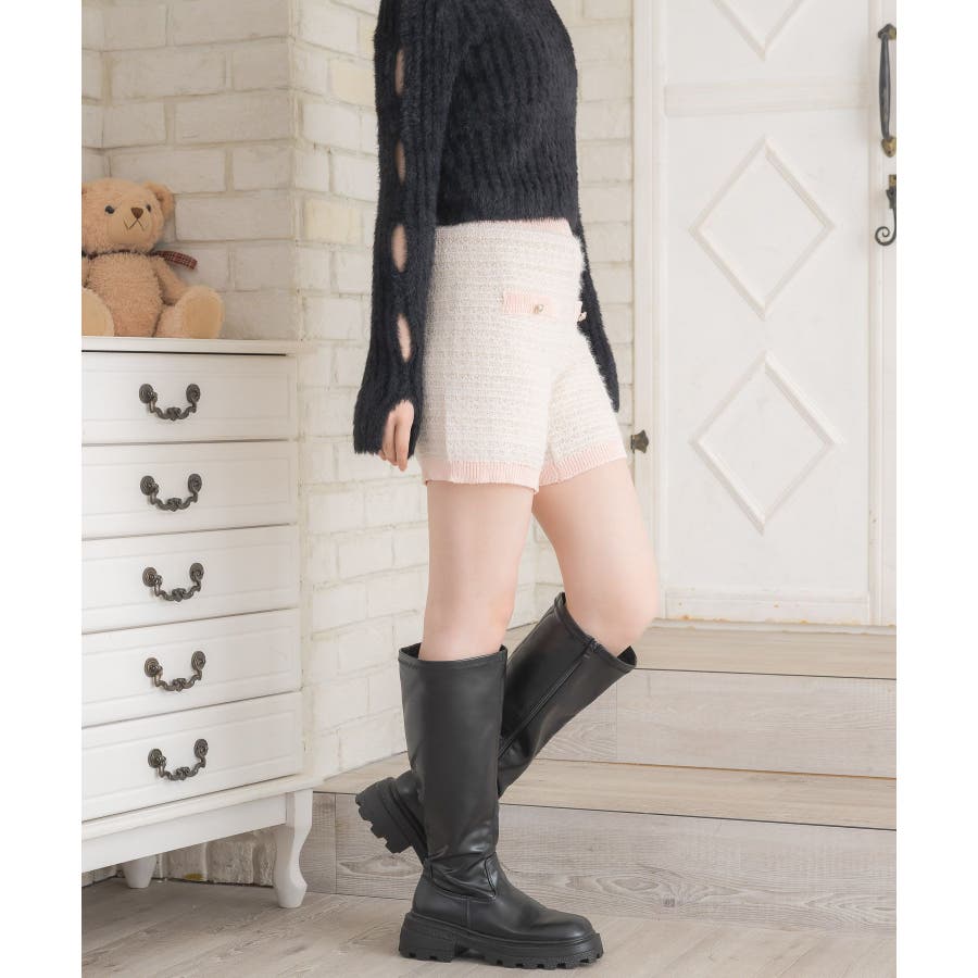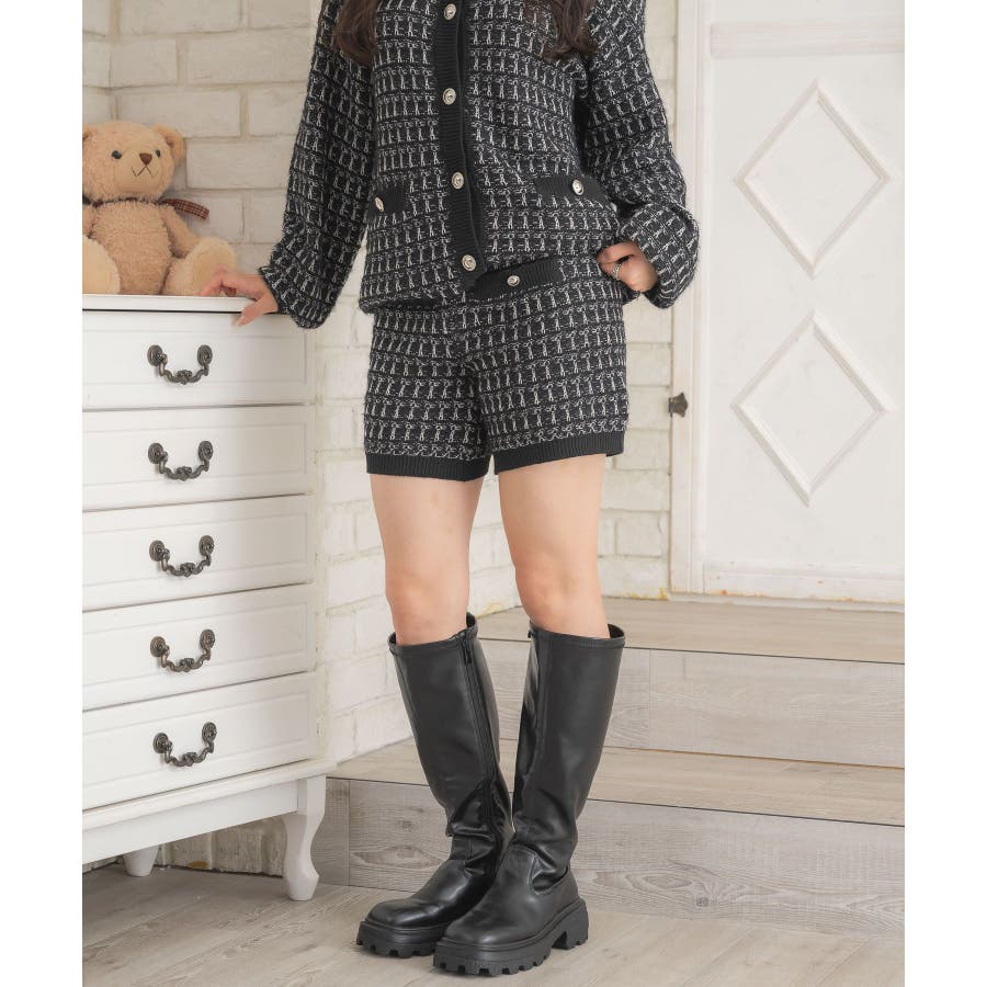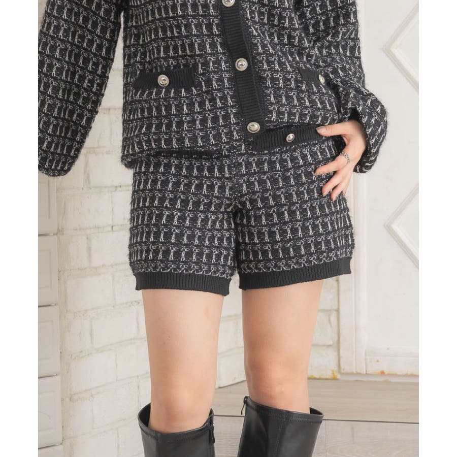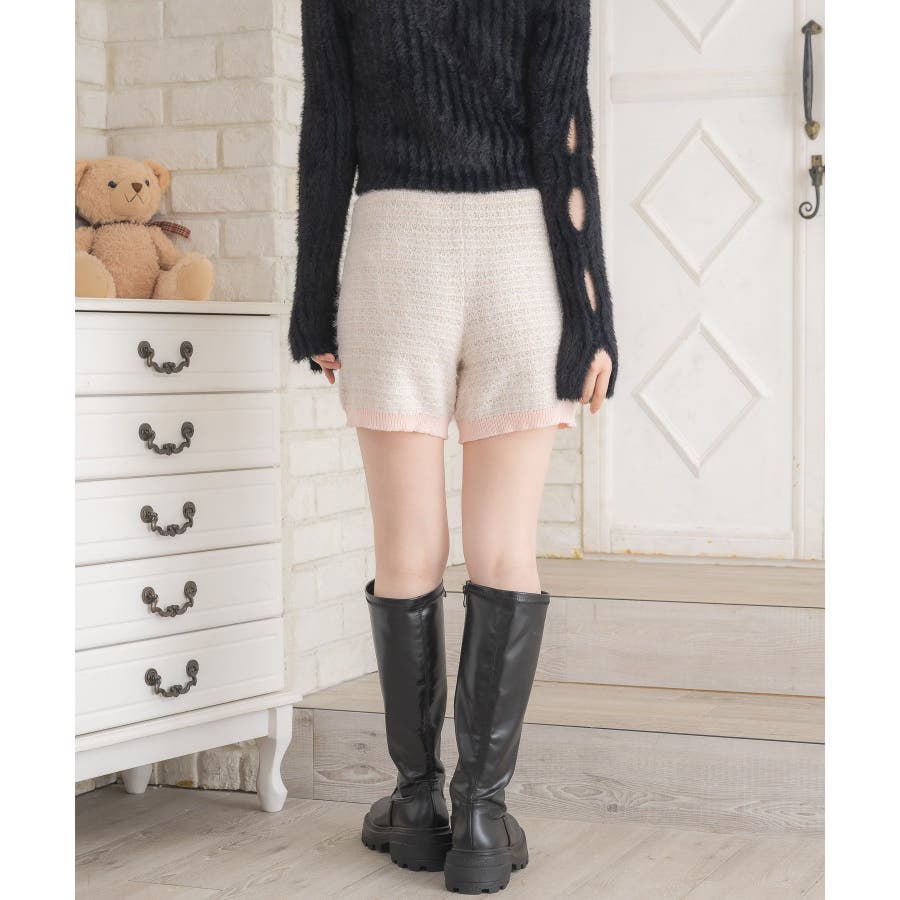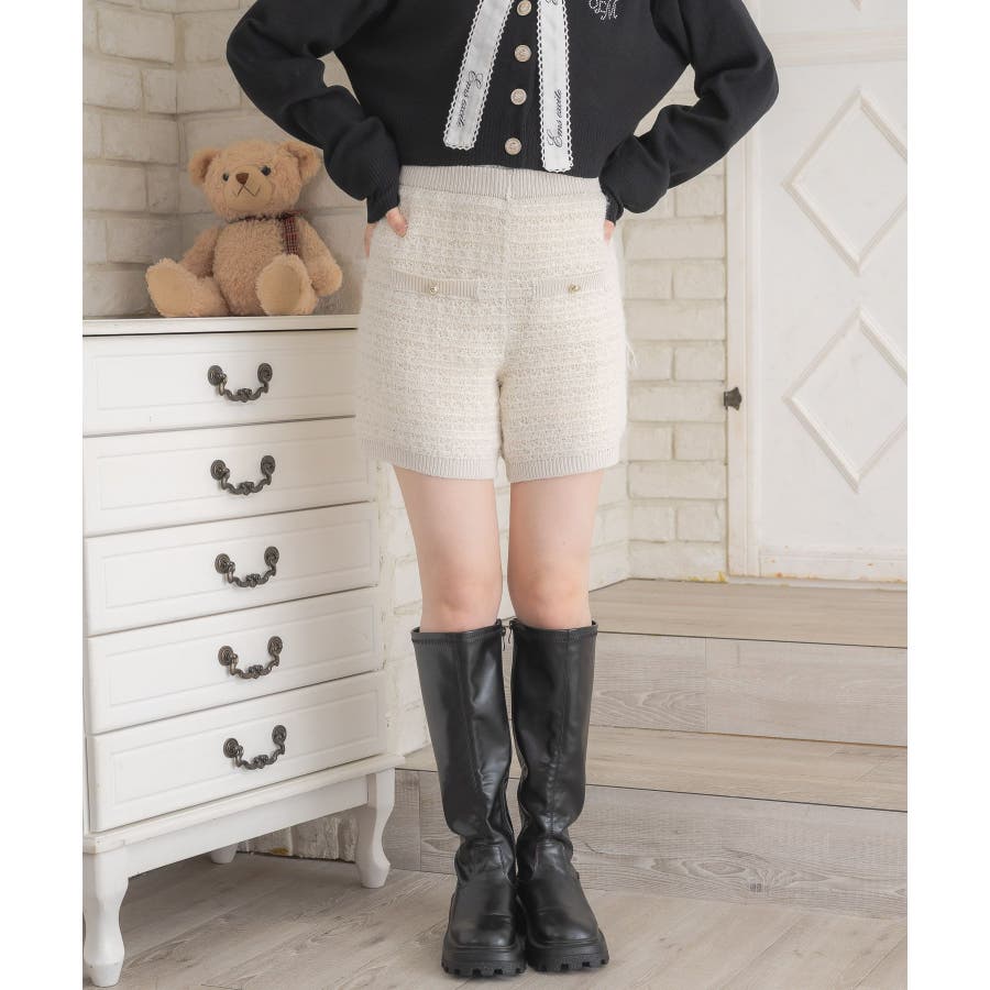 <ニット素材のミニショートパンツ>▼デザイン伸縮性のある着心地抜群なニットショートパンツ。フロント部分には金釦がデザインされていて、高級感ある見え感に。ウエストは360°ゴムなので、伸縮性もあり体型問わず取り入れられるアイテム。セットアップでの着用もおすすめです。▼コーディネート冬らしいニット素材のショートパンツ。どんなボトムと合わせても上品さをプラスしてくれます。BIGヴィンテージカーデと合わせることでセットアップとしても着て頂けます。------------------------------生地感:普通伸縮性:ある透け感:なし裏地:ある------------------------------▼ブランド紹介ems excite (エムズエキサイト)“more fun more cute”今をもっと楽しくもっと可愛くいたい女の子に向けたgirly cuteなブランド#ツイード風 #ニットショートパンツ #ヴィンテージ #セットアップ #韓国コーデ▼注意事項※撮影環境やモニター環境によって実際の商品とお色味が 多少異なってみえる場合がございます。品番:EW541532B001 / 品名:ニットショートパンツ