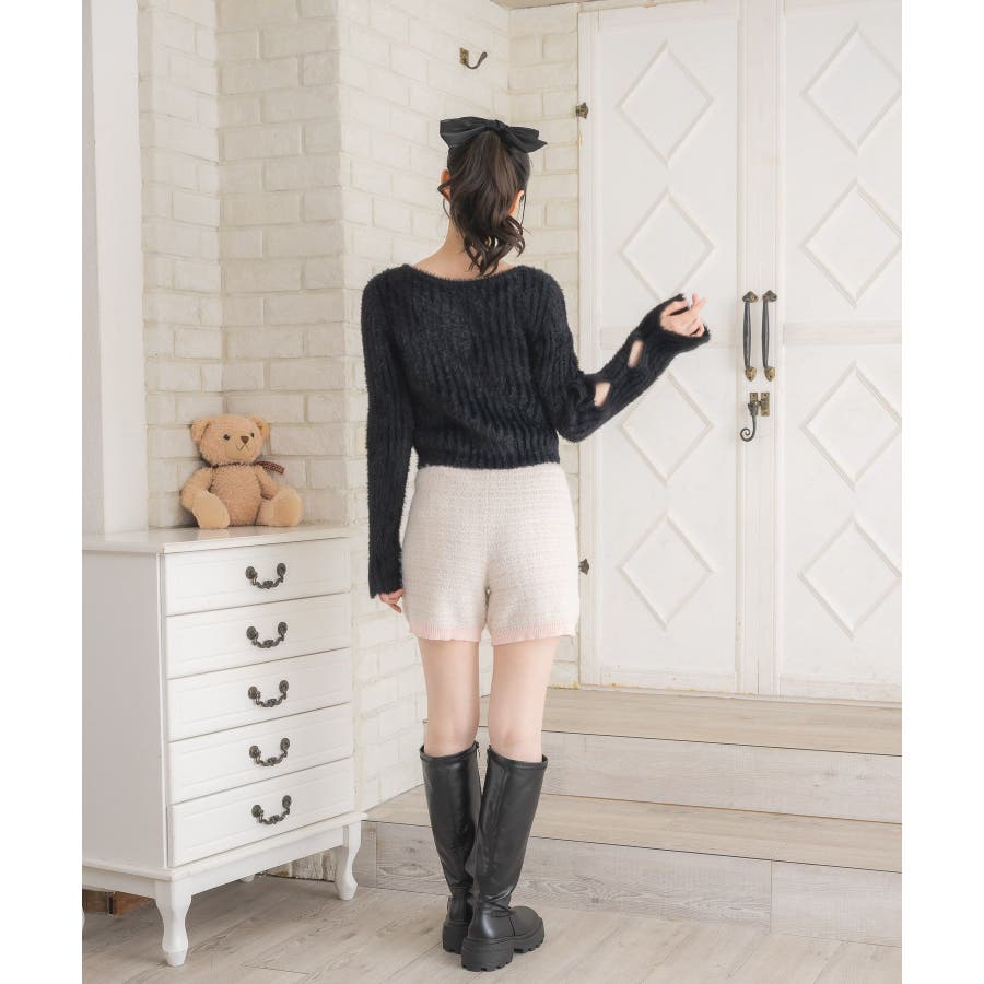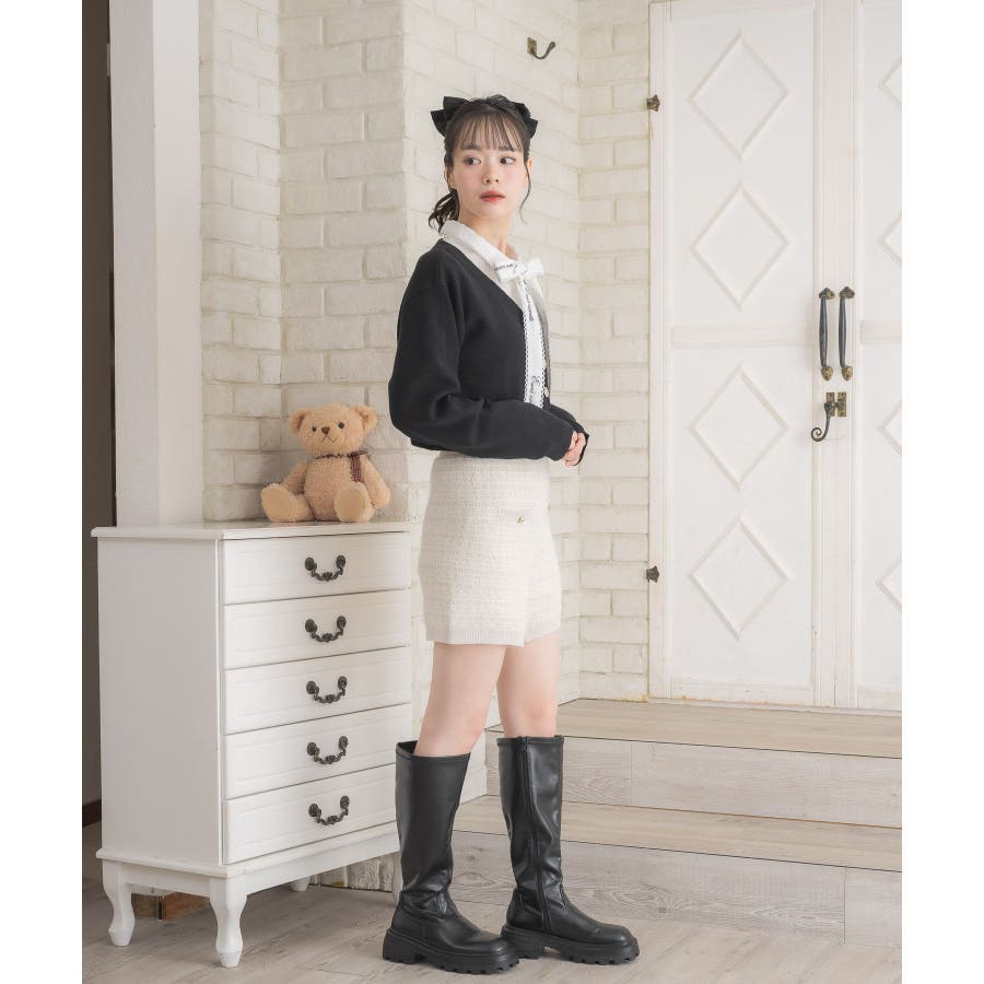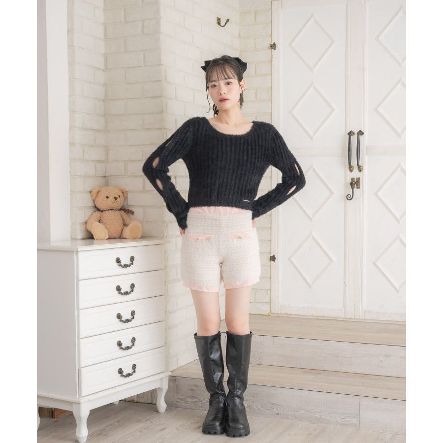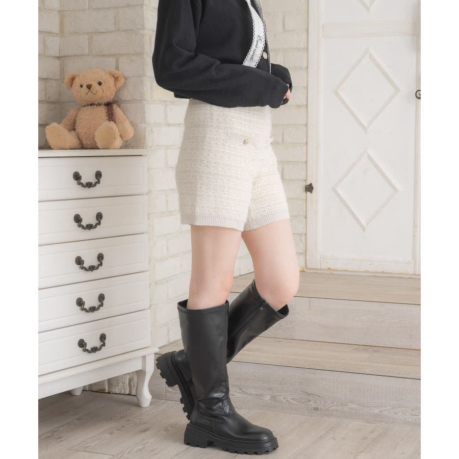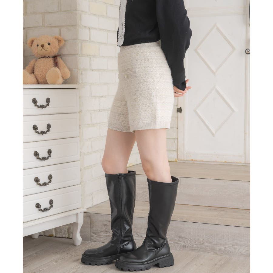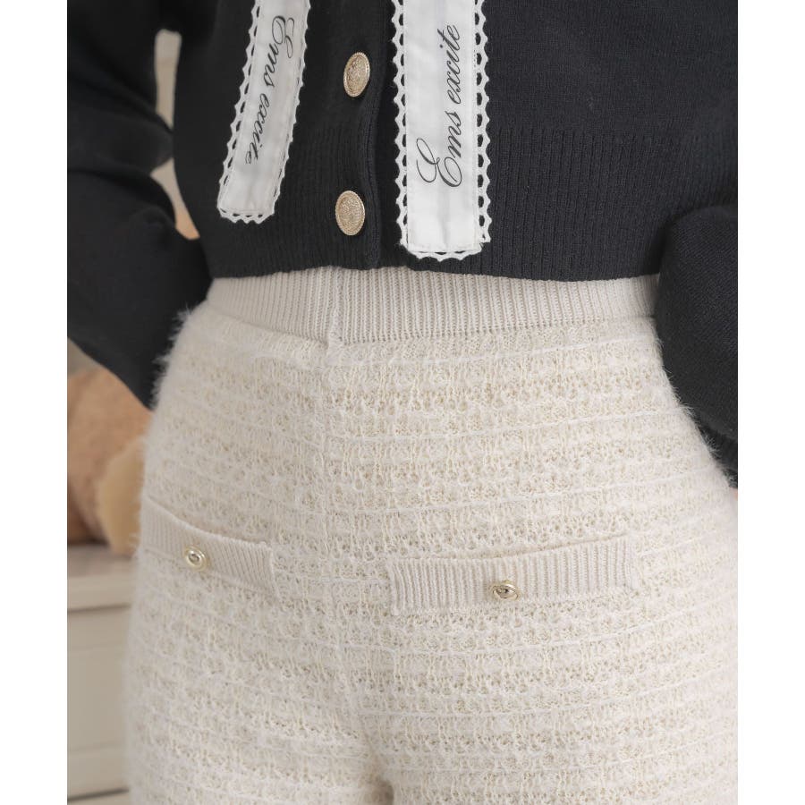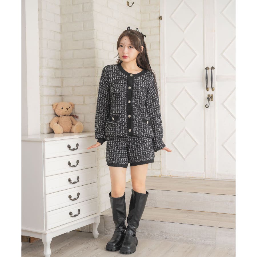 <ニット素材のミニショートパンツ>▼デザイン伸縮性のある着心地抜群なニットショートパンツ。フロント部分には金釦がデザインされていて、高級感ある見え感に。ウエストは360°ゴムなので、伸縮性もあり体型問わず取り入れられるアイテム。セットアップでの着用もおすすめです。▼コーディネート冬らしいニット素材のショートパンツ。どんなボトムと合わせても上品さをプラスしてくれます。BIGヴィンテージカーデと合わせることでセットアップとしても着て頂けます。------------------------------生地感:普通伸縮性:ある透け感:なし裏地:ある------------------------------▼ブランド紹介ems excite (エムズエキサイト)“more fun more cute”今をもっと楽しくもっと可愛くいたい女の子に向けたgirly cuteなブランド#ツイード風 #ニットショートパンツ #ヴィンテージ #セットアップ #韓国コーデ▼注意事項※撮影環境やモニター環境によって実際の商品とお色味が 多少異なってみえる場合がございます。品番:EW541532B001 / 品名:ニットショートパンツ