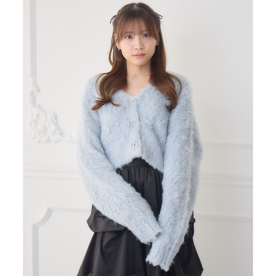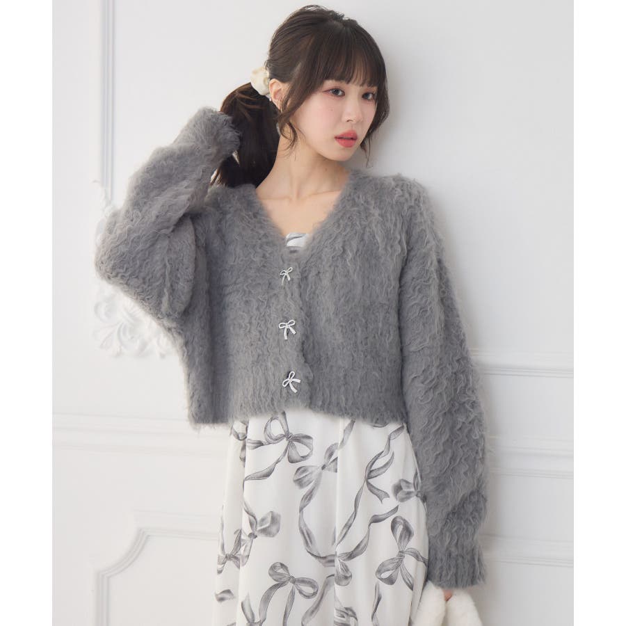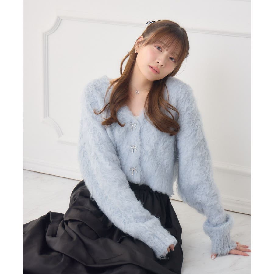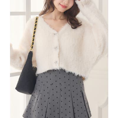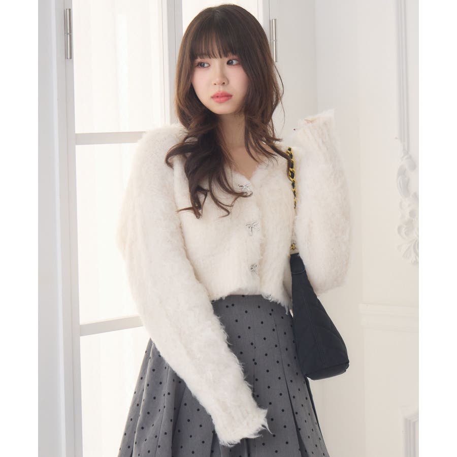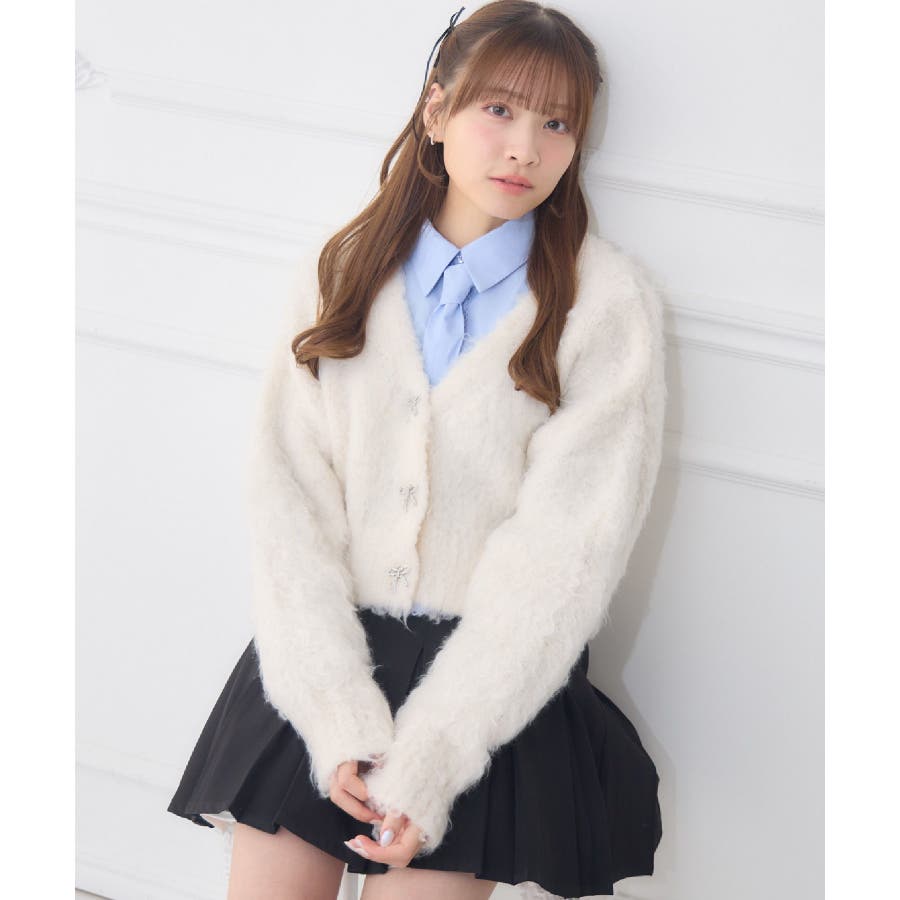 <モケモケ素材にリボンボタンが映える起毛ニットカーディガン!>▼デザイン毛足が長い艶やかな素材の起毛カーディガン!フロント部分の釦はリボンブの形になっていてemsらしいデザイン。もこもこしていて着心地抜群な上にしっかり暖かいアイテムです。▼コーディネート羽織っても、1枚でニット使いしても可愛いアイテム。キャミワンピースに羽織ればデートコーデの完成です。------------------------------生地感:普通伸縮性:ある透け感:なし裏地:なし------------------------------▼ブランド紹介ems excite (エムズエキサイト)“more fun more cute”今をもっと楽しくもっと可愛くいたい女の子に向けたgirly cuteなブランド#リボン #起毛ニット #起毛ニットカーデ #カーディガン #リボンボタン #デートコーデ▼注意事項※撮影環境やモニター環境によって実際の商品とお色味が 多少異なってみえる場合がございます。品番:EW556412G006 / 品名:モケモケ起毛カーデ