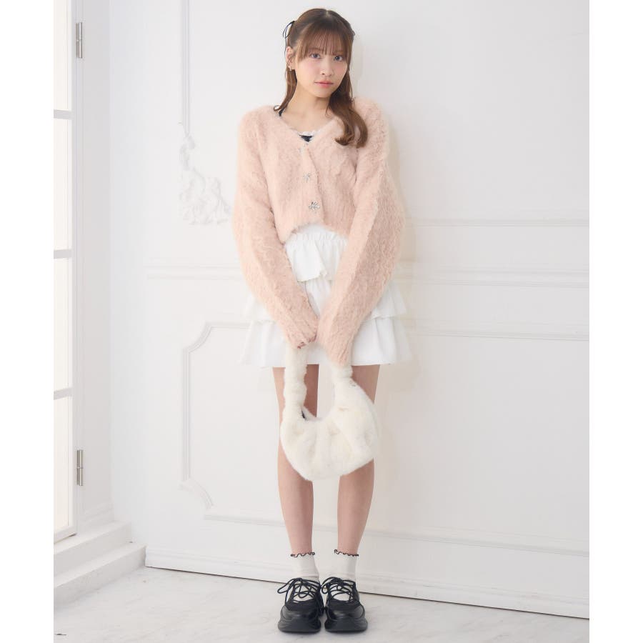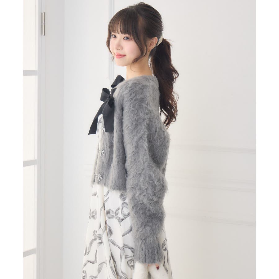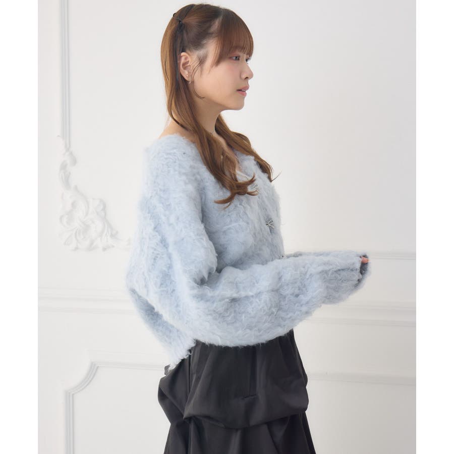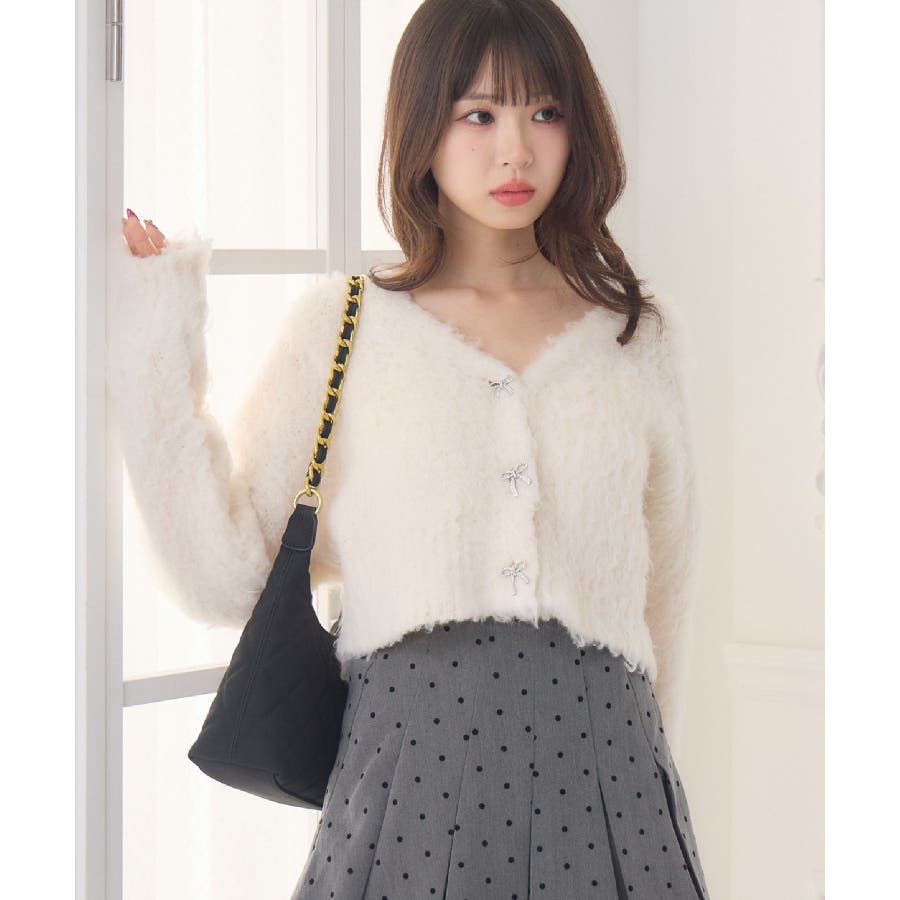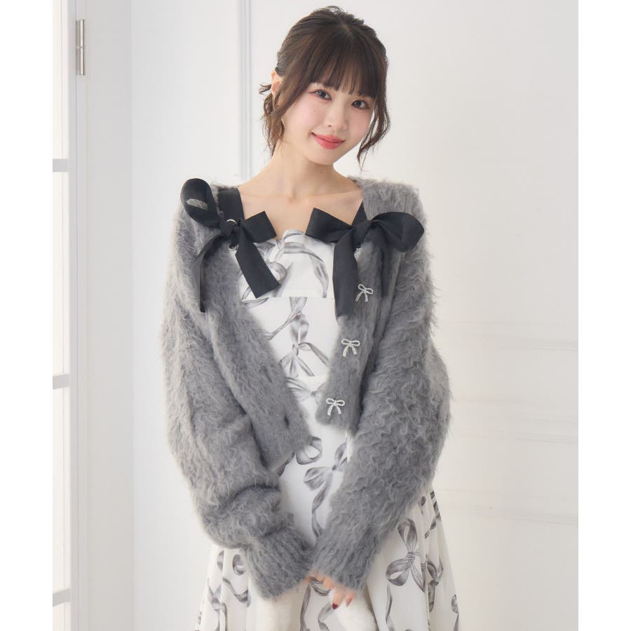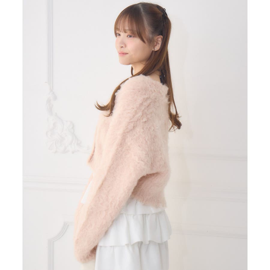 <モケモケ素材にリボンボタンが映える起毛ニットカーディガン!>▼デザイン毛足が長い艶やかな素材の起毛カーディガン!フロント部分の釦はリボンブの形になっていてemsらしいデザイン。もこもこしていて着心地抜群な上にしっかり暖かいアイテムです。▼コーディネート羽織っても、1枚でニット使いしても可愛いアイテム。キャミワンピースに羽織ればデートコーデの完成です。------------------------------生地感:普通伸縮性:ある透け感:なし裏地:なし------------------------------▼ブランド紹介ems excite (エムズエキサイト)“more fun more cute”今をもっと楽しくもっと可愛くいたい女の子に向けたgirly cuteなブランド#リボン #起毛ニット #起毛ニットカーデ #カーディガン #リボンボタン #デートコーデ▼注意事項※撮影環境やモニター環境によって実際の商品とお色味が 多少異なってみえる場合がございます。品番:EW556412G006 / 品名:モケモケ起毛カーデ