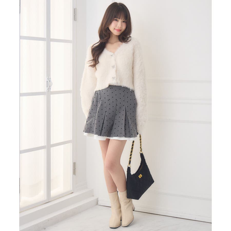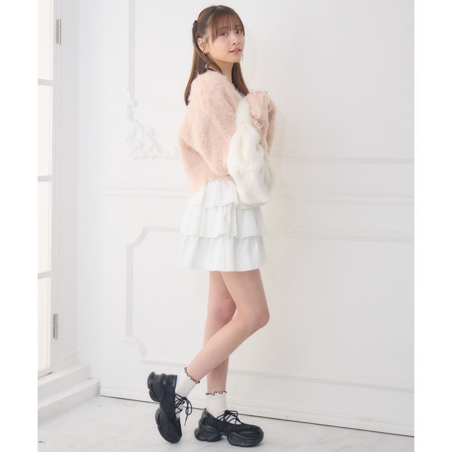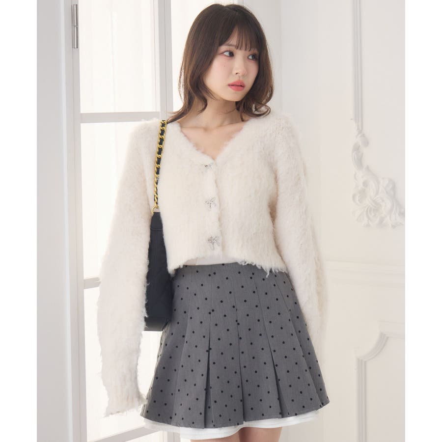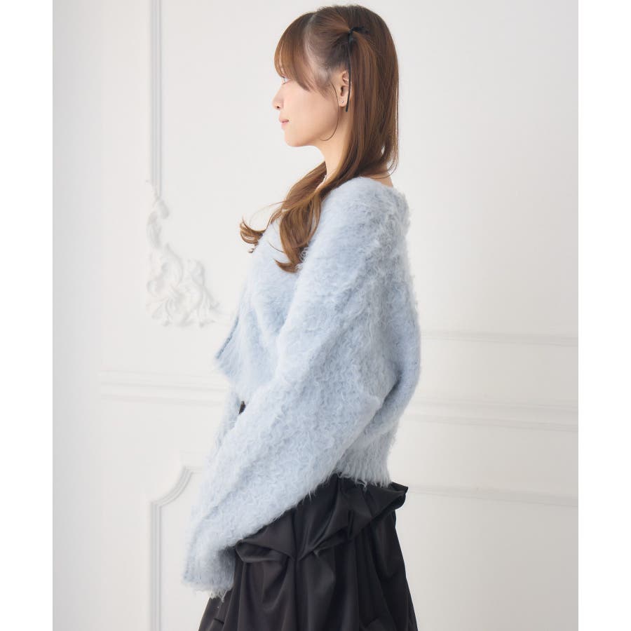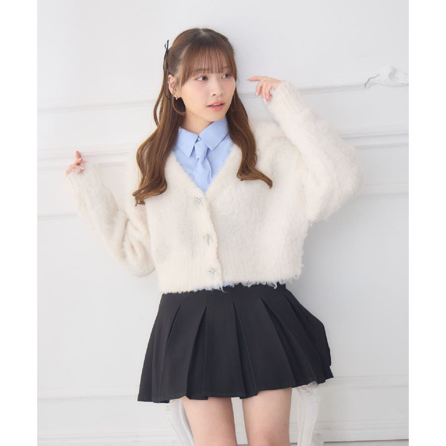 <モケモケ素材にリボンボタンが映える起毛ニットカーディガン!>▼デザイン毛足が長い艶やかな素材の起毛カーディガン!フロント部分の釦はリボンブの形になっていてemsらしいデザイン。もこもこしていて着心地抜群な上にしっかり暖かいアイテムです。▼コーディネート羽織っても、1枚でニット使いしても可愛いアイテム。キャミワンピースに羽織ればデートコーデの完成です。------------------------------生地感:普通伸縮性:ある透け感:なし裏地:なし------------------------------▼ブランド紹介ems excite (エムズエキサイト)“more fun more cute”今をもっと楽しくもっと可愛くいたい女の子に向けたgirly cuteなブランド#リボン #起毛ニット #起毛ニットカーデ #カーディガン #リボンボタン #デートコーデ▼注意事項※撮影環境やモニター環境によって実際の商品とお色味が 多少異なってみえる場合がございます。品番:EW556412G006 / 品名:モケモケ起毛カーデ