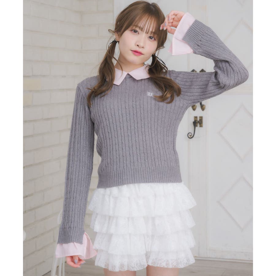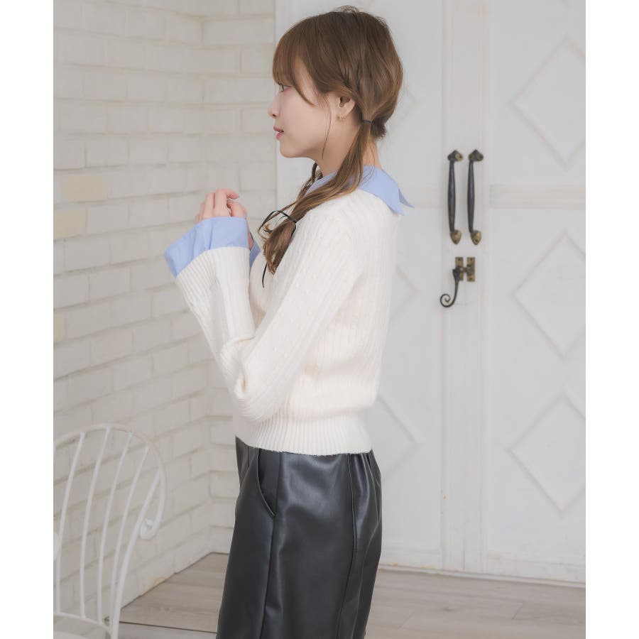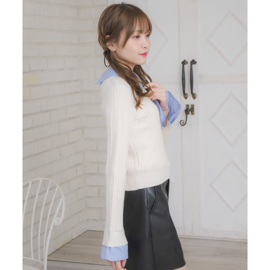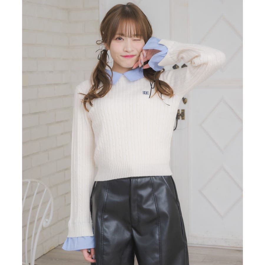 〈今年らしいレイヤード見えアイテムの新作が登場〉▼アイテム今年大人気のレイヤード見えアイテム!シャツとニットがドッキングされたデザインは、秋も大注目袖口はフレアスリーブになっていて、シャツ素材のフリルが、emsらしいワンポイント!ニット部分はケーブル編みで、これからのシーズンに暖かい見え感♪▼コーディネートガーリーなコーデにおすすめのアイテム!プリーツスカートと合わせてスクールガールコーデも楽しめます。ロング丈のスカートと合わせたらフェミニンなスタイリングに♪------------------------------生地感:普通伸縮性:ニット部分はある透け感:なし裏地:なし------------------------------▼ブランド紹介ems excite (エムズエキサイト)“more fun more cute”今をもっと楽しくもっと可愛くいたい女の子に向けたgirly cuteなブランド#シャツ #ニット #襟 #ニットアイテム #ドッキング #レイヤード #ガーリーコーデ #スクールガール #ケーブルニット▼注意事項※撮影環境やモニター環境によって実際の商品とお色味が 多少異なってみえる場合がございます。品番:EW557112G002 / 品名:SHレイヤード風NTPO
