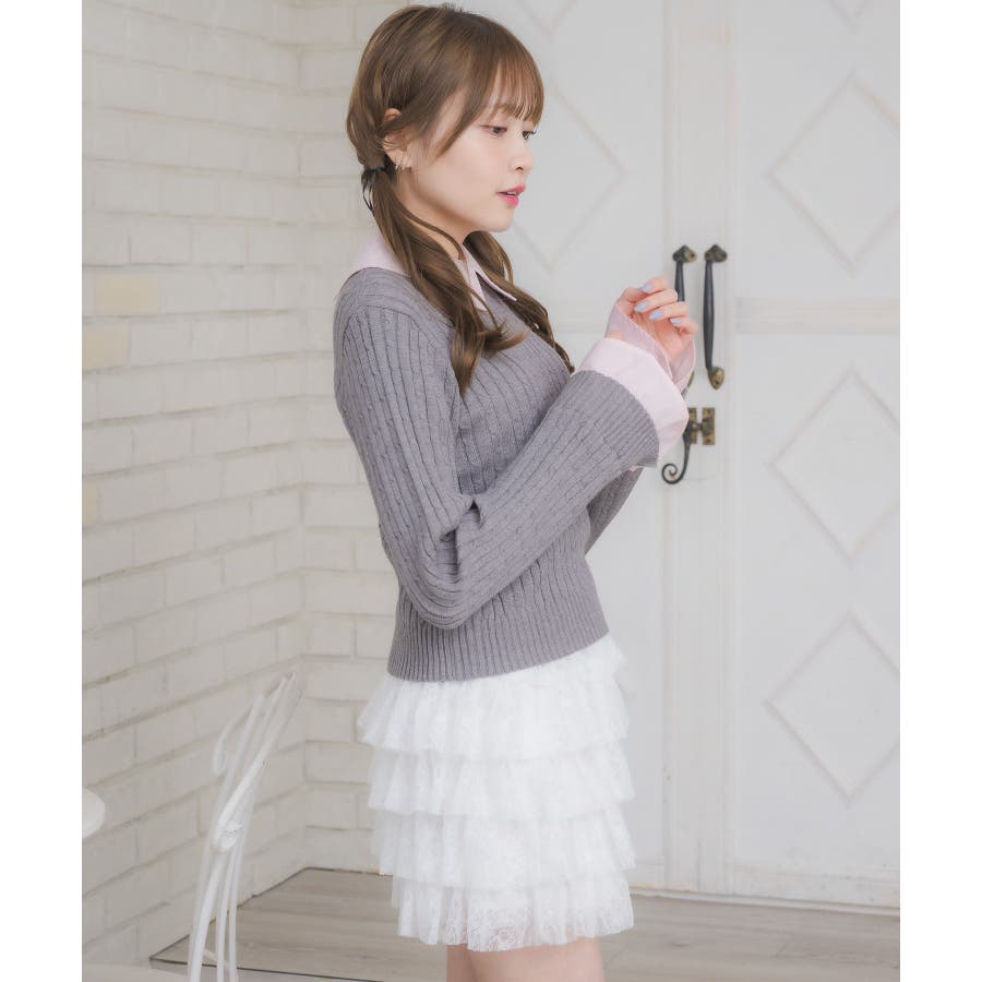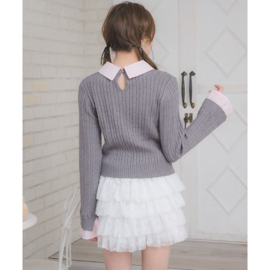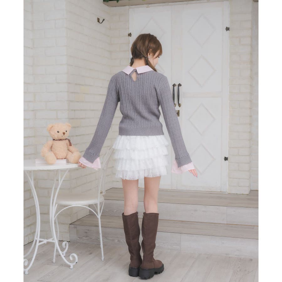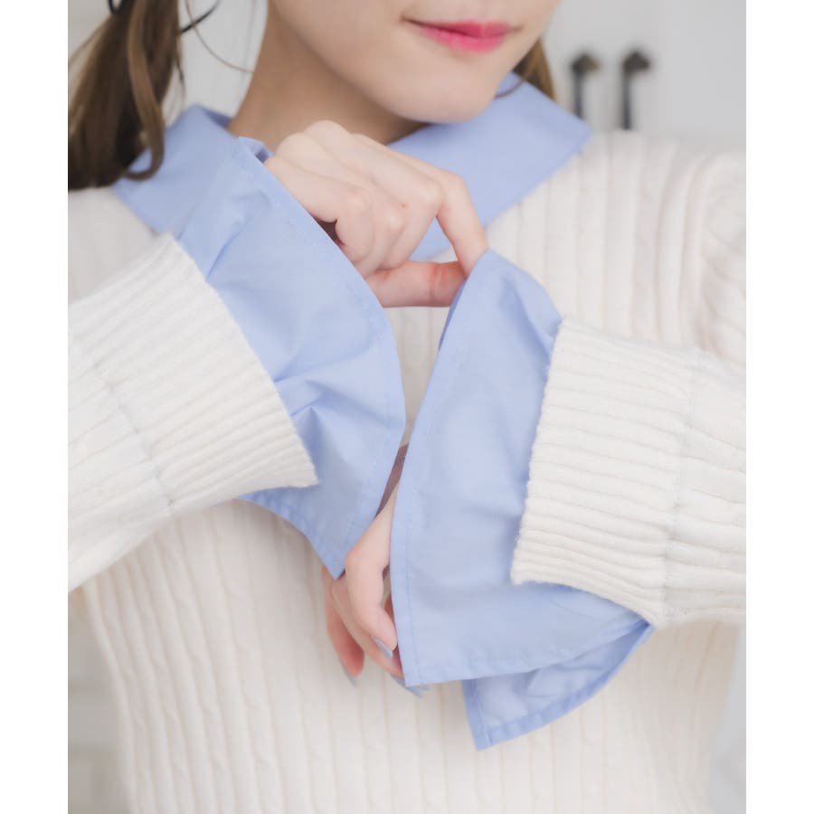 〈今年らしいレイヤード見えアイテムの新作が登場〉▼アイテム今年大人気のレイヤード見えアイテム!シャツとニットがドッキングされたデザインは、秋も大注目袖口はフレアスリーブになっていて、シャツ素材のフリルが、emsらしいワンポイント!ニット部分はケーブル編みで、これからのシーズンに暖かい見え感♪▼コーディネートガーリーなコーデにおすすめのアイテム!プリーツスカートと合わせてスクールガールコーデも楽しめます。ロング丈のスカートと合わせたらフェミニンなスタイリングに♪------------------------------生地感:普通伸縮性:ニット部分はある透け感:なし裏地:なし------------------------------▼ブランド紹介ems excite (エムズエキサイト)“more fun more cute”今をもっと楽しくもっと可愛くいたい女の子に向けたgirly cuteなブランド#シャツ #ニット #襟 #ニットアイテム #ドッキング #レイヤード #ガーリーコーデ #スクールガール #ケーブルニット▼注意事項※撮影環境やモニター環境によって実際の商品とお色味が 多少異なってみえる場合がございます。品番:EW557112G002 / 品名:SHレイヤード風NTPO