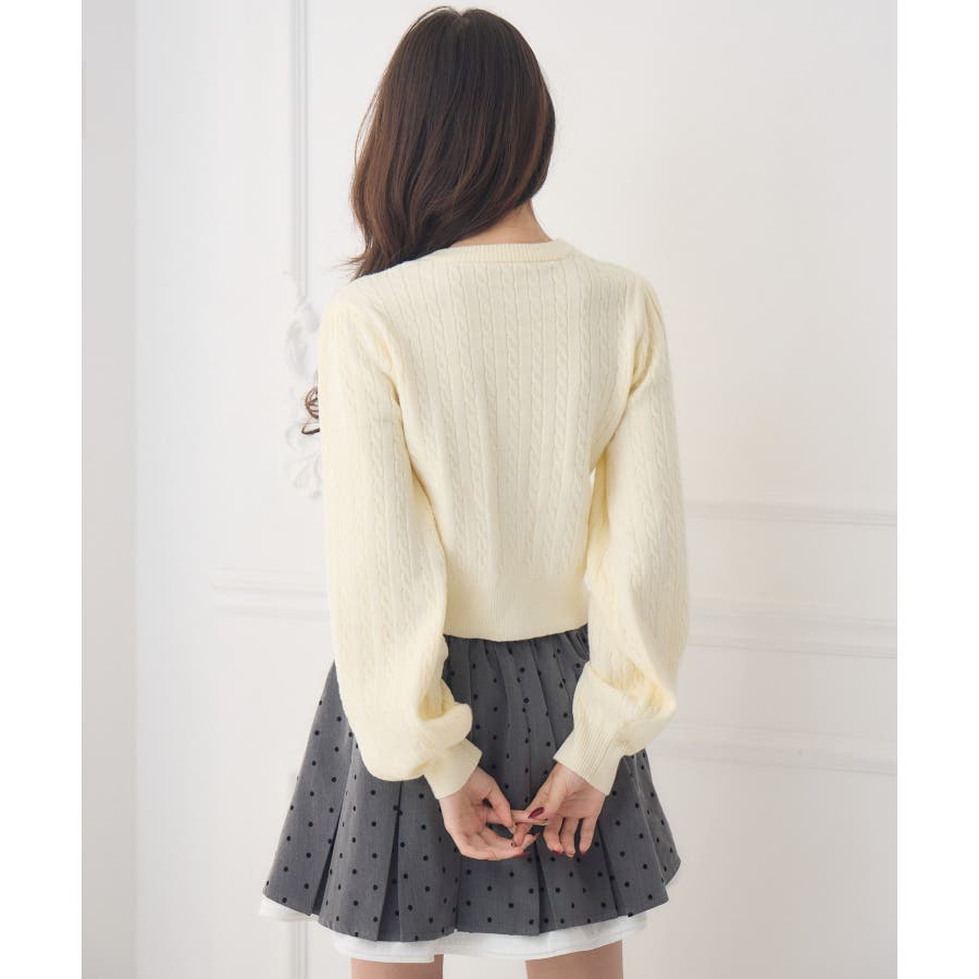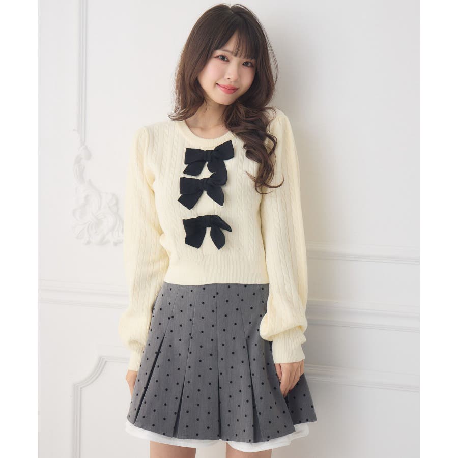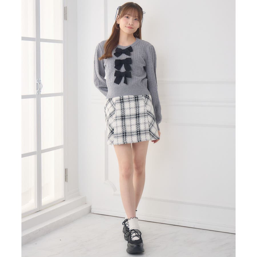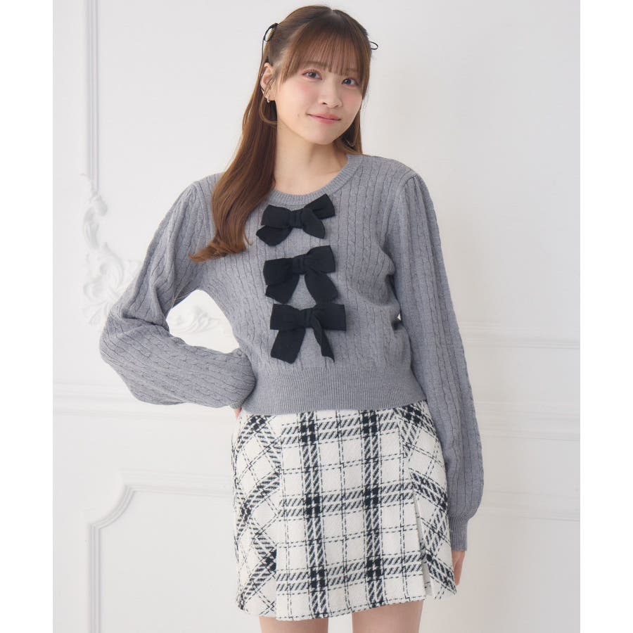 〈3段リボンが主役のガーリーニット〉▼デザイン冬ムード高まるケーブル編みニットに、フロントへ3段のリボンをあしらったガーリーデザイン。エクリュとグレーのリボンはベロア素材で、より上品で季節感のある印象に♪コンパクトな丈感で、スタイルアップして見えるのも嬉しいポイントです。▼コーディネートガーリーに振りたい日は、ミニ丈スカートやプリーツスカートとの合わせが相性◎コンパクトな丈を活かして、ハイウエストボトムと合わせるとバランス良くまとまります!ホリデーシーズンのデートニットとしてもぴったりのアイテムです♪------------------------------生地感:普通伸縮性:あり透け感:なし裏地:なし------------------------------▼ブランド紹介ems excite (エムズエキサイト)“more fun more cute”今をもっと楽しくもっと可愛くいたい女の子に向けたgirly cuteなブランド#ガーリーコーデ #リボンニット #ケーブルニット #デートコーデ▼注意事項※撮影環境やモニター環境によって実際の商品とお色味が多少異なってみえる場合がございます。品番:EW557112G003 / 品名:3段リボンNTPO