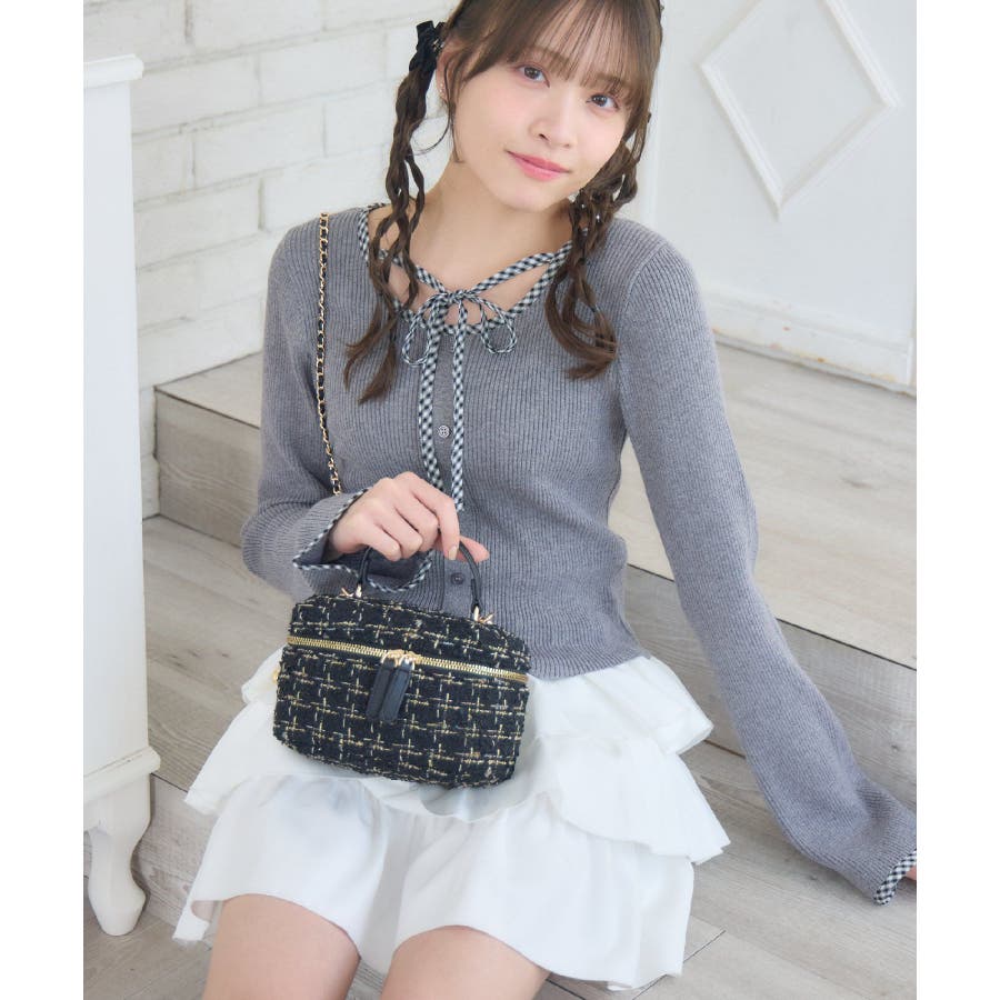 〈冬コーデにぴったりなツイードデザインのバッグ〉▼デザインコンパクトで持ち歩きやすいバニティバッグ。ツイード素材で冬っぽい暖かさを感じるアイテム。ストラップは長さの調節も可能なので、身長や使い方に合わせてアレンジして頂けます。マチはしっかり広めのスクエアで、コンパクトながらもしっかり持ち歩きたいアイテムは入るので冬のお出かけにおすすめ♪▼コーディネートガーリーにワンピースやフレアスカートと合わせるのがおすすめ!デートコーデのバッグに取り入れてみてください♪▼ブランド紹介ems excite (エムズエキサイト)“more fun more cute”今をもっと楽しくもっと可愛くいたい女の子に向けたgirly cuteなブランド#バッグ #バニティ #ツイード #バニティバッグ #デートコーデ #デートバッグ▼注意事項※撮影環境やモニター環境によって実際の商品とお色味が 多少異なってみえる場合がございます。品番:EW561243G001 / 品名:キルトバニティバッグ