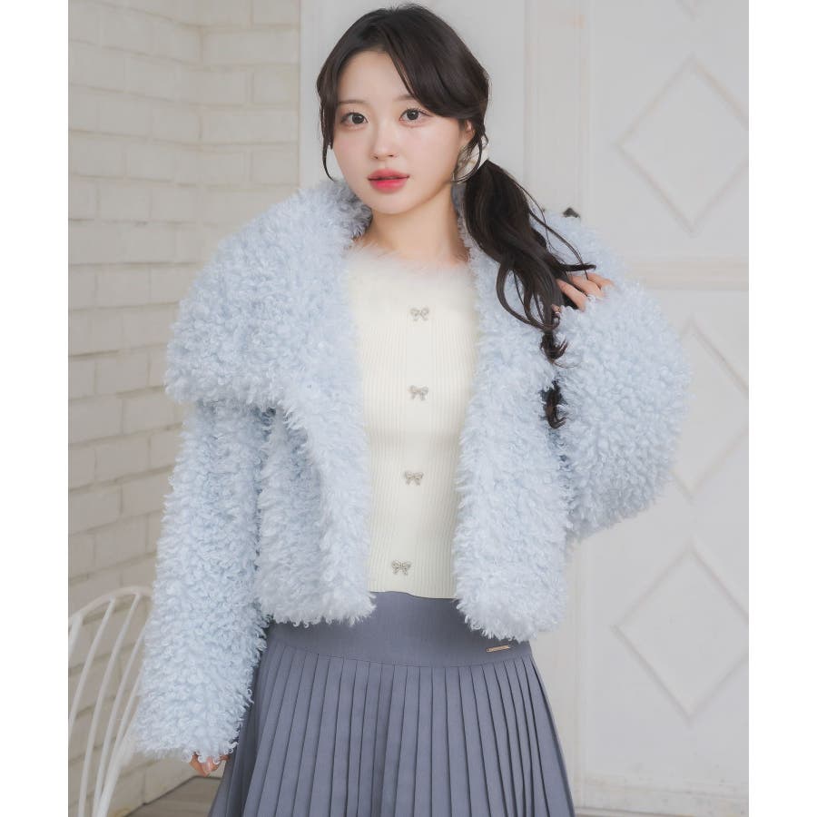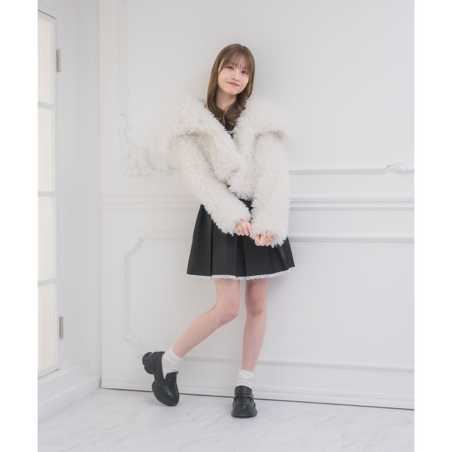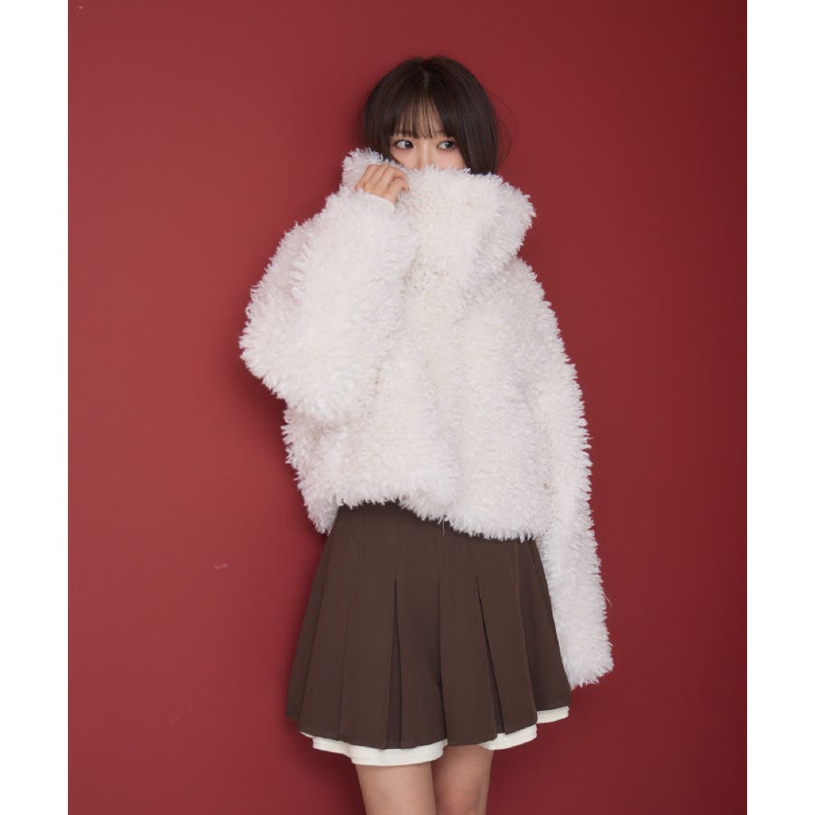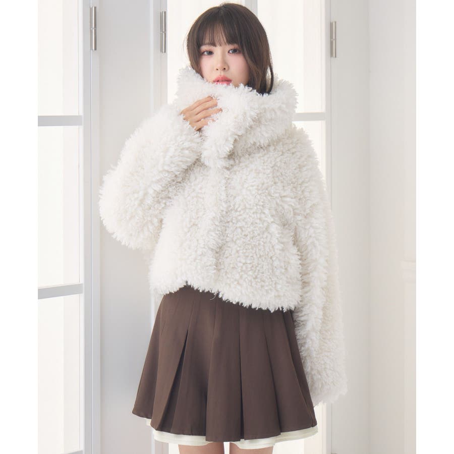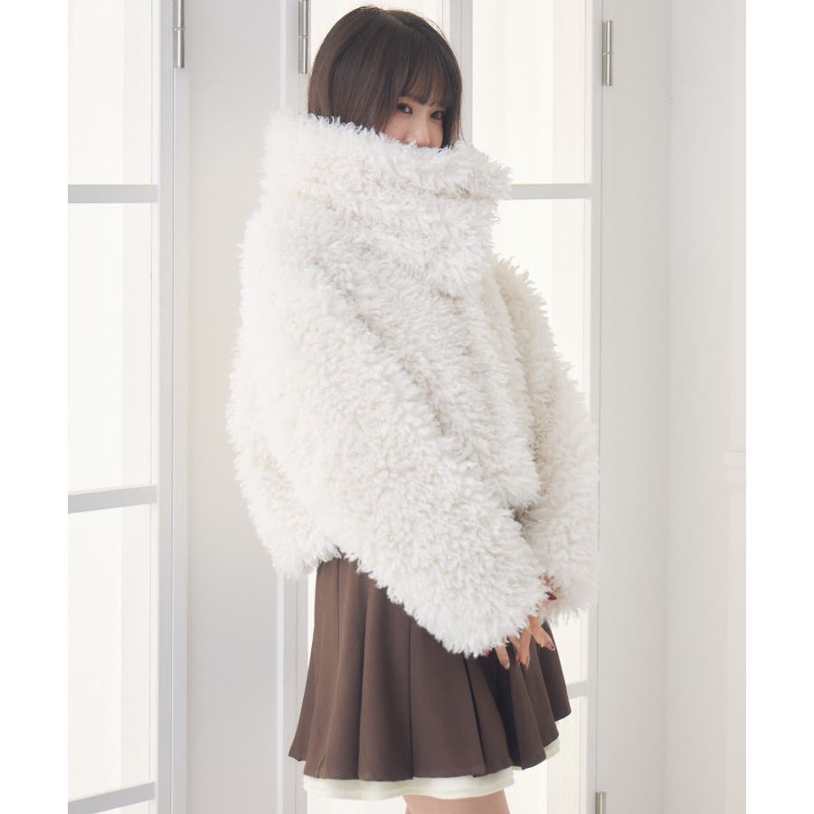 <2wayでどちらのデザインも楽しめるボリュームジャケット>▼デザイン嬉しい2watデザインアイテム!襟に付属しているフックでハイネックにアレンジできるので、真冬もマフラーいらずの暖かい作りに♪フロント部分はボタンで簡単に着脱できます◎▼コーディネート厚手のファーなので、真冬も暖かく着ていただけます。カジュアルコーデにも、ガーリーコーデにも合わられるアイテムなので、コーデを選ばないデイリーアウターです。------------------------------生地感:厚手伸縮性:なし透け感:なし裏地:あり------------------------------▼ブランド紹介ems excite (エムズエキサイト)“more fun more cute”今をもっと楽しくもっと可愛くいたい女の子に向けたgirly cuteなブランド#ファー #2way #ハイネック #もこもこ #プードル▼注意事項※撮影環境やモニター環境によって実際の商品とお色味が多少異なってみえる場合がございます。品番:EW580021B001 / 品名:2way襟付FファーJK