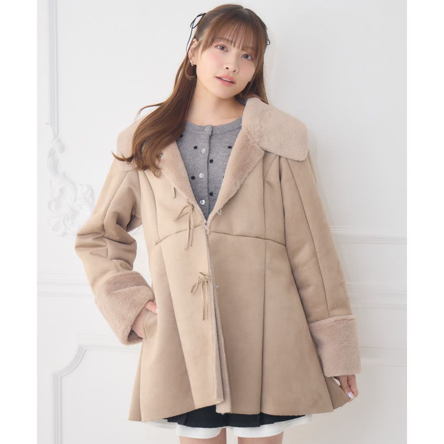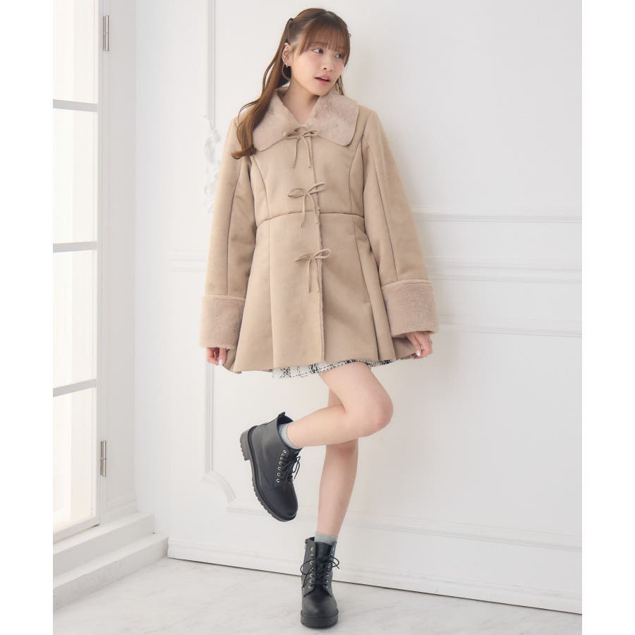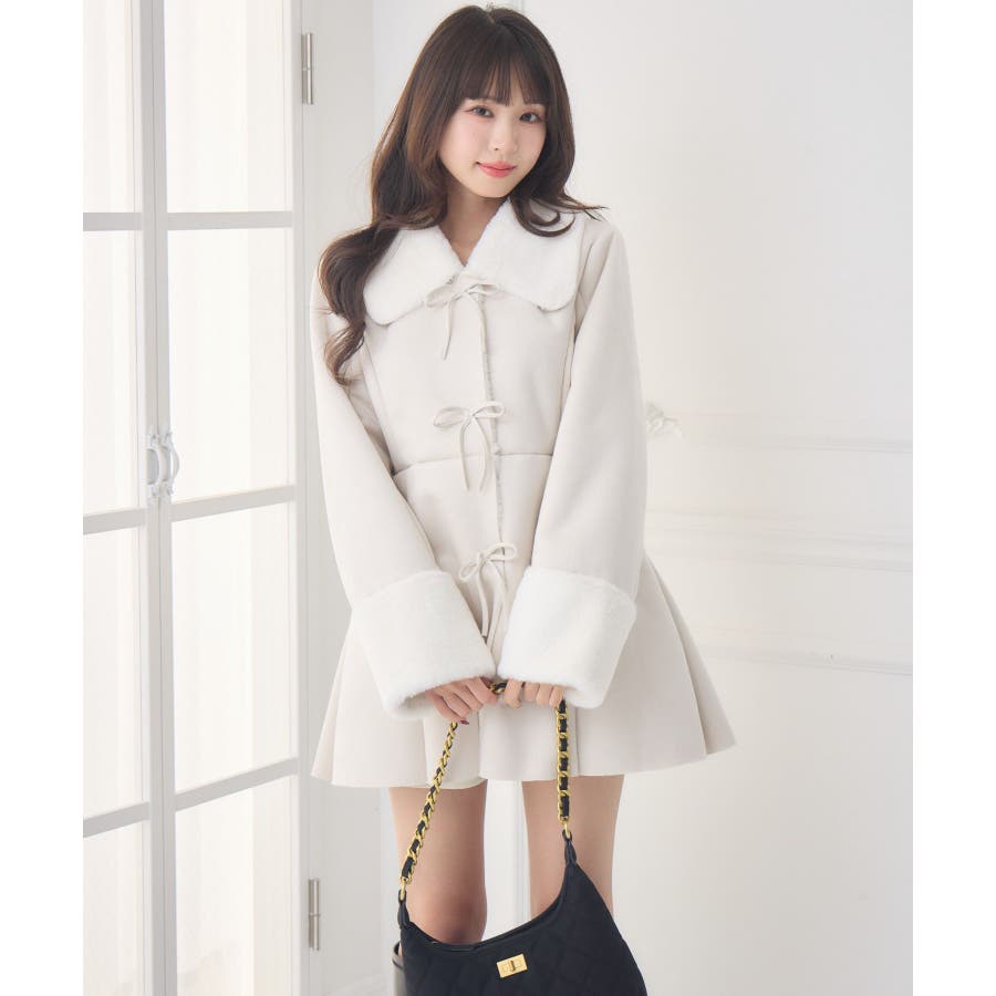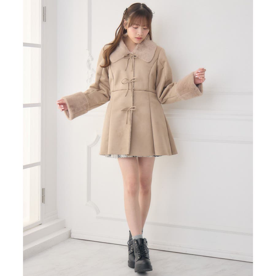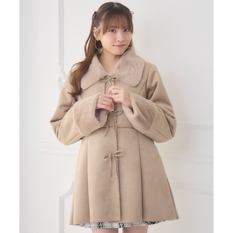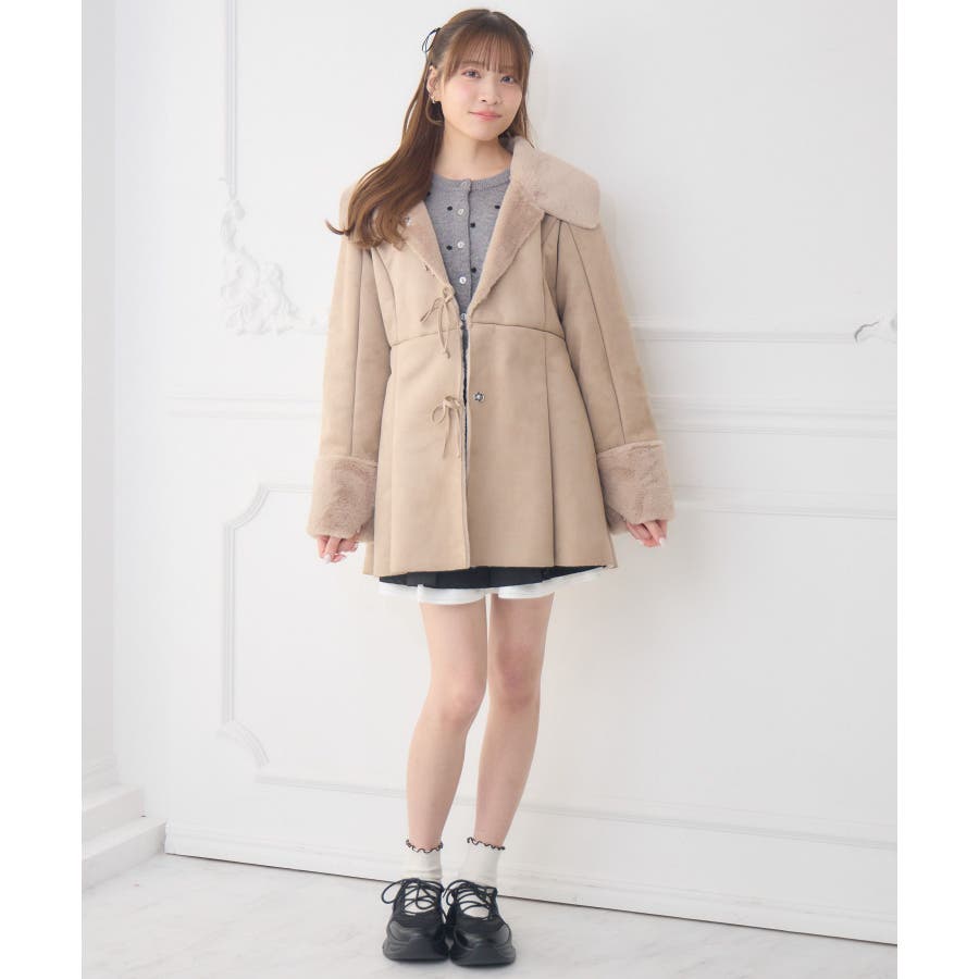 <首回りのフェイクファーが暖かい女子力高めアウター>▼デザイン首回りと袖口にフェイクファーデザインが施されたコート。フロント部分はリボンで華やかなデザインに。ボタンで着脱できるのも着やすいポイント!上品で女子力高めの1枚なので、クリスマスデートや参戦コーデにもおすすめです。▼コーディネート首回りのファーがしっかり暖かいコート。ミニ丈ワンピースに羽織って、冬のあざとデートコーデにセレクトしてみて下さい。------------------------------生地感:厚手伸縮性:なし透け感:なし裏地:あり------------------------------▼ブランド紹介ems excite (エムズエキサイト)“more fun more cute”今をもっと楽しくもっと可愛くいたい女の子に向けたgirly cuteなブランド#コート #アウター #ジャケット#ファー #リボン #ガーリーコーデ▼注意事項※撮影環境やモニター環境によって実際の商品とお色味が多少異なってみえる場合がございます。品番:EW580021G003 / 品名:Fファー襟スエードコート
