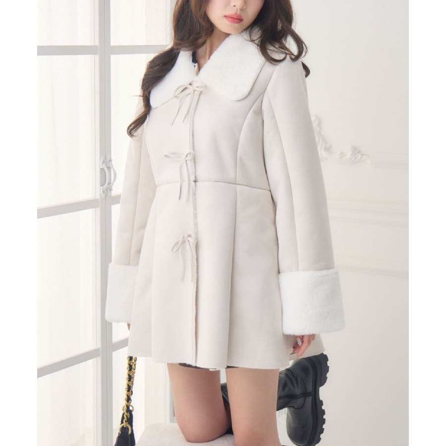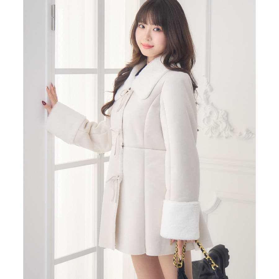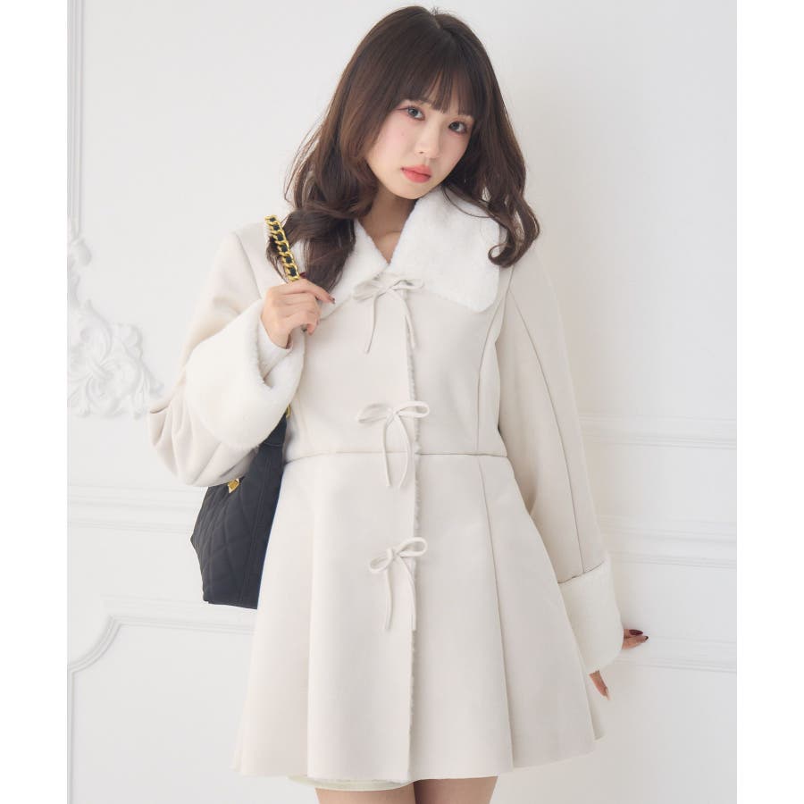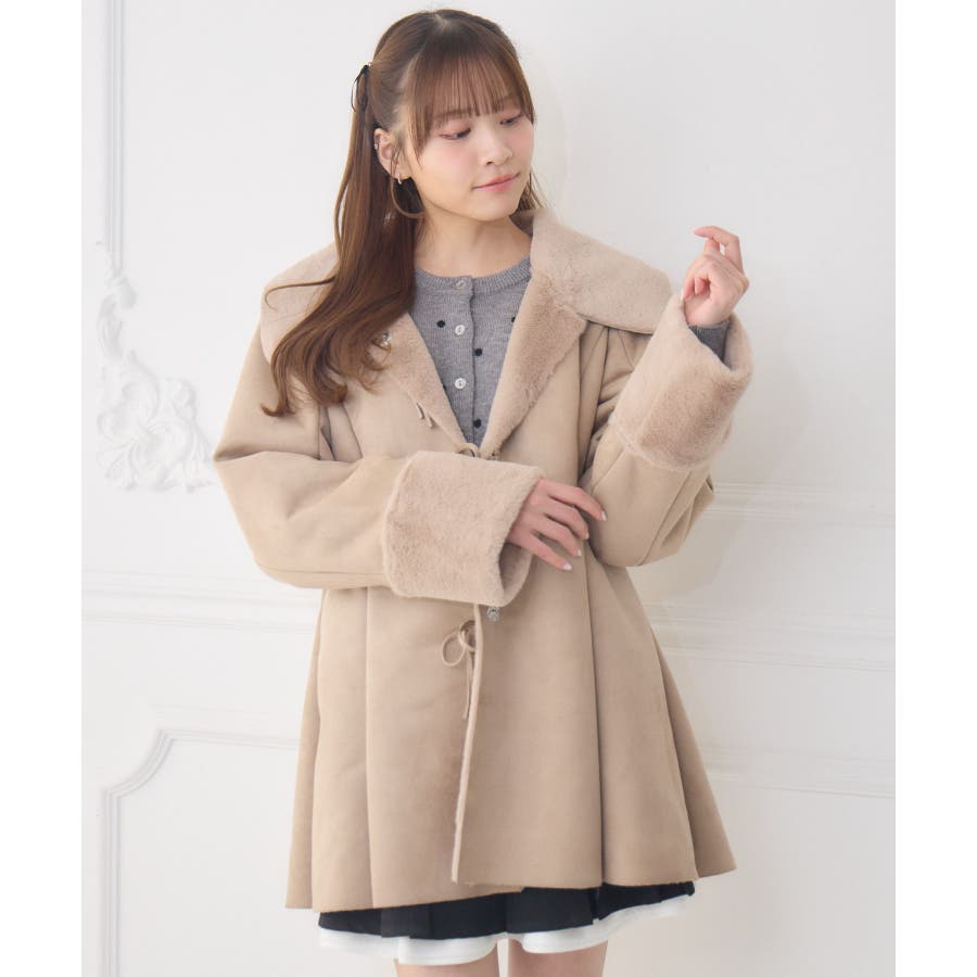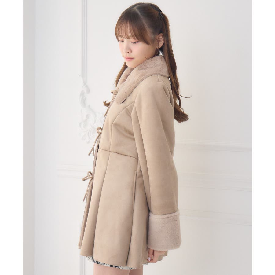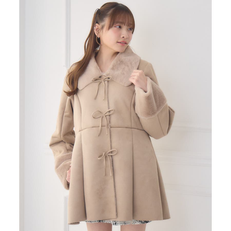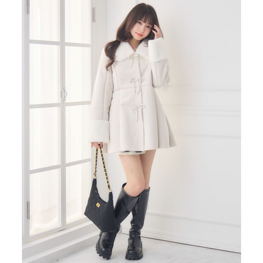 <首回りのフェイクファーが暖かい女子力高めアウター>▼デザイン首回りと袖口にフェイクファーデザインが施されたコート。フロント部分はリボンで華やかなデザインに。ボタンで着脱できるのも着やすいポイント!上品で女子力高めの1枚なので、クリスマスデートや参戦コーデにもおすすめです。▼コーディネート首回りのファーがしっかり暖かいコート。ミニ丈ワンピースに羽織って、冬のあざとデートコーデにセレクトしてみて下さい。------------------------------生地感:厚手伸縮性:なし透け感:なし裏地:あり------------------------------▼ブランド紹介ems excite (エムズエキサイト)“more fun more cute”今をもっと楽しくもっと可愛くいたい女の子に向けたgirly cuteなブランド#コート #アウター #ジャケット#ファー #リボン #ガーリーコーデ▼注意事項※撮影環境やモニター環境によって実際の商品とお色味が多少異なってみえる場合がございます。品番:EW580021G003 / 品名:Fファー襟スエードコート