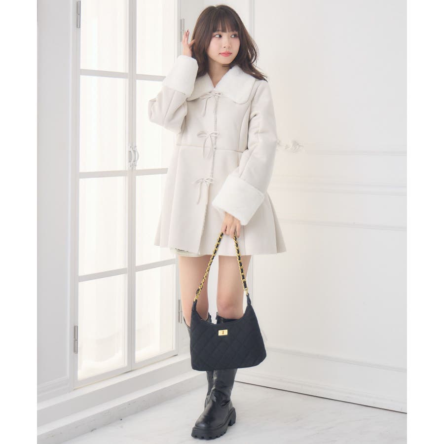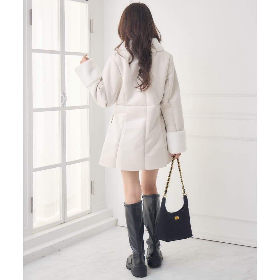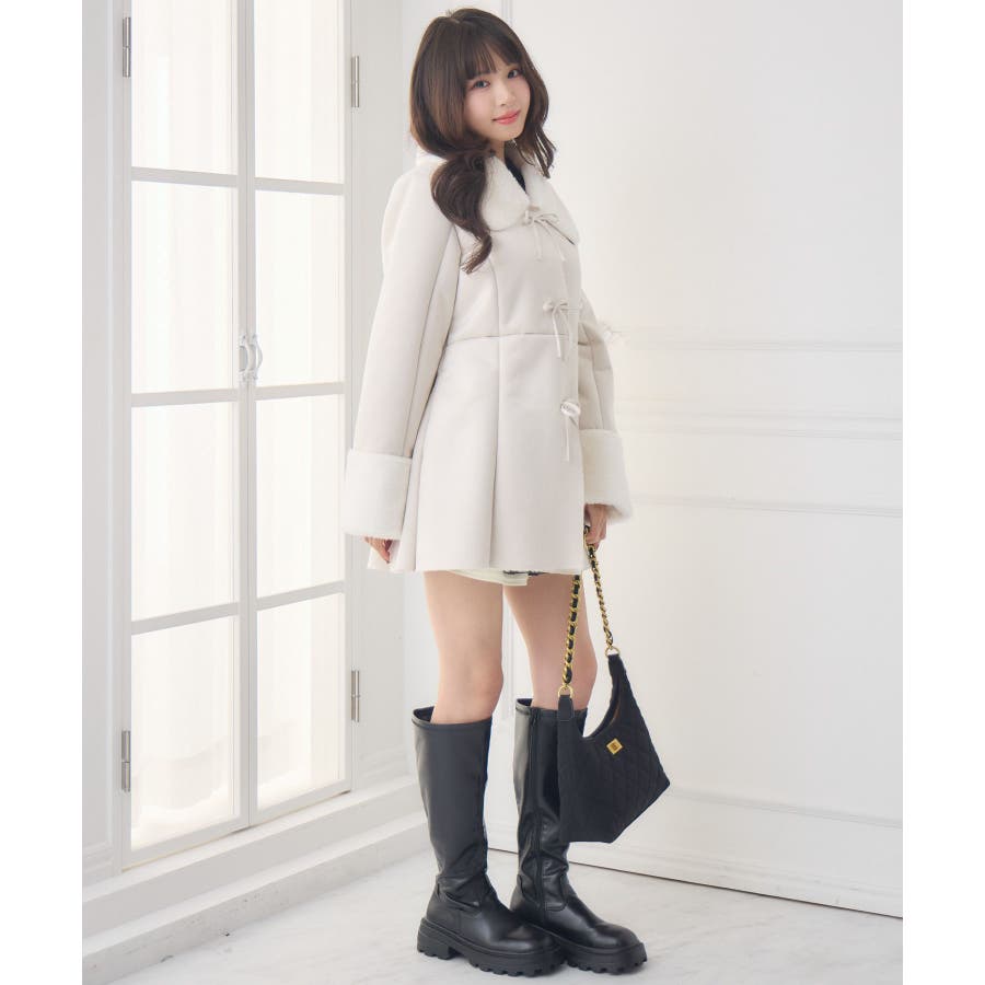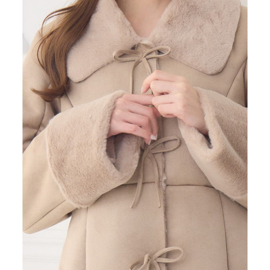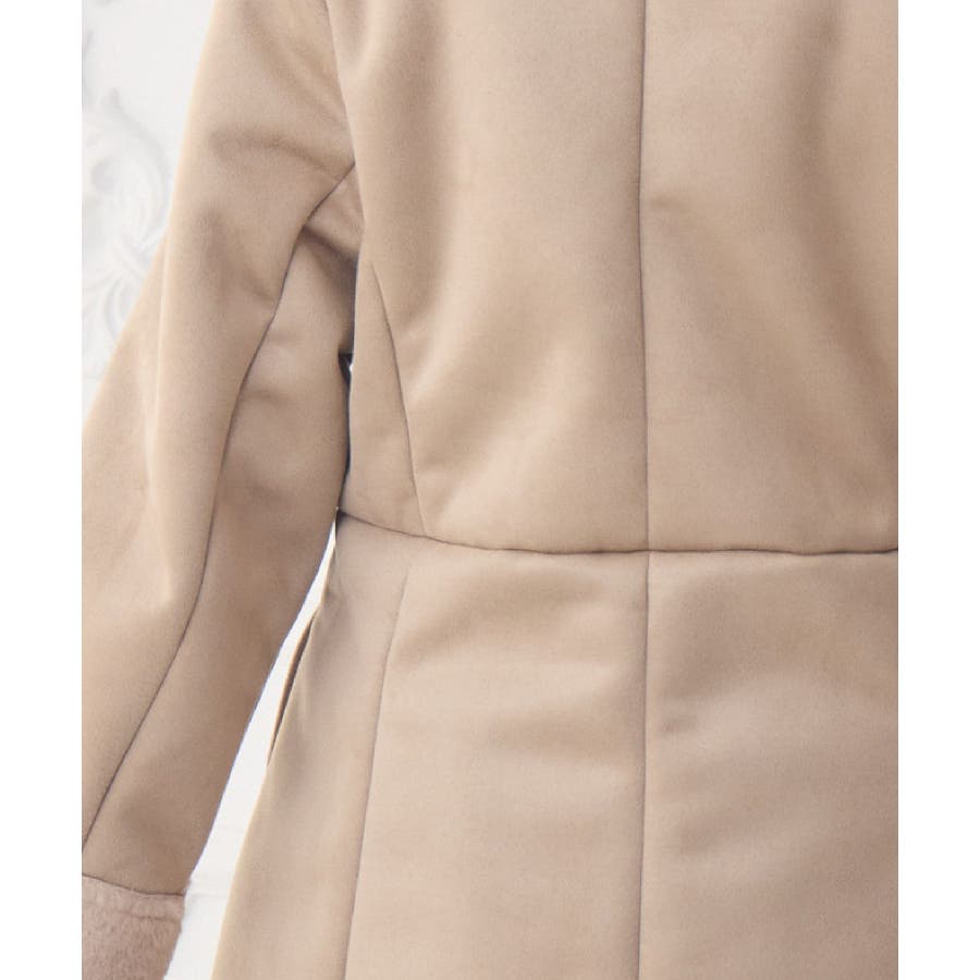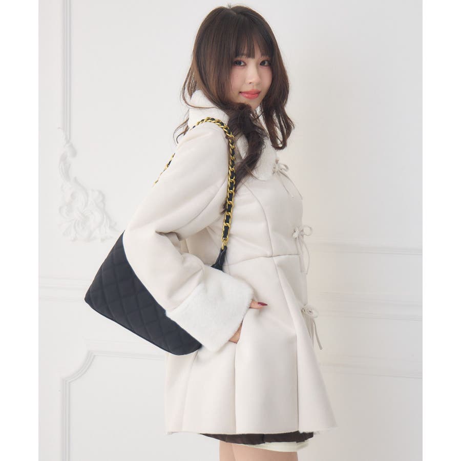 <首回りのフェイクファーが暖かい女子力高めアウター>▼デザイン首回りと袖口にフェイクファーデザインが施されたコート。フロント部分はリボンで華やかなデザインに。ボタンで着脱できるのも着やすいポイント!上品で女子力高めの1枚なので、クリスマスデートや参戦コーデにもおすすめです。▼コーディネート首回りのファーがしっかり暖かいコート。ミニ丈ワンピースに羽織って、冬のあざとデートコーデにセレクトしてみて下さい。------------------------------生地感:厚手伸縮性:なし透け感:なし裏地:あり------------------------------▼ブランド紹介ems excite (エムズエキサイト)“more fun more cute”今をもっと楽しくもっと可愛くいたい女の子に向けたgirly cuteなブランド#コート #アウター #ジャケット#ファー #リボン #ガーリーコーデ▼注意事項※撮影環境やモニター環境によって実際の商品とお色味が多少異なってみえる場合がございます。品番:EW580021G003 / 品名:Fファー襟スエードコート