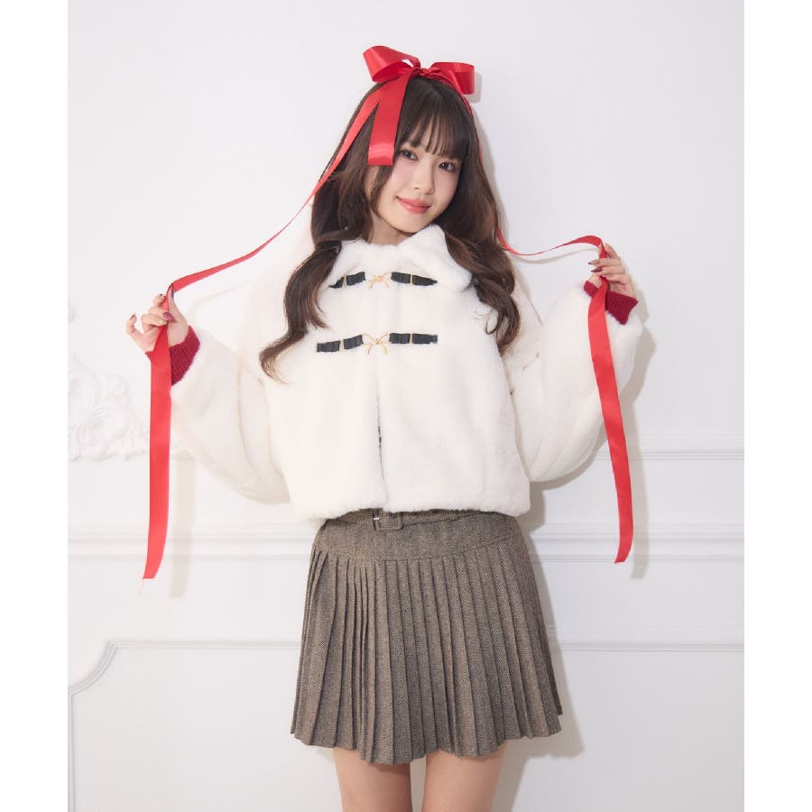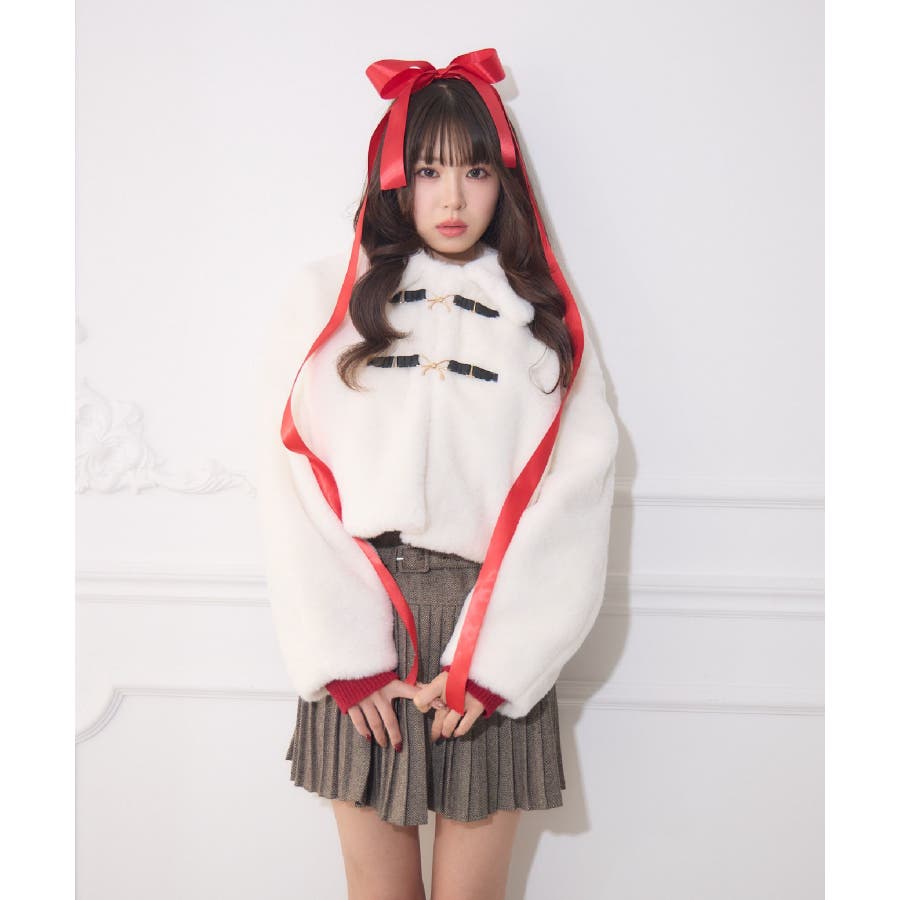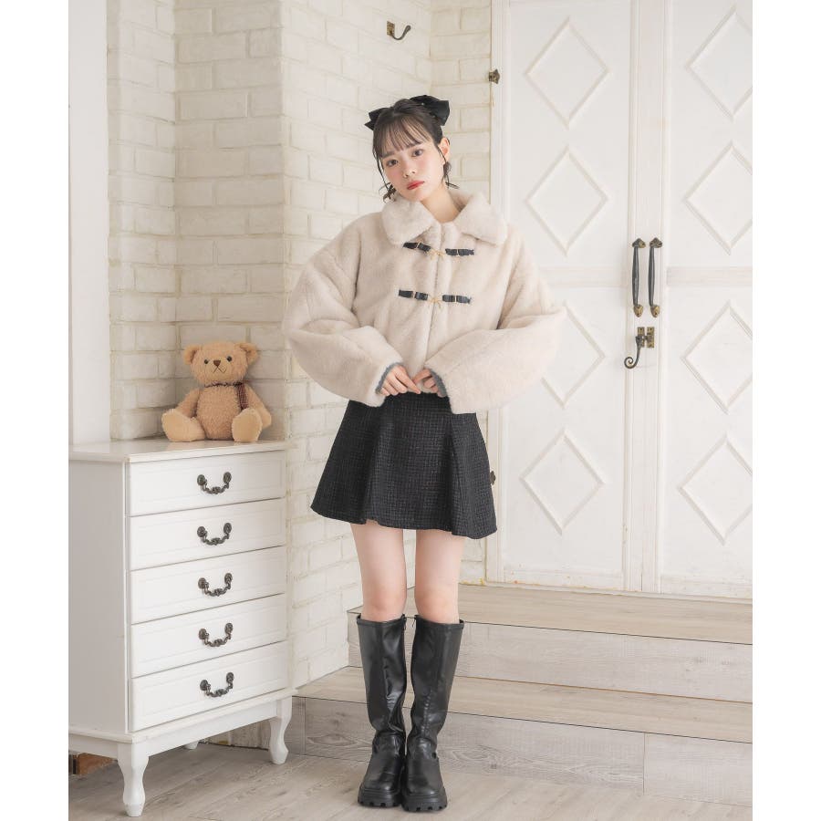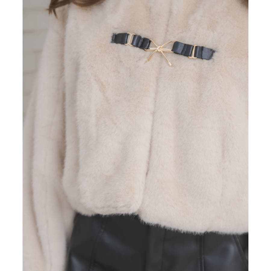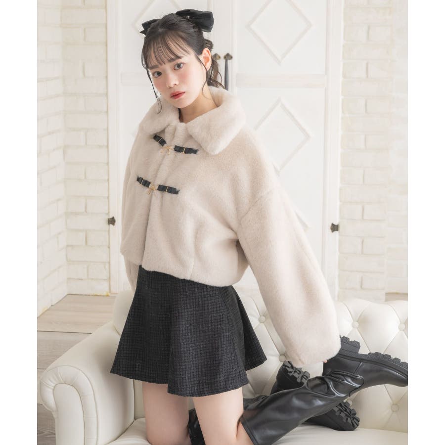 <フロントのリボンが可愛いの上品ジャケット>▼デザインフロント部分にリボンバックルがついたファージャケット。モコモコしたファーがとっても暖かいのはもちろん、癖になる触り心地です。コンパクトな着丈で、ボトムを選ばないお作りに♪ベルトで簡単に開け閉めできるので、羽織スタイルで取り入れるのもおすすめ◎▼コーディネートワンピースに羽織ればお上品なお呼ばれコーデにも大活躍です♪カジュアルなアイテムと合わせても◎------------------------------生地感:厚手伸縮性:なし透け感:なし裏地:あり------------------------------▼ブランド紹介ems excite (エムズエキサイト)“more fun more cute”今をもっと楽しくもっと可愛くいたい女の子に向けたgirly cuteなブランド#コート #アウター #ジャケット#ファー #襟付き▼注意事項※撮影環境やモニター環境によって実際の商品とお色味が多少異なってみえる場合がございます。品番:EW580021G004 / 品名:FファーリボンバックルJK