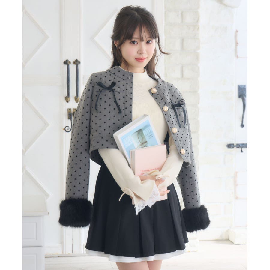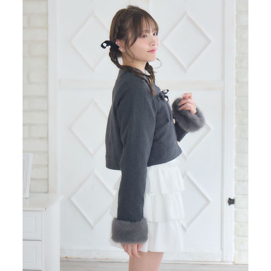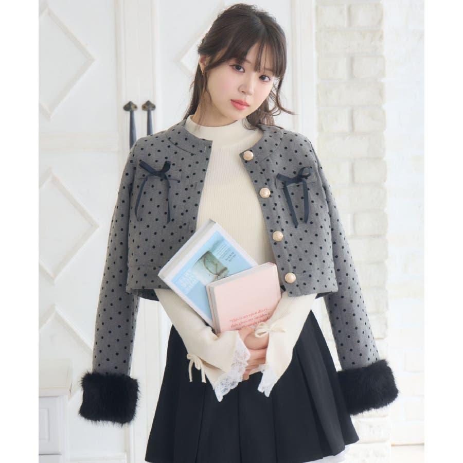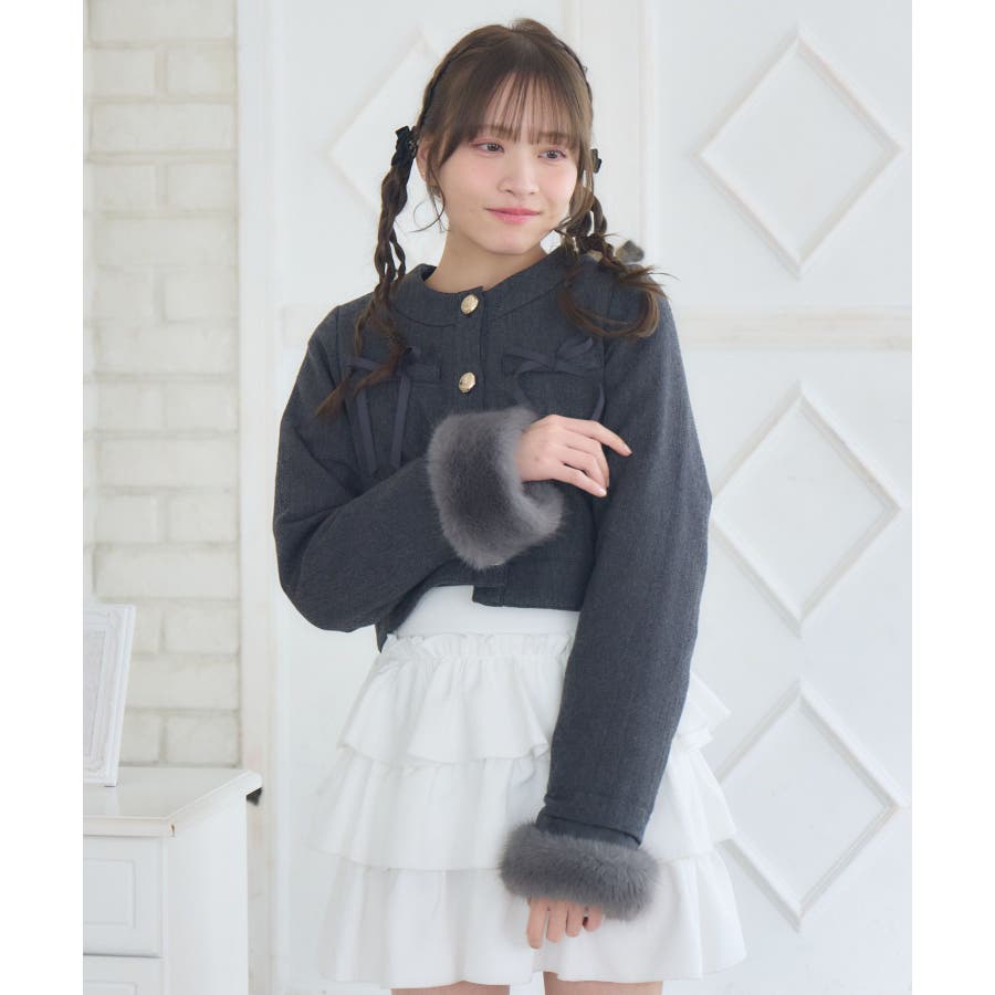 〈中綿だからとっても暖かいガーリージャケット〉▼デザインゴールドボタンで高級感溢れるデザインジャケット。毛足の長いフェイクファーが袖口についていて、暖かいデザイン。中綿がしっかり入っているので真冬も暖かく着用いただけます。胸元のリボンがemsらしいワンポイント♪▼コーディネートミニ丈のスカートやワンピースの上に羽織るとジャケットのデザインに合ったガーリーなコーデに。ボトムはシンプルにデニム合わせでも上品に仕上がるジャケットです。------------------------------生地感:厚手伸縮性:なし透け感:なし裏地:ある------------------------------▼ブランド紹介ems excite (エムズエキサイト)“more fun more cute”今をもっと楽しくもっと可愛くいたい女の子に向けたgirly cuteなブランド#ジャケット #ガーリージャケット #韓国コーデ #アウターアイテム #中綿ジャケット #ファージャケット #リボン▼注意事項※撮影環境やモニター環境によって実際の商品とお色味が 多少異なってみえる場合がございます。品番:EW580021G007 / 品名:ファー付中綿リボンJK
