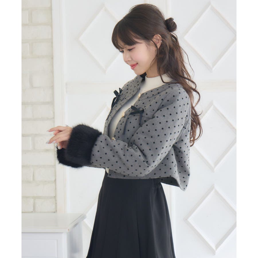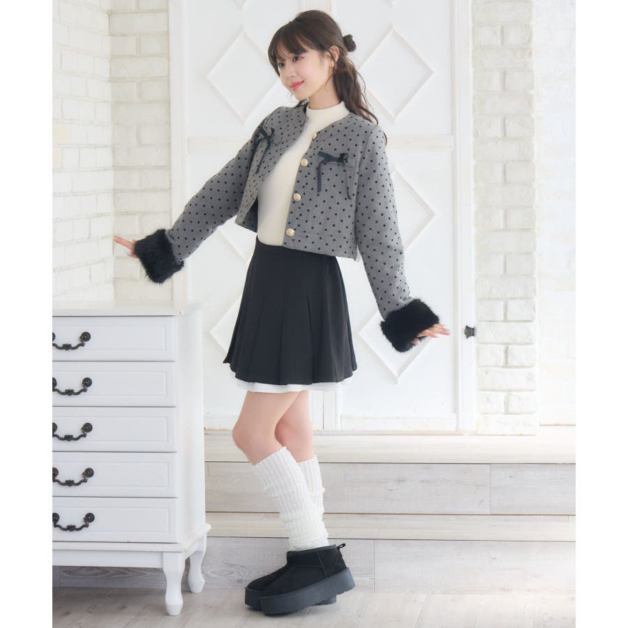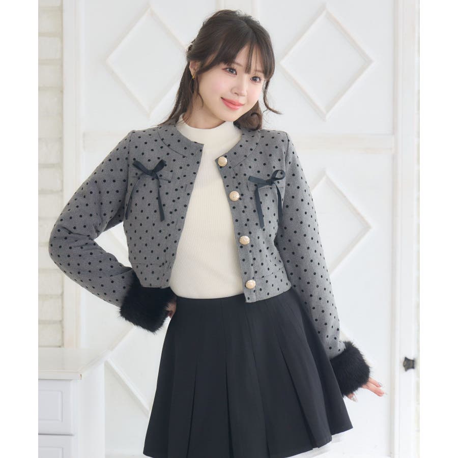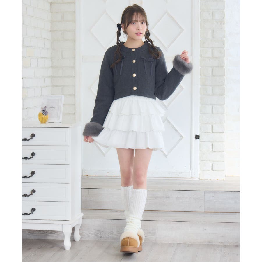 〈中綿だからとっても暖かいガーリージャケット〉▼デザインゴールドボタンで高級感溢れるデザインジャケット。毛足の長いフェイクファーが袖口についていて、暖かいデザイン。中綿がしっかり入っているので真冬も暖かく着用いただけます。胸元のリボンがemsらしいワンポイント♪▼コーディネートミニ丈のスカートやワンピースの上に羽織るとジャケットのデザインに合ったガーリーなコーデに。ボトムはシンプルにデニム合わせでも上品に仕上がるジャケットです。------------------------------生地感:厚手伸縮性:なし透け感:なし裏地:ある------------------------------▼ブランド紹介ems excite (エムズエキサイト)“more fun more cute”今をもっと楽しくもっと可愛くいたい女の子に向けたgirly cuteなブランド#ジャケット #ガーリージャケット #韓国コーデ #アウターアイテム #中綿ジャケット #ファージャケット #リボン▼注意事項※撮影環境やモニター環境によって実際の商品とお色味が 多少異なってみえる場合がございます。品番:EW580021G007 / 品名:ファー付中綿リボンJK
