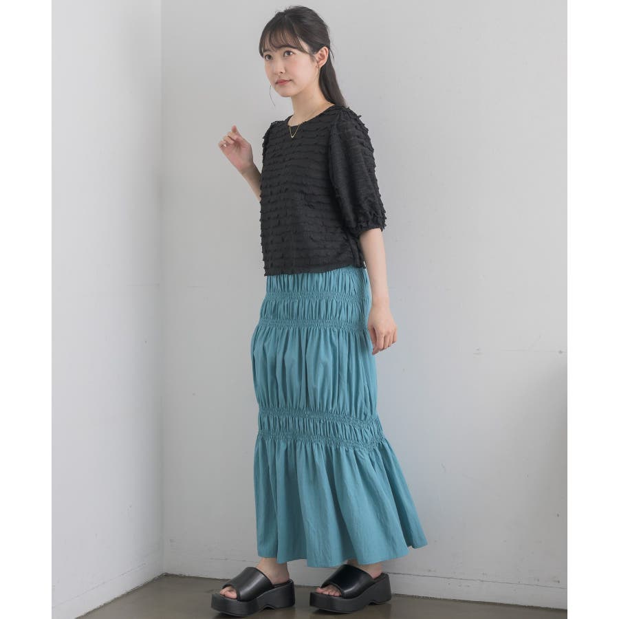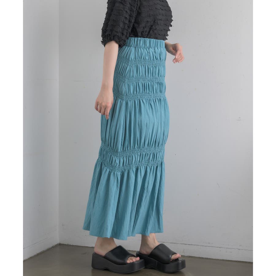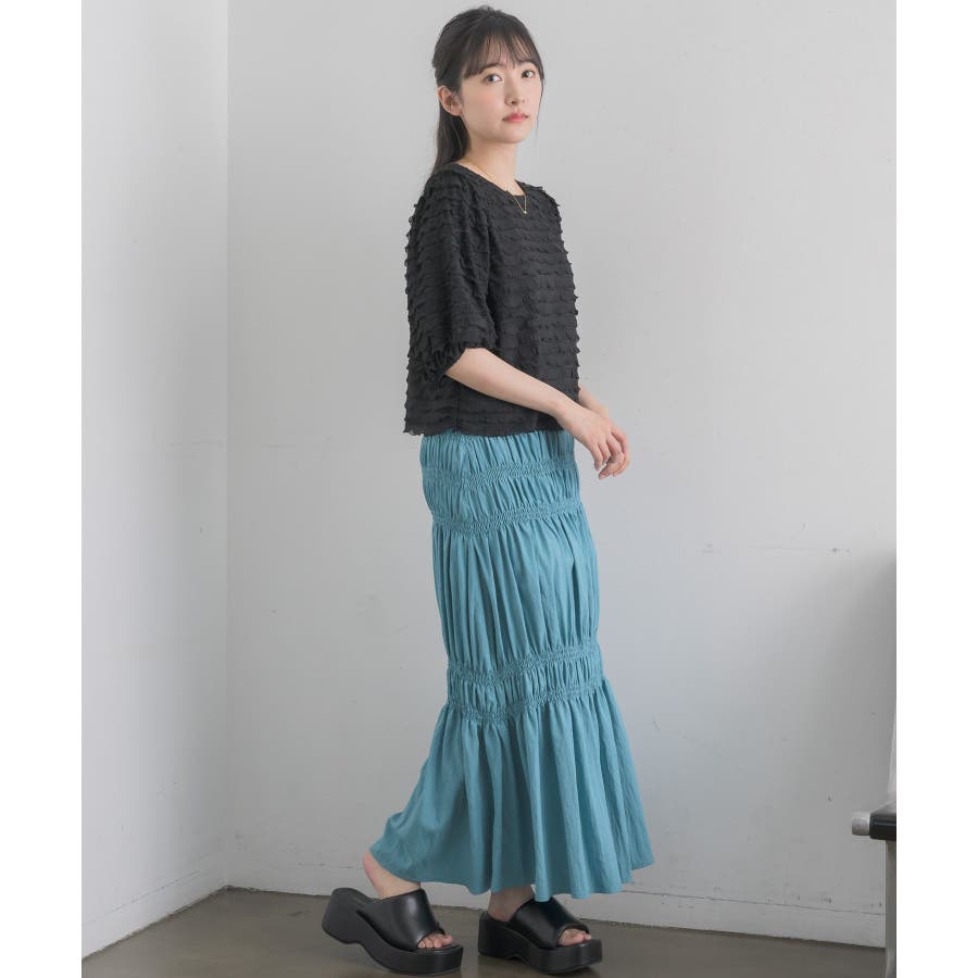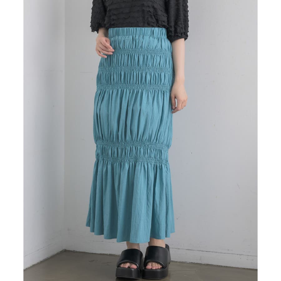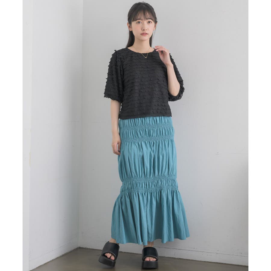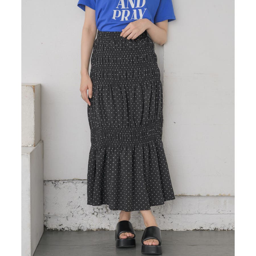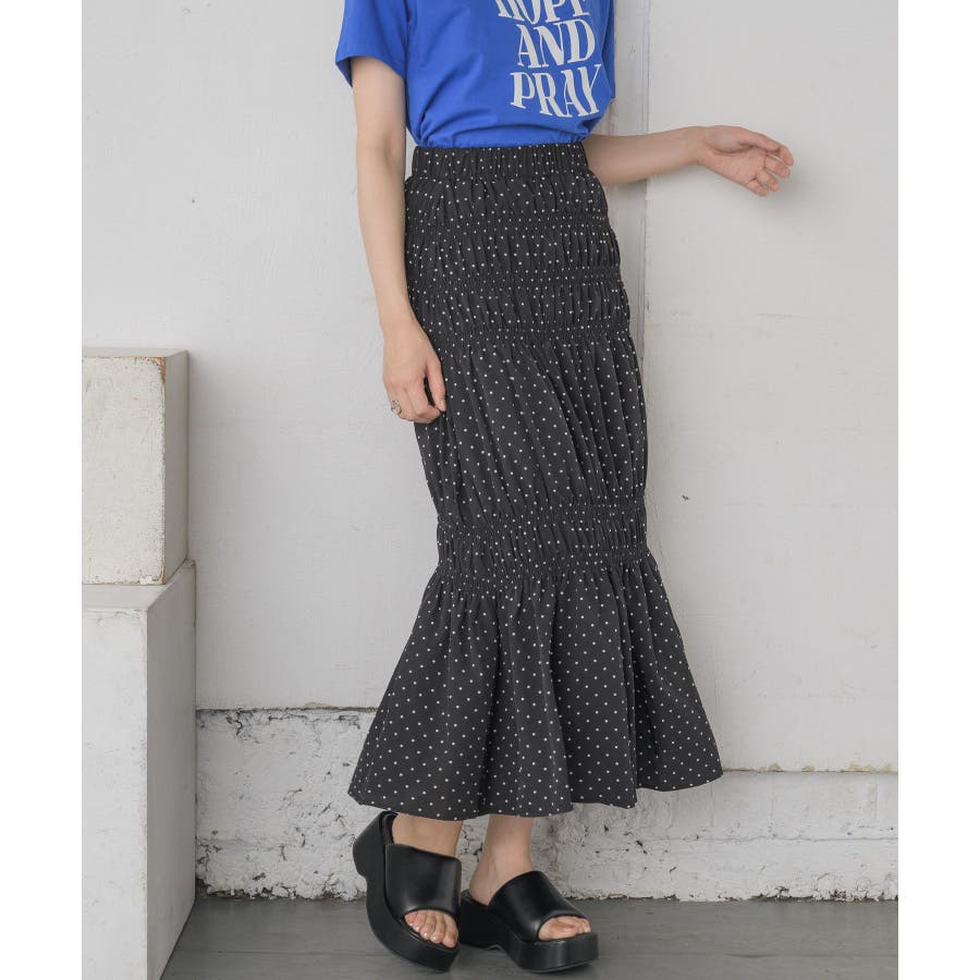 <ギャザーデザインが目を惹くロングスカート>▼デザイン5段階に、絞られたシャーリングデザインが施されたロングスカート!ビビットカラーが夏らしい無地の4色と、アソートデザインでブラックドットの5色展開です。ボディラインに沿ったギャザーデザインが大人っぽいシルエットに仕上げてくれます。▼コーディネートTシャツ合わせでシンプルなスタイリングでも、スカートのデザイン性で華やかなコーデに!シャツを羽織ったり、ビスチェ合わせで大人っぽくスタイリングしてみて下さい。▼おすすめ顔タイプキュート(ドット)/アクティブキュート(ブルー、オレンジ)フレッシュ(ブラック、ホワイト)▼ブランド紹介RETRO GIRL (レトロガール)自分らしい“ベーシックアイテム”と新しい自分の”トレンドアイテム”が見つかる場所今らしいファッションを楽しむ女性のためのブランド#スカート #シャーリング #ロングスカート #ギャザー #カラーアイテム▼注意事項※撮影環境やモニター環境によって実際の商品とお色味が多少異なってみえる場合がございます。品番:RA457031T004 / 品名:アソートギャザーSK